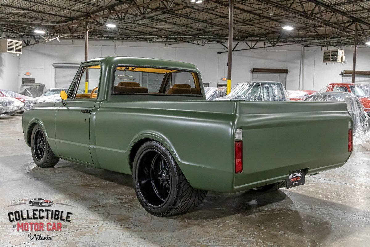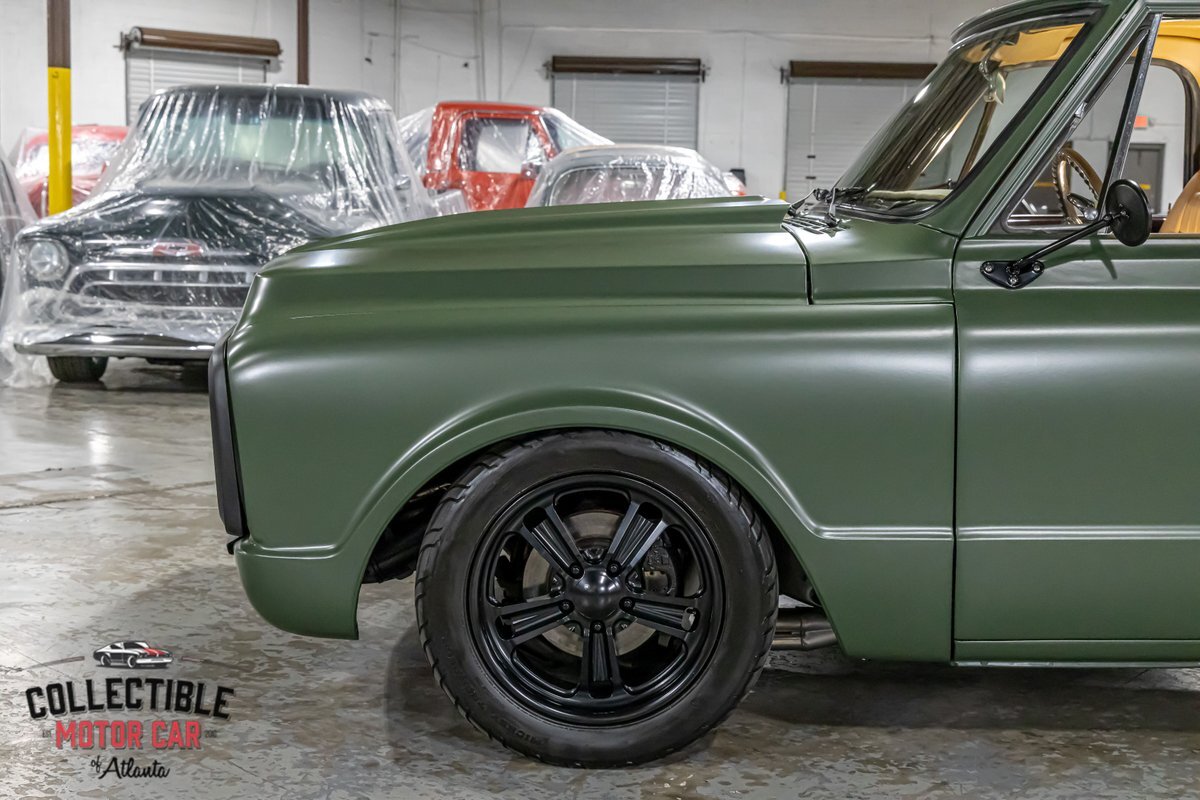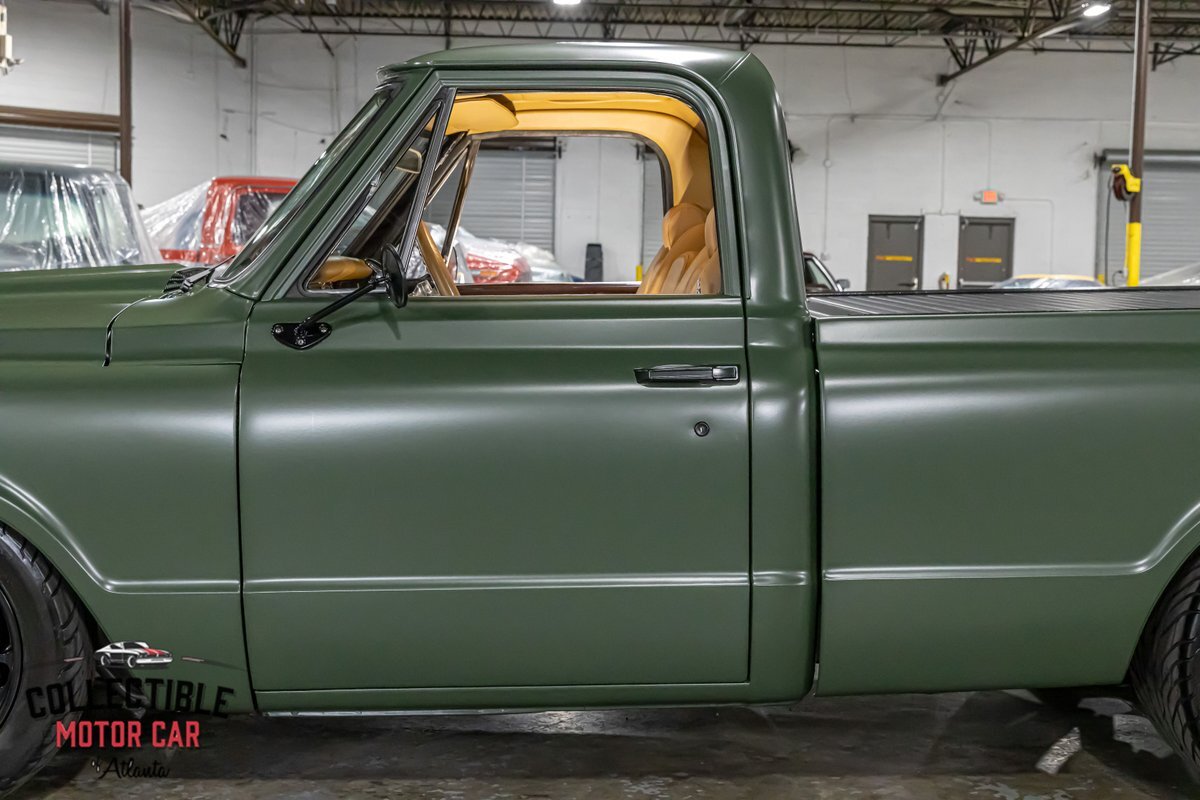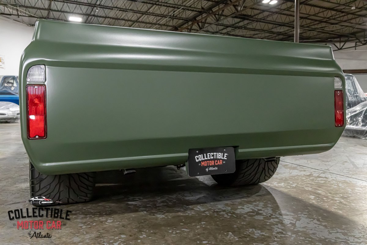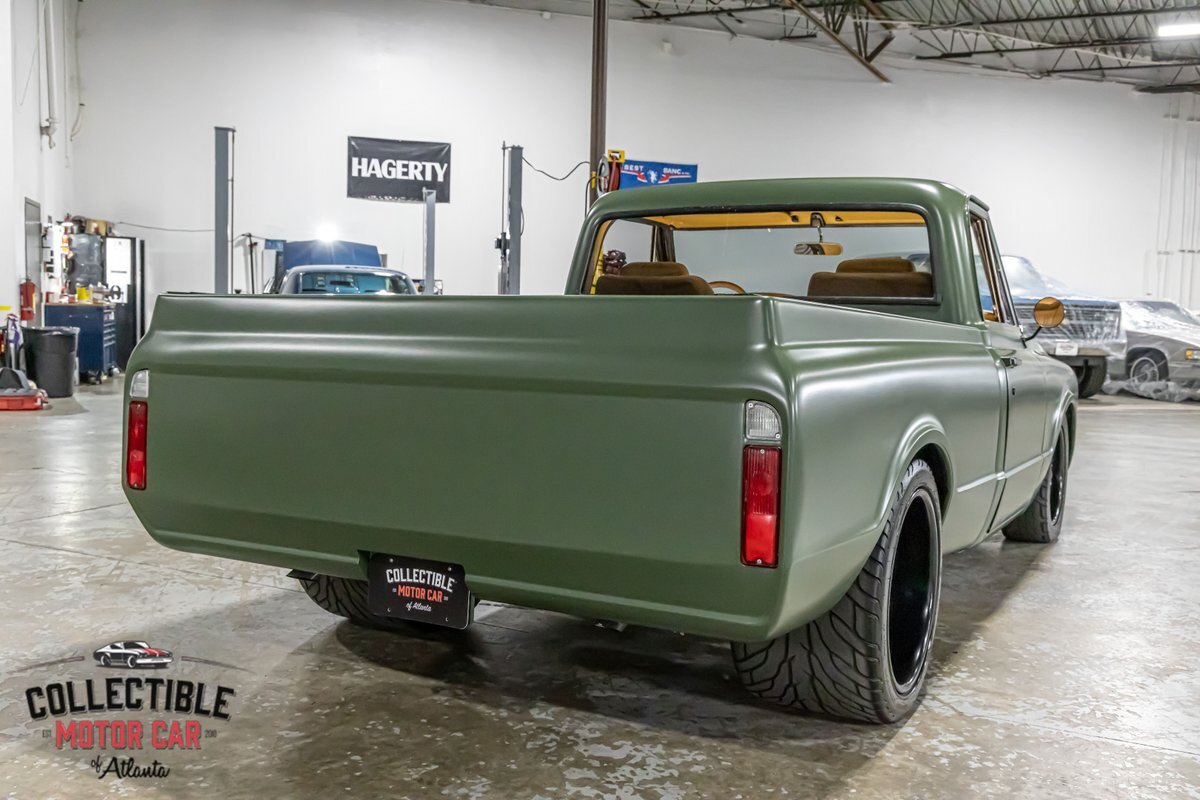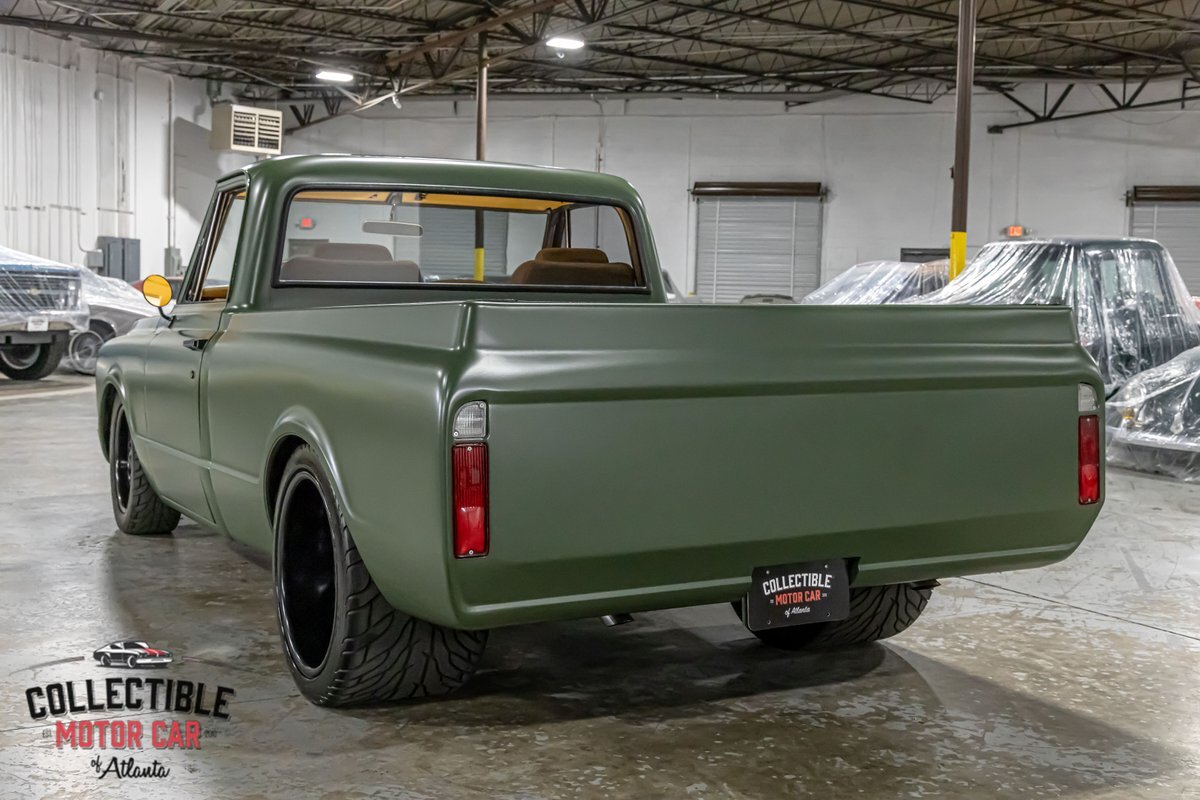 This 1970 Chevrolet C10 restomod is a serious build that not only looks stunning but also rides and drives superbly. If the striking flat green wrap isn't to your liking, rest assured that the House of Colors "black cherry" paint underneath is in excellent condition. This truck is the perfect blend of vintage charm and modern performance, ready to turn heads wherever it goes.
