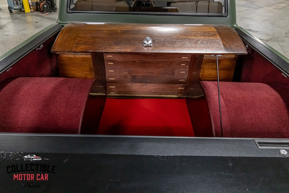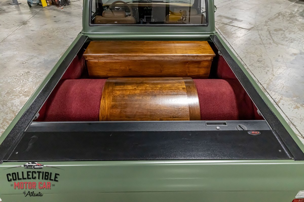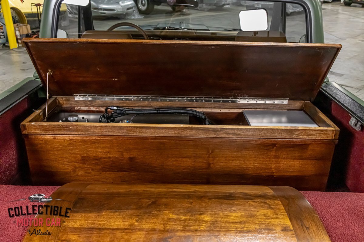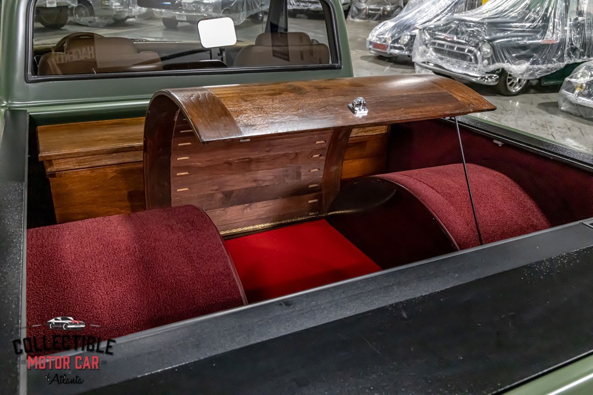 Custom bent wood cover between tubbed fender wells, with matching interior carpet on the bed sides and fender tubs