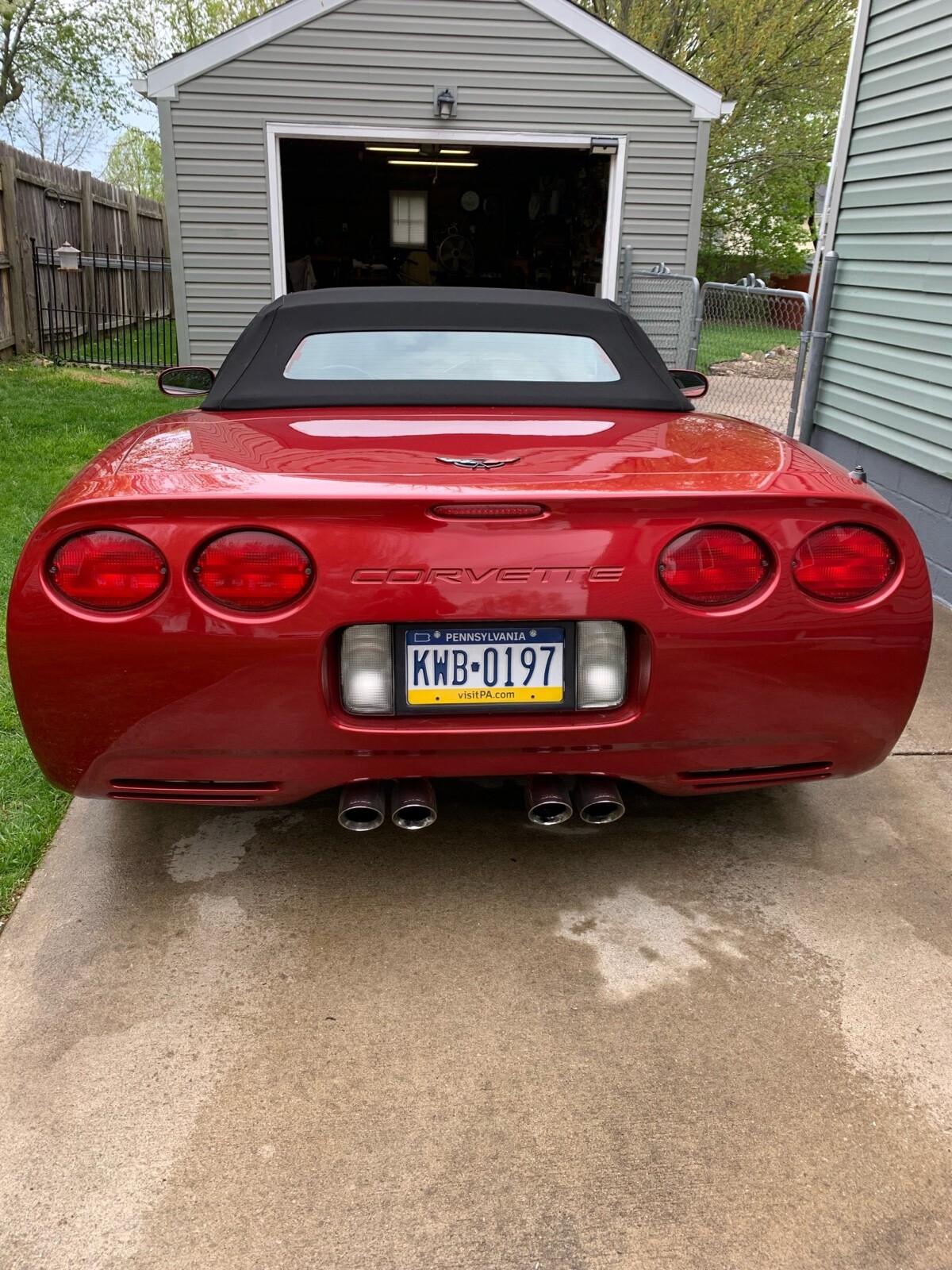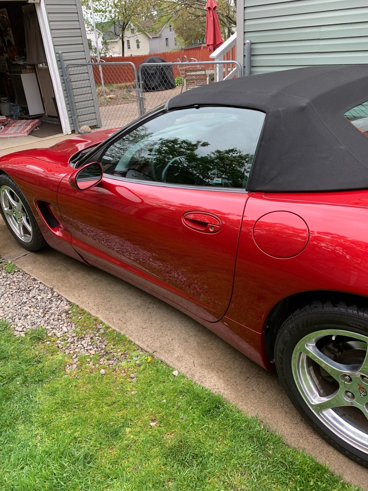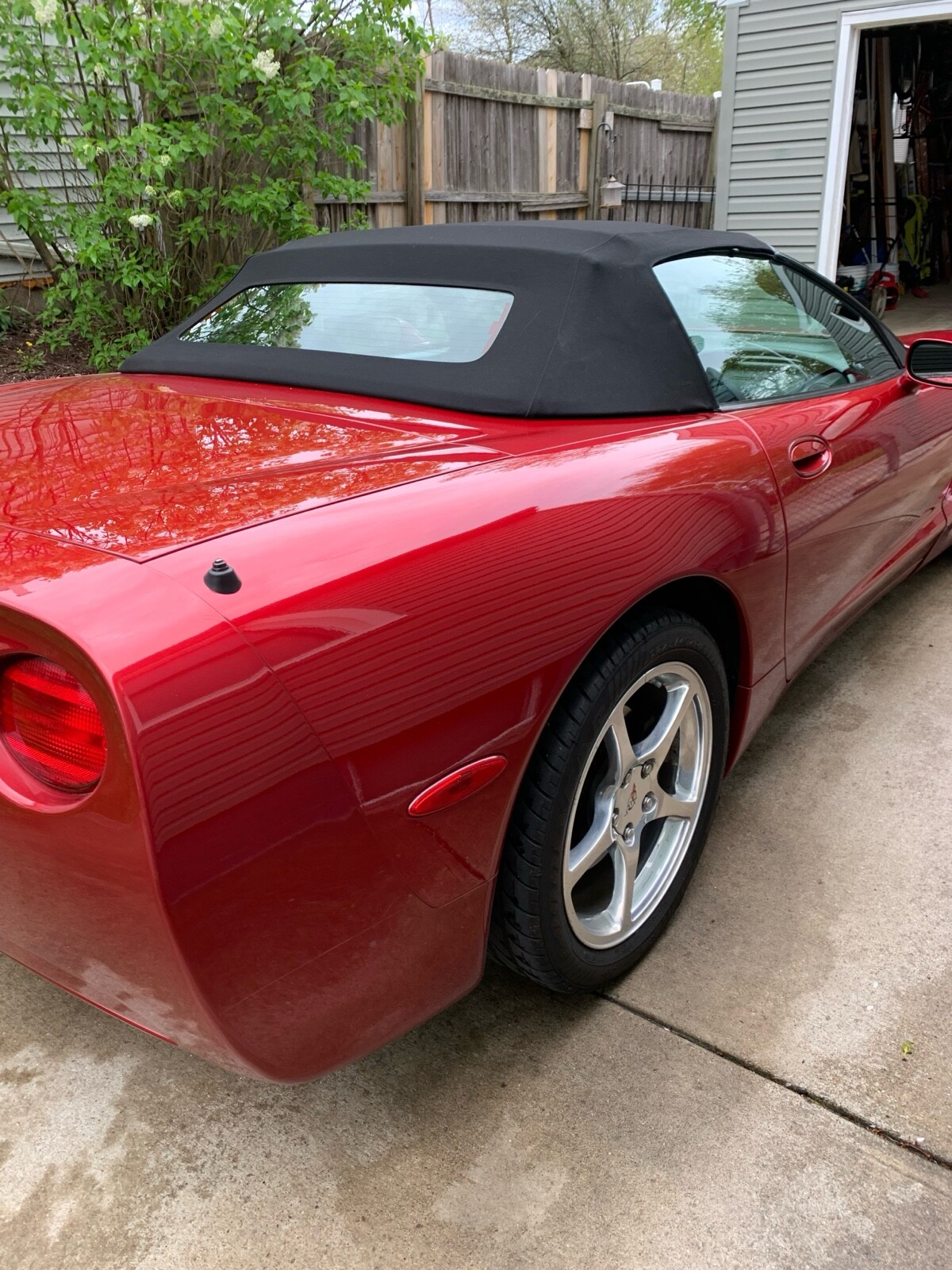 2001 ChevroIet Corvette, convertible, 6 speed manual transmission. All original except for the Corsa exhaust. I purchased this vehicle in September of 2018. I am the third owner. Originally the vehicle was purchased on a four year lease from 2001 thru 2005. The second owner had the vehicle for thirteen years from 2005 until my purchase in 2018. I’ve had very few problems other than changing a battery in 2023, and a oil pressure sensor. The only current issues with the vehicle is the remote lock/unlock works intermittently. I’ve changed the batteries but it still does not work consistently. I have to use the key on occasion to unlock the car. The other issue is the headlight motors are beginning to chatter for a few seconds when you turn off the lights. This is because of a small plastic gear inside the headlight housing that has worn. The parts are readily available for around $50 plus around two hours labor to repair. Or, both motors can be replaced for $150 each. They can be purchased at Advanced Auto Parts or any part store. I rarely drive the car at night and haven’t gotten around to repairing them.The tires are Good Year Eagles and are about seven years old. The second owner told me he had the tires replaced the year before he sold the car and they had about 3000 miles on them. I’ve had the car almost six years and have put 15k miles on the tires, so plenty of tread life left. The top is in excellent shape as is the entire vehicle. The vinal wrap has done it job. The car with me has been accident free with the exception of one minor backing incident where a lady backed into me while in a drive thru restaurant. The right front bumper area was damaged and professionally repaired with no issues.