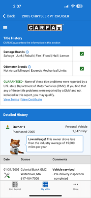 "PLEASE SCROLL TO BOTTOM OF LISTING AND CLICK "SEE FULL ITEM DESCRIPTION" TO VIEW ALL 50+ PHOTOS!!!" "I WILL HELP YOU ARRANGE SHIPPING AND WILL MATCH OR BEAT YOUR QUOTE" UP FOR OUR NEXT SALE IS THIS VERY NICE 2005 CHRYSLER PT CRUISER TOURING WAGON WITH VERY LOW 19K MILES, ONE OWNER, NON-SMOKER, CLEAN CARFAX AND PRICED TO SELL!!! THIS CAR IS OVERALL IN GOOD CONDITION INSIDE AND OUT. THE EXTERIOR SHOWS NO MAJOR DENTS, DINGS OR SCRATCHES. THE INTERIOR ALSO SHOWS NO SIGNS OF ABUSE, (SEE ALL PICTURES FOR MORE DETAILS.) THE ENGINE RUNS STRONG AND THE TRANSMISSION IS SMOOTH. THE CAR WILL BE A STEAL, SO CALL ME TODAY TO MAKE A DEAL267-828-0272 THANK YOU SERGE! Please keep in mind you are bidding on a pre-owned vehicle. Everyday driving can cause minor chips, dings or scratches on a vehicle. Unless otherwise noted in our photos or description these items are minimal, but may exist in some cases. Our photos are designed to be a visual description of this vehicle, please look at them carefully and use them to make a confident decision to bid on our vehicle. Get a great vehicle at a great price!!! Bid Now! If you have any questions about this or any of my other auctions please feel free to contact me via e-mail at or you can call me at 267-828-0272 ask for Serge. Thank you for your interests and we look forward to hearing from you...