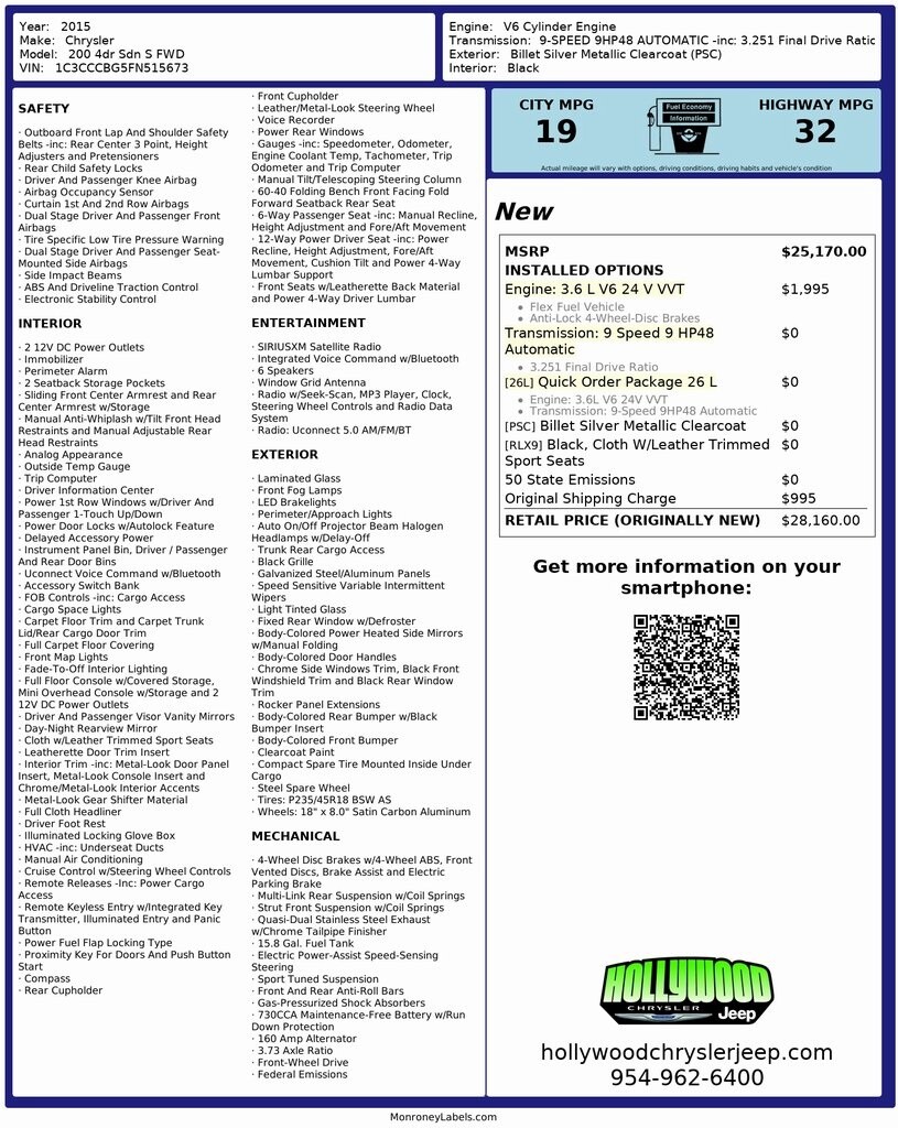 Experience the ultimate blend of sophistication and excitement with the 2015 Chrysler 200 4dr Sedan FWD, now available at Hollywood Chrysler Jeep in Hollywood, FL. With only 29,132 miles on the odometer and a clean Carfax report from its single previous owner, this sedan promises to deliver style, performance, and reliability all in one package.