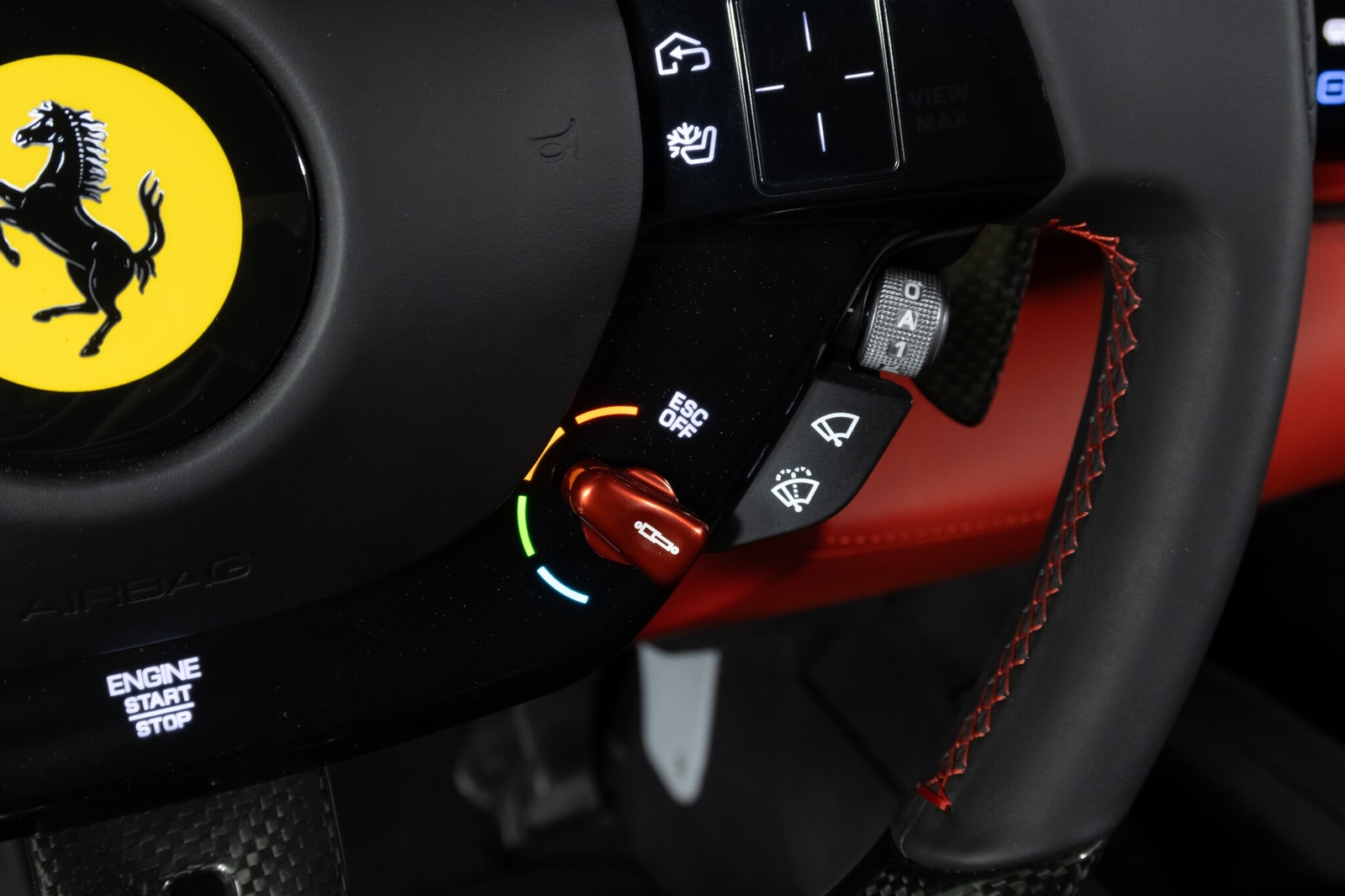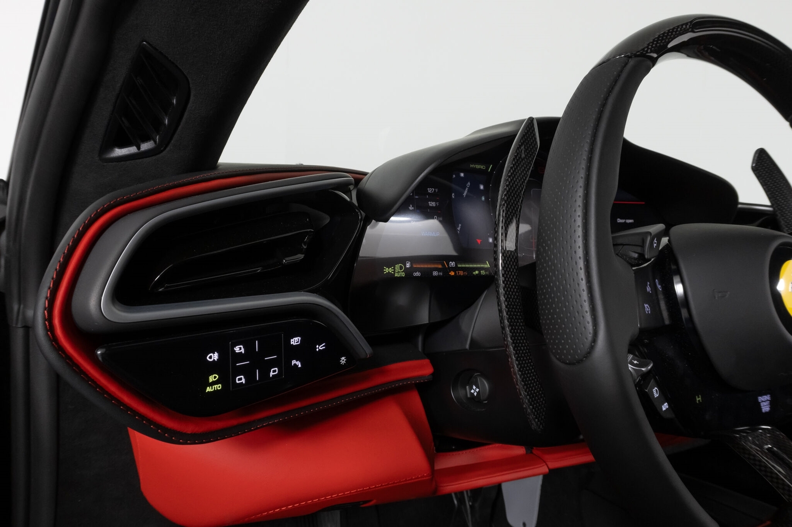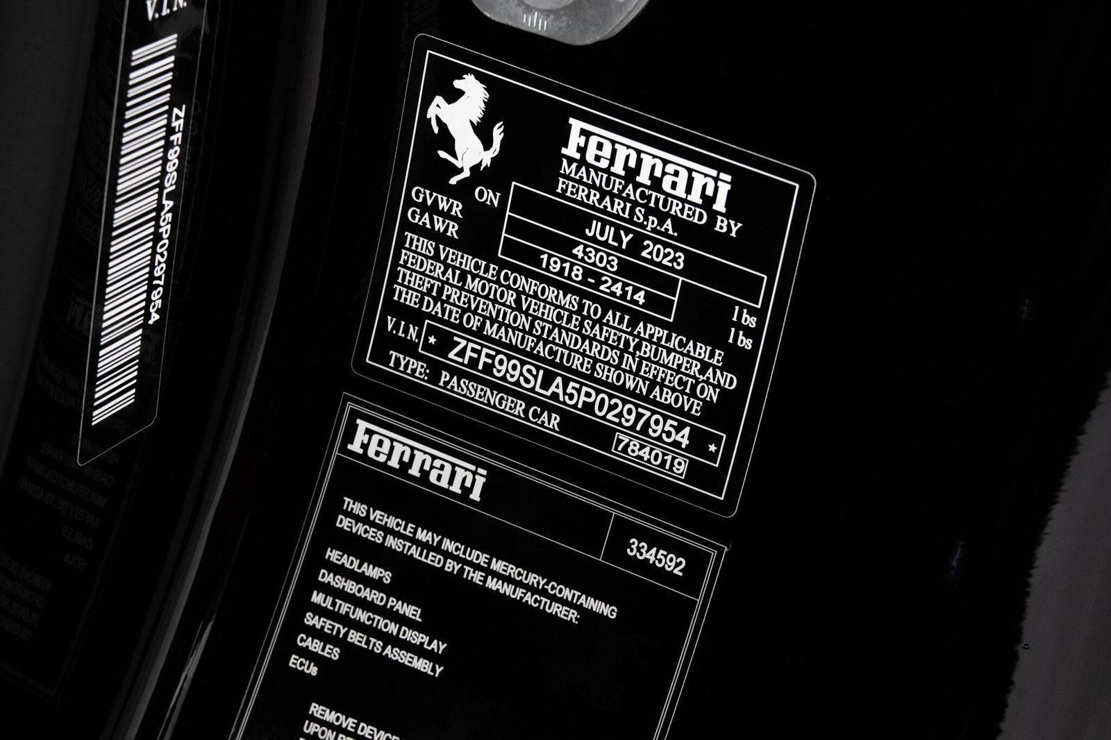 Ferrari South Bay is pleased to offer this one-owner, very low mileage 296 GTB finished in glossy Nero with Nero Leather contrasted with Rosso Leather and Stitching. Well equipped with a nice array of options, it's a road rocket that's easy to get along with; a terrific accomplice on the road or track!This 296 GTB is finished in lustrous Nero, complimented by Black Sports Exhaust Tips. Forged 20" Wheels are affixed with Titanium Wheel Studs to Carbon Ceramic Brakes sporting Rosso Corsa Calipers. Scuderia Ferrari Shields are affixed to the front fenders, reflecting the storied racing history of the Ferrari marque.The cabin is trimmed in Nero Leather with Rosso Stitching, including the Cavallinos Embroidered into headrests of the Fully Electric Daytona Style Seats. Rosso Leather accents the door panels, lower dash, and the Daytona Seats, with Rosso Corsa Seat Belts completing the theme. Blind Spot Detection with Rear Radar, combined with Front and Rear Parking Sensors help you in crowded parking lots, while the the Front Camera with Lane Departure Warning ensures safe travel on the highway. The Front and Rear Suspension Lifter makes steep driveways and other road irregularities a snap. Apple Car Play and a Wireless Charging Pad help integrate your smartphone and are welcome conveniences.This 296 GTB is offered with both original keys, hybrid charging cord, car cover, books and tools. It is covered by Ferrari's Original Factory Warranty through November 3, 2026 (and is easily extendable by two years at time of purchase). Ferrari's Genuine Maintenance Program takes care of annual services through November 3, 2030. If you'd like to know more about this wonderful 296 GTB, please reach out to one of our knowledgeable sales staff.