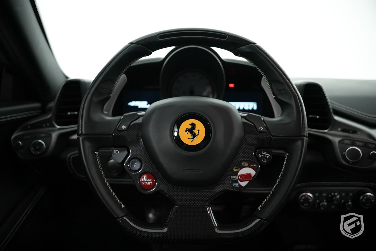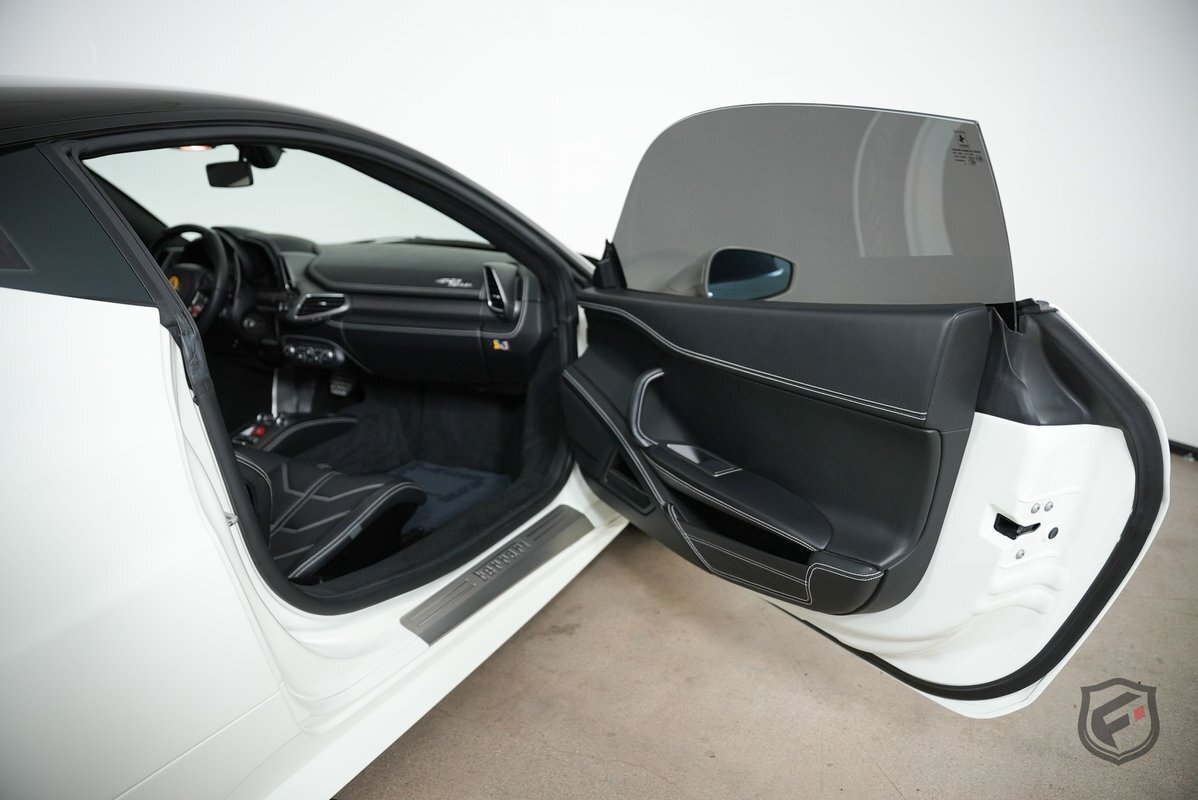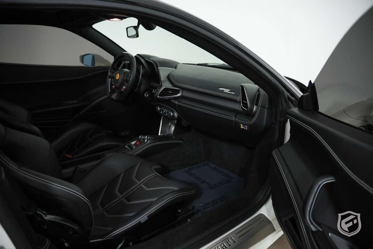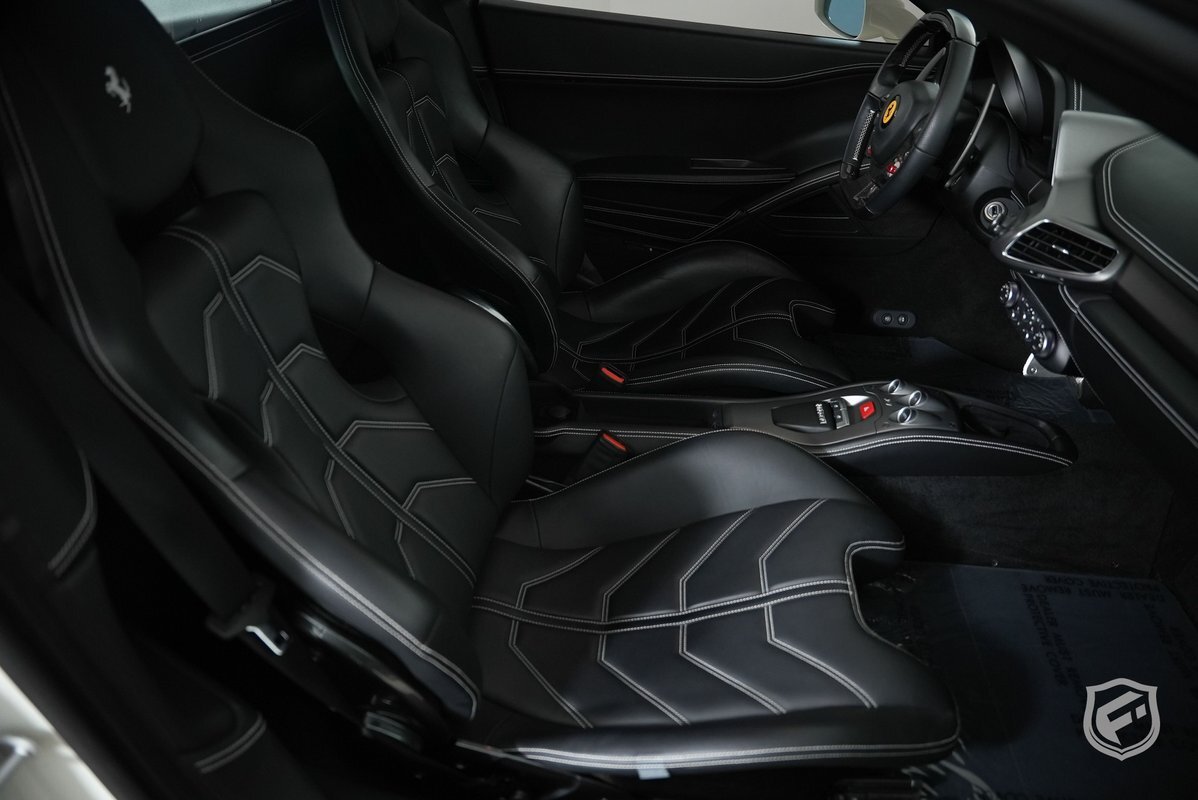 Presented is a gorgeous 2015 458 (last year of production) with Factory Two Tone Body with a Black Roof over Bianco Avus. The elegant and pristine Bianco Avus paint accentuates the car's smooth curves and dynamic lines. The interior features black leather seats with red stitching, and carbon fiber trim, providing a comfortable and luxurious driving experience.