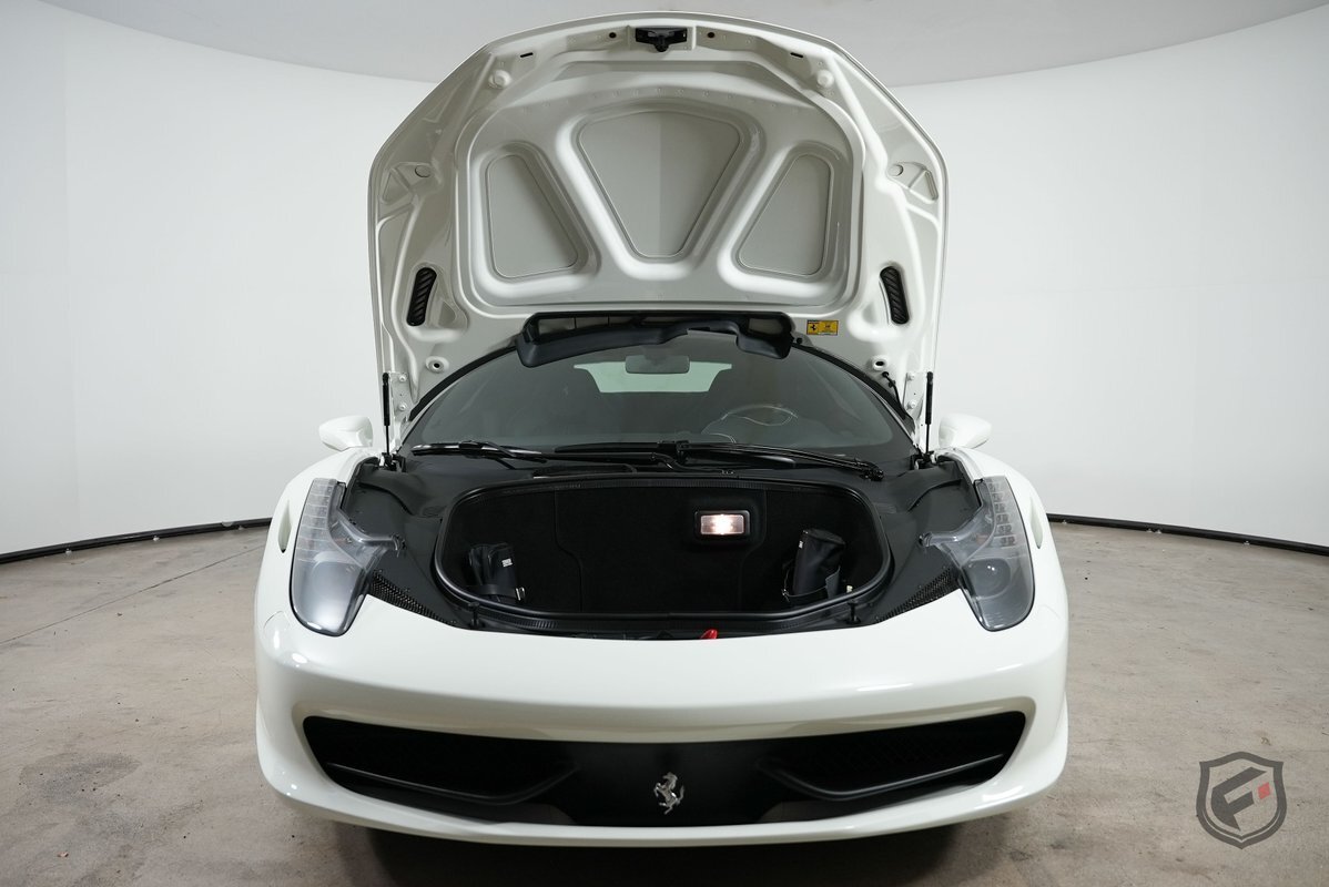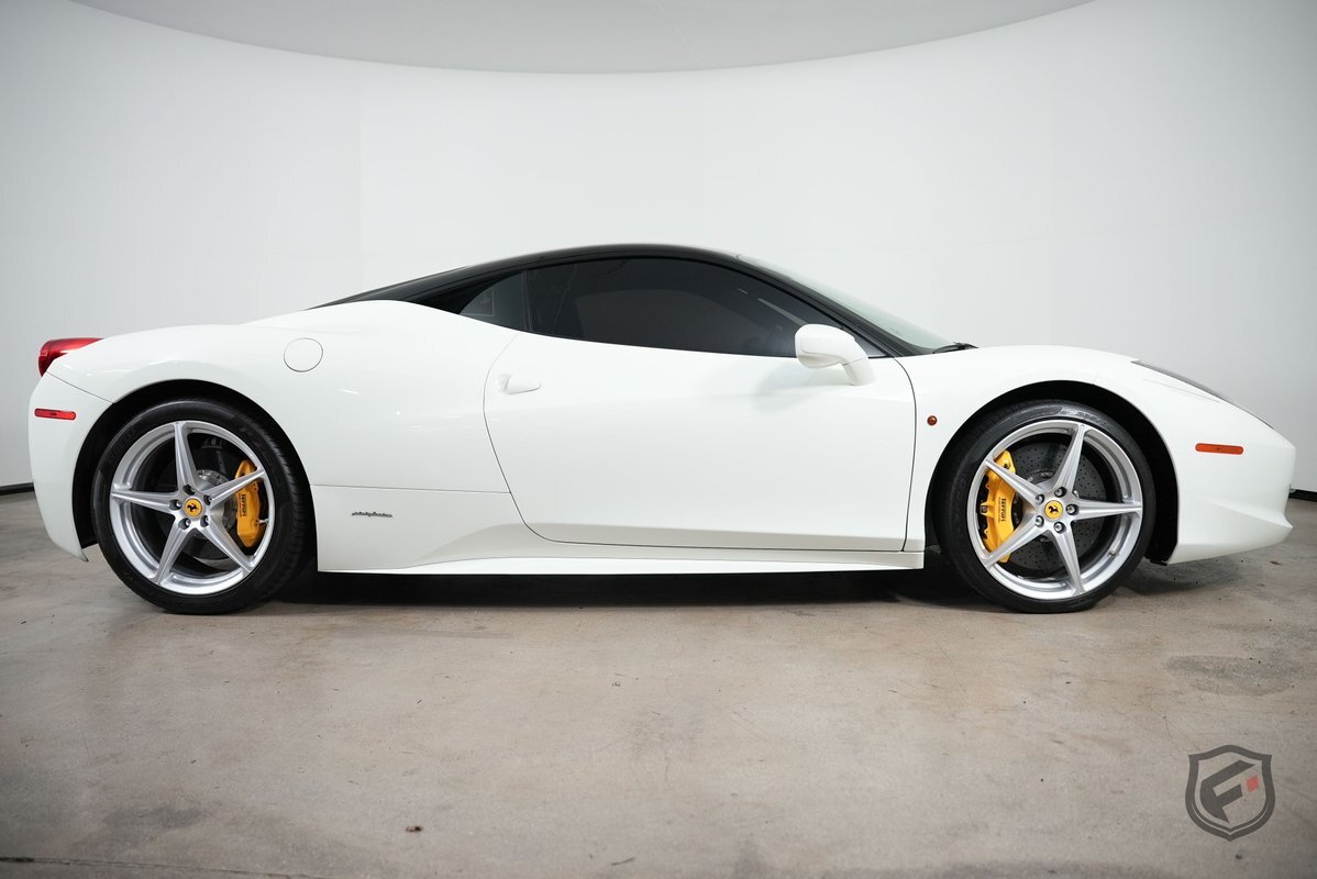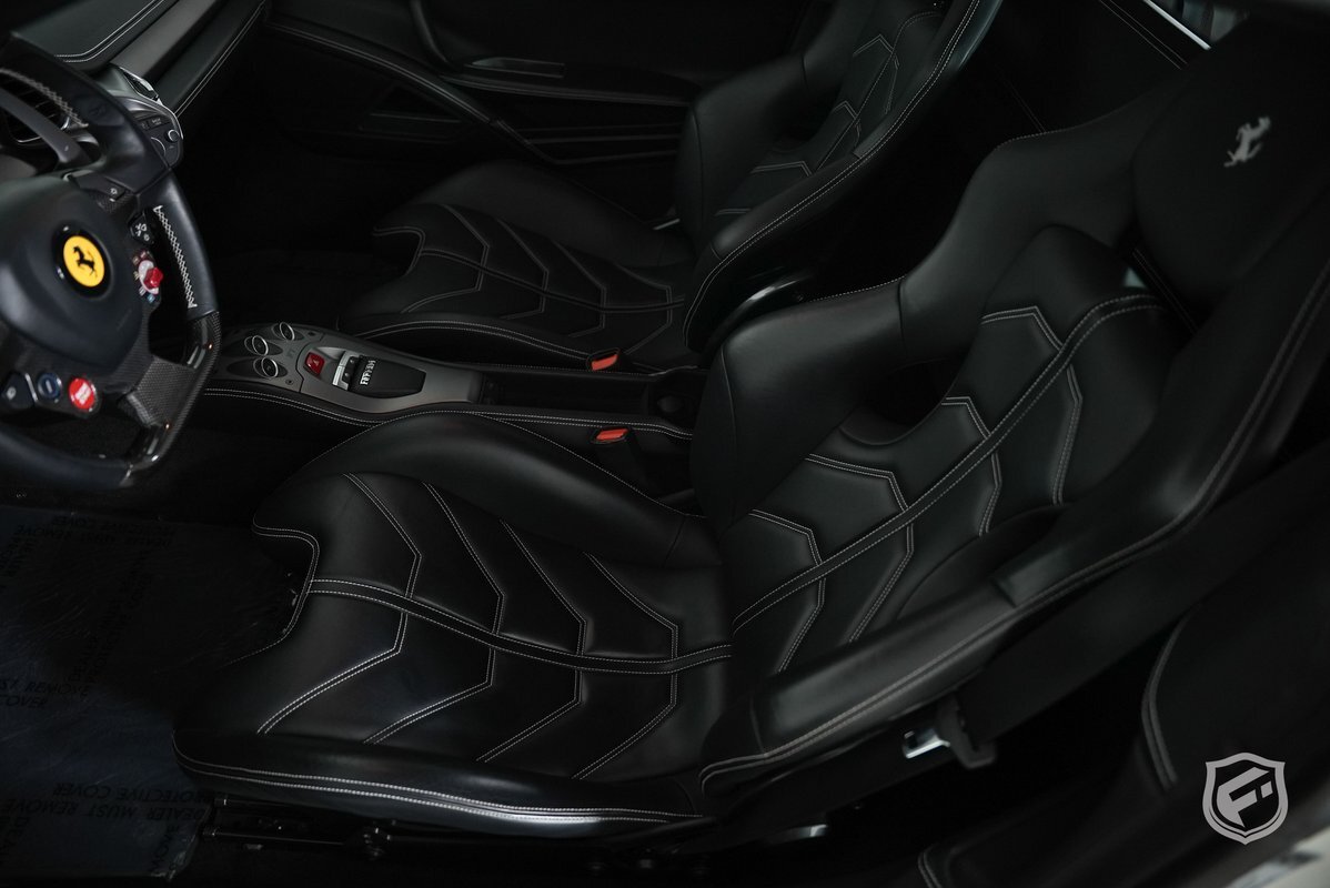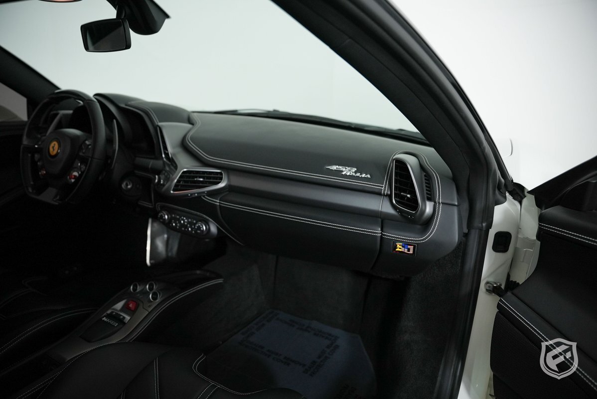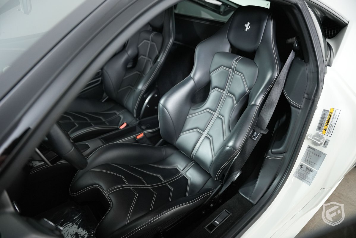 Presented is a gorgeous 2015 458 (last year of production) with Factory Two Tone Body with a Black Roof over Bianco Avus. The elegant and pristine Bianco Avus paint accentuates the car's smooth curves and dynamic lines. The interior features black leather seats with red stitching, and carbon fiber trim, providing a comfortable and luxurious driving experience.