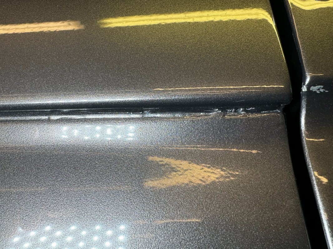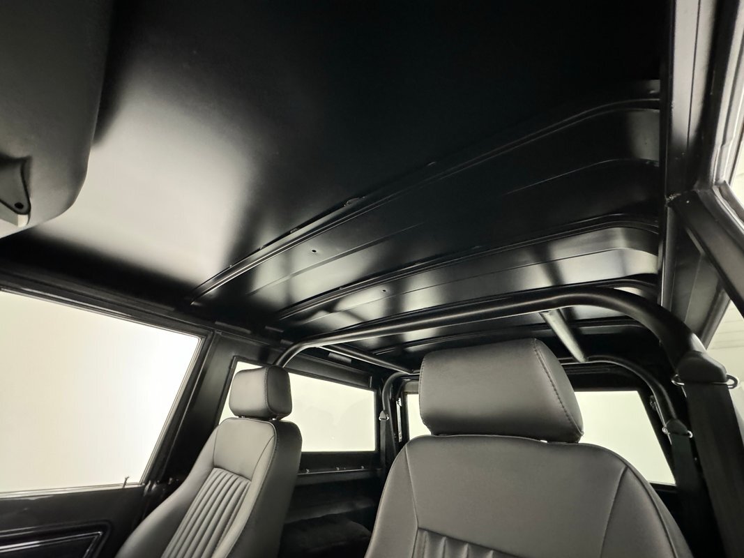 This Bronco looks great in a coat of two stage Charcoal Gray Metallic which is fantastically complemented by the black accents including the grille, fender flares, wheels and tires, bumpers, and black top. Matching hood vents have been cut out cleanly near the cowl and the vertical windshield is framed in gray metallic. Contrasting metal bits include the door handles, emblems, and chrome exhaust tips. The 15-inch wheels carry 33x12.5R15LT tires. Panel gaps are well minded, and we had to look hard for imperfections and there are only a few minor ones including some chipped paint by a hinge, at the base of a panel, near the tailgate, and some extra paint in a body crease.