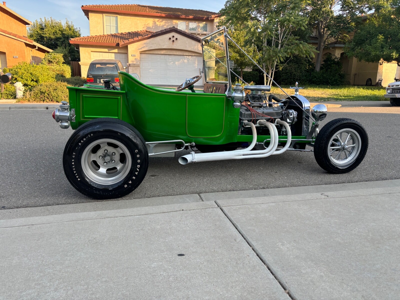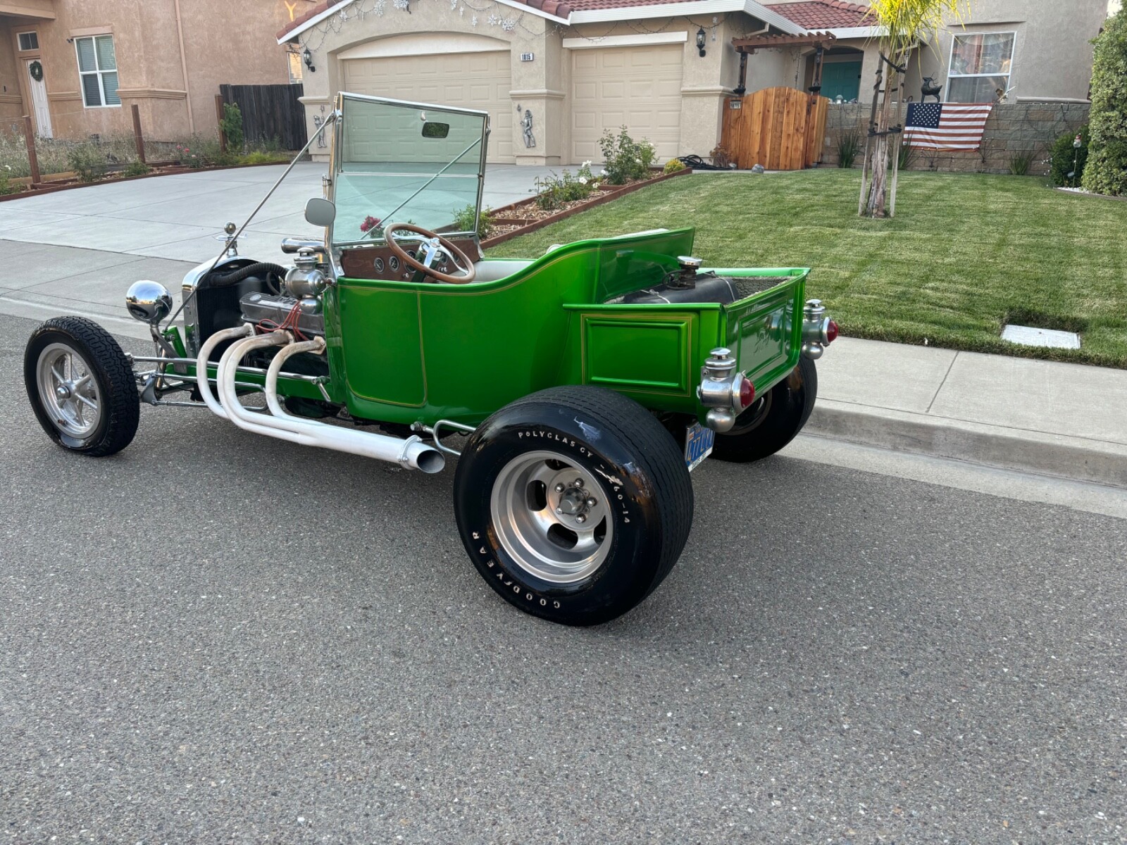 Hello eBay up for auction is our 1923 Ford t bucket it was originally built by the famous Andy Brizio this was one of his first t buckets the power plant on this car is a dodge 340 engine out of a 1970 Dodge Challenger and has a 700 r4 automatic transmission and 8/34 rear end and 780 isky race cam also electric ignition this car was done correctly. My grandfather put a lot of time and energy into this vehicle. Lots of details that are original from a 1923 such as the lantern lights the windshield window bars car runs amazing. It sounds awesome. Every single thing works in it, including the cigarette lighter, it is in beautiful condition. This car had a full restoration in the early 60s and freshened up in the mid 2000s. This was a prototype car what I was told by my grandfather by the famous Andy Brizio known as the Rod father paint is beautiful on it. interiors nice. Could use a new carpet faded away with time. It is titled as an original. 1923 t bucket suspension is great absolutely no issues with the vehicle. It’s been in a garage covered with blankets and car covers all of his life. Chrome could use a little polishing engine could use also a little polishing but everything is there and in great condition no pitting no rusting it just needs to be polished. If you’re interested in my vehicle, please feel free to give me a call (925)695-5645 Pete we are located in Antioch California and if you make a good offer on the vehicle, I will end the auction early. I would also like to be paid within 48 hours of auction ending. Thanks have a great day.