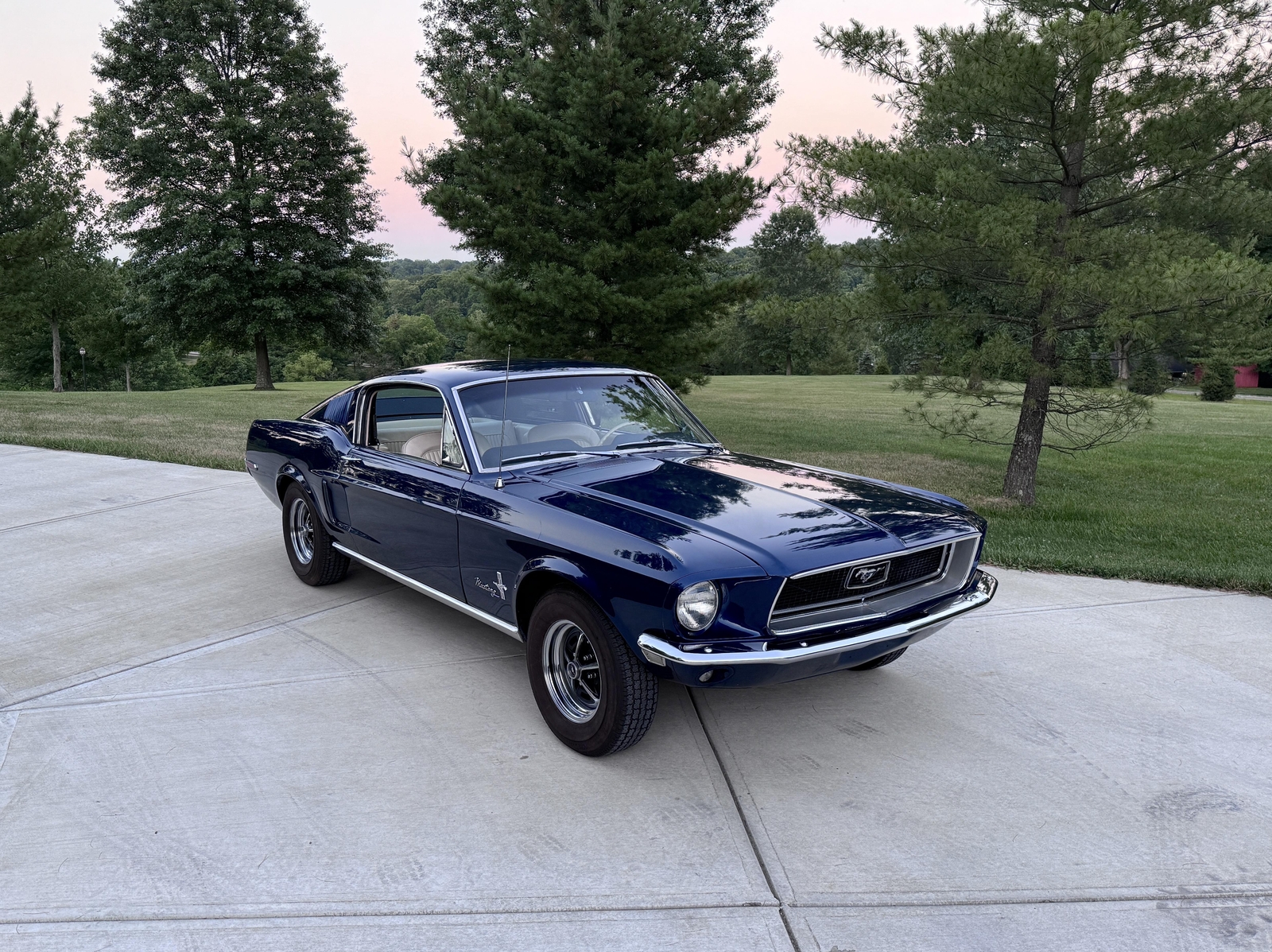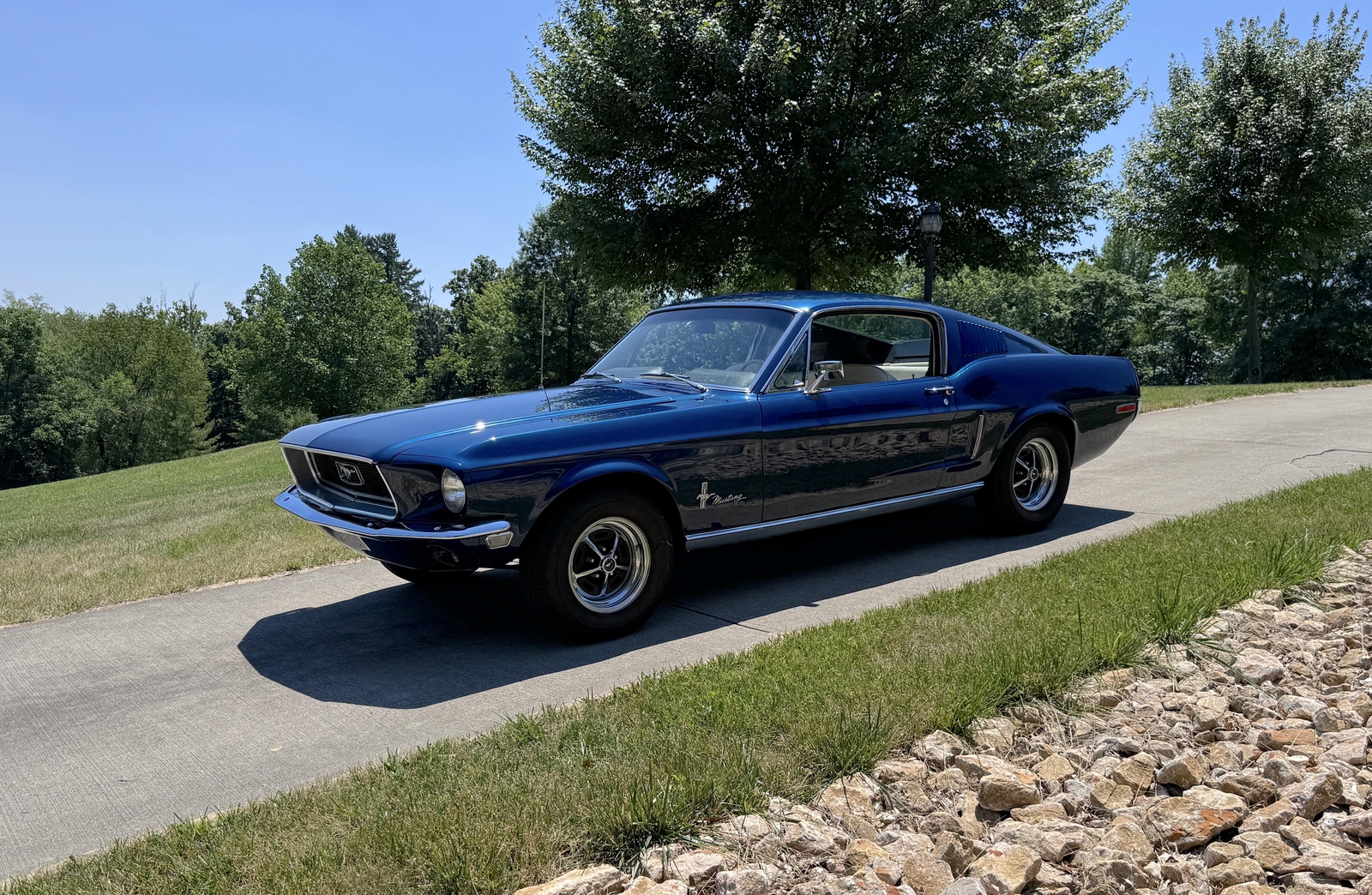GORGEOUS ROTISSERIE FULLY RESTORED TO FACTORY CORRECT 1968 FASTBACK C-CODE 289 FACTORY 4SPD PERFECT SOLID METAL ALL OVER BEAUTIFUL SHOW QUALITY FACTORY CORRECT PRESIDENTIAL BLUE PAINT WITH IMMACULATE FACTORY CORRECT PARCHMENT INTERIOR