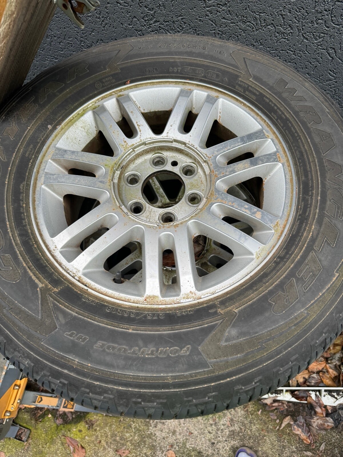 I will include 4 extra tires on aluminum rims and an extra tailgate. The tailgate is white and marginally less dented.