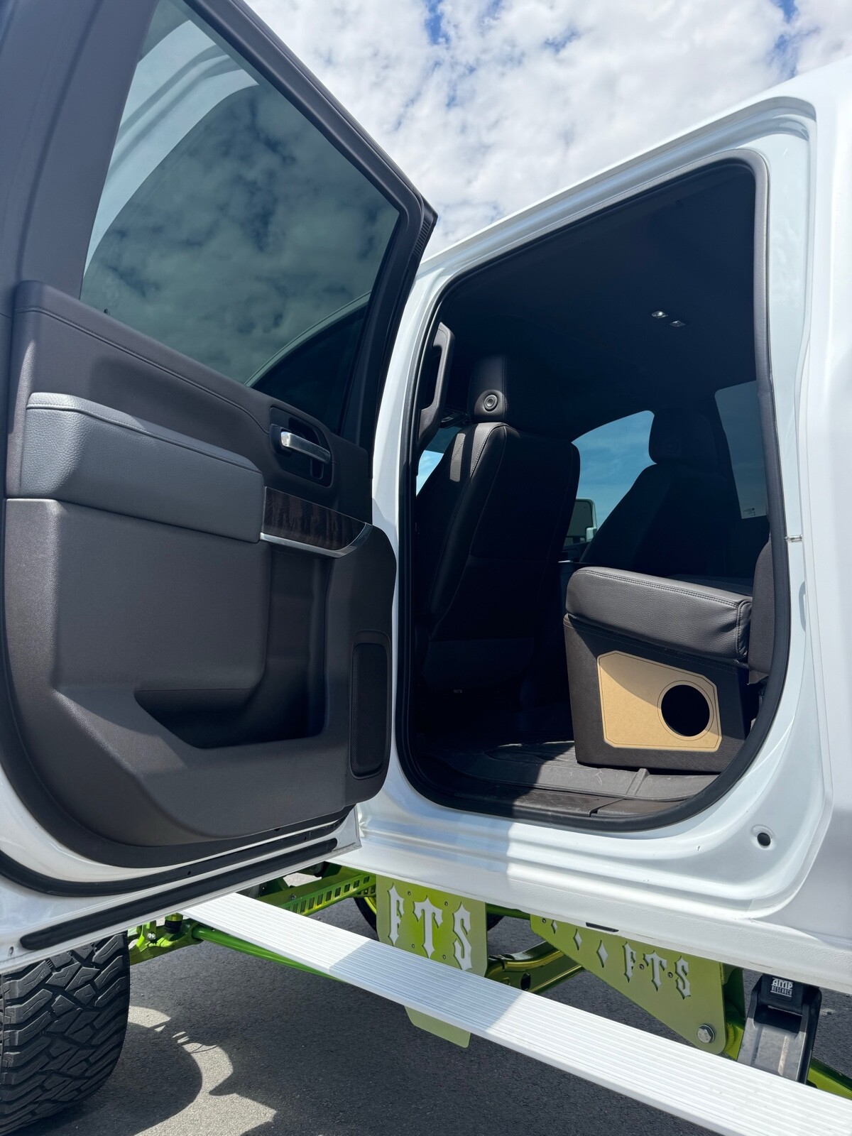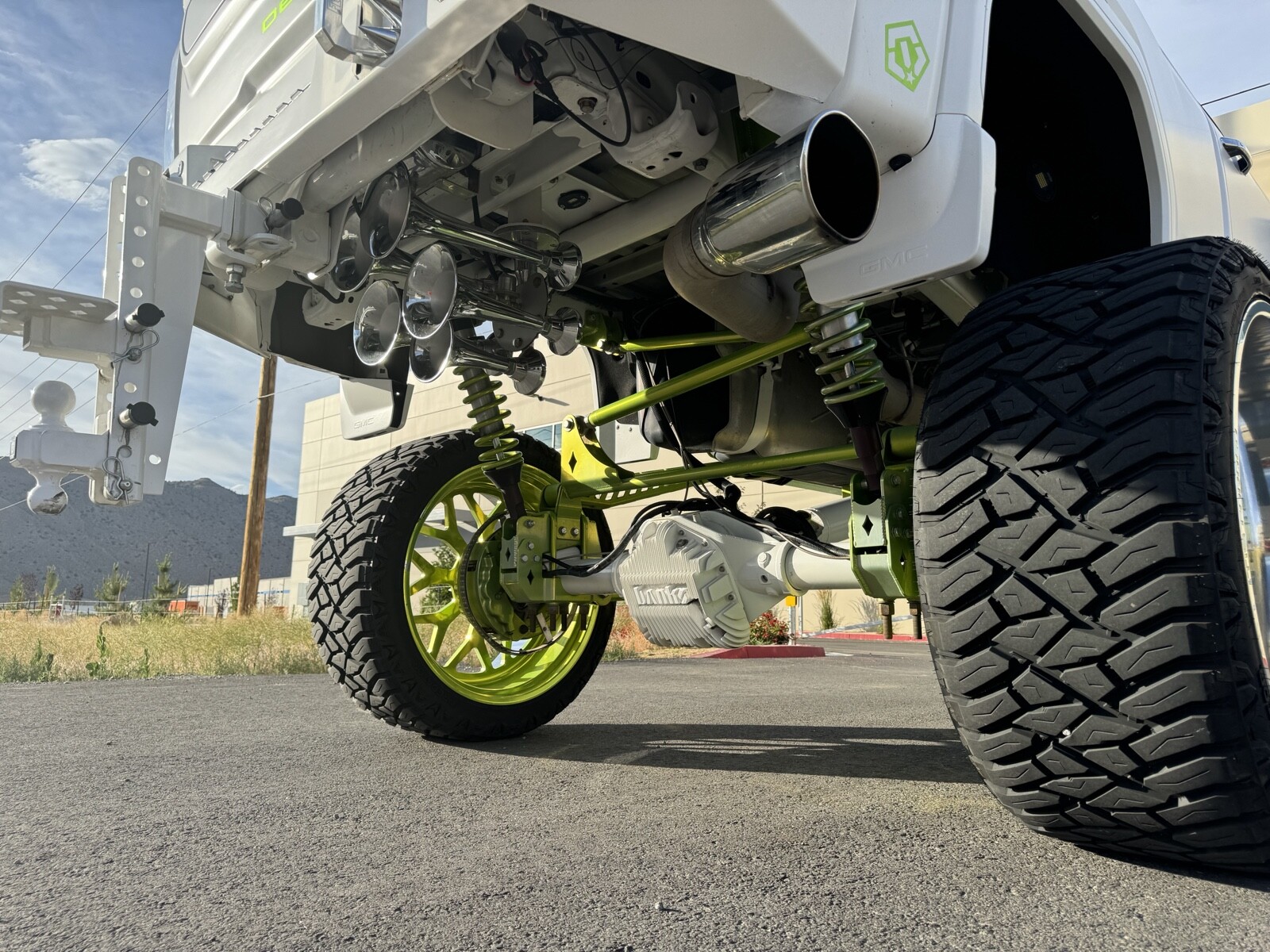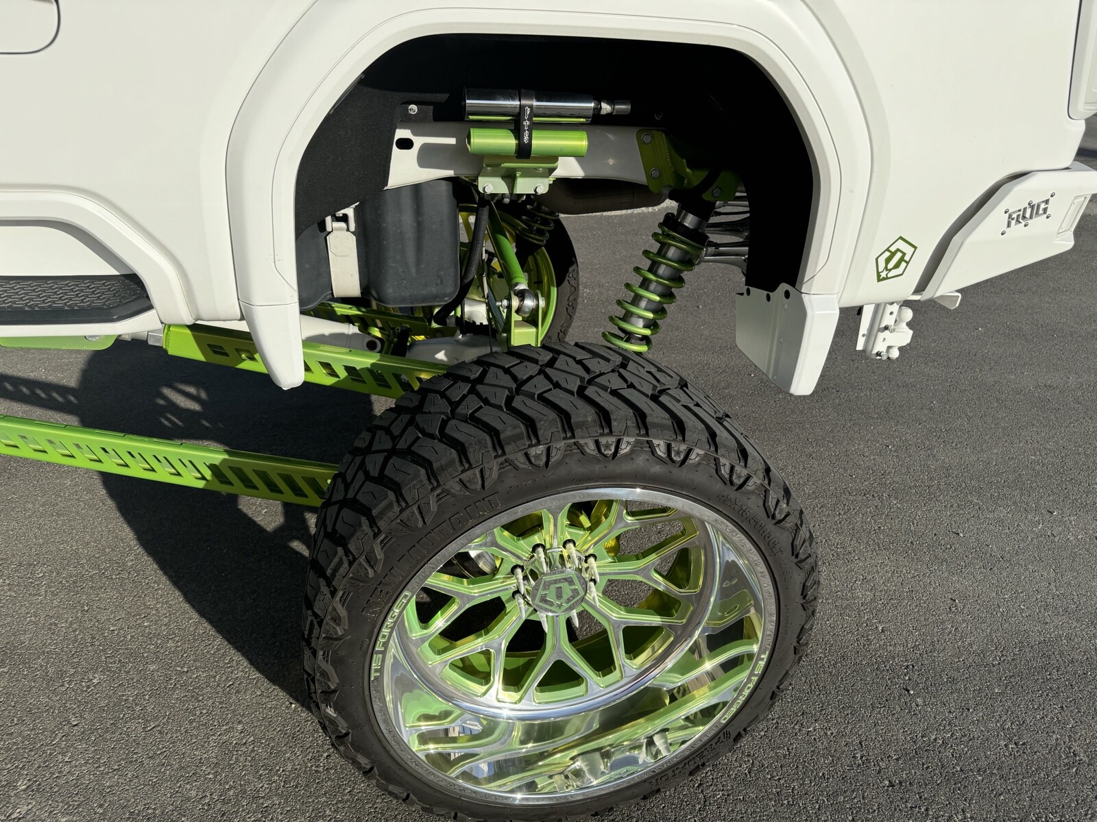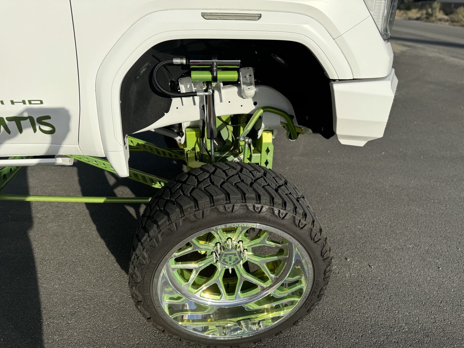 2020 GMC DENALI HD, 22 SEMA truck, 1 Owner, 26.5k miles, 6.6L L5P Duramax diesel, Allison 10 speed transmission, heads up display, Sunroof, window tint 20% and 5%, Avery Dennison Satin white wrap, white frame, 20 inch (FTS) lift kit (King of the bolt ons), box shape track bar upgrade, kryptonite tie rods, Flog steel demon bumpers w/pod upgrades front/back, 30x16 TIS Polished forged wheels, 4216.50 x30 predator new mutant XMT's, 2 inch billet spacers, KapKing floater billet caps, True Spike Lug nuts, 8 piston SSBC Barbarian Brakes, ceramic pads, banks diff cover, Banks catback exhaust, Hornblasters train horns (Admiral), Go recon color matched taillights, color matched headlights white marker switchback, rear view mirrors white lights/switchbacks, white cab lights, 16 Super bright white Rock lights, white wheels rings and pod lights, chrome light up white light grille (All Lighting Trendz), amp electric steps, bulletproof 16 inch drop hitch w/dual ball, have stabilizers never mounted, 4 JL audio w-7 eight inch woofers. Ported box under seat, 3k watt gladen amp, retrax sliding bed cover.