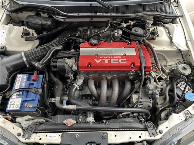 Underneath, weight-saving measures are discreet but effective, notably through the omission of numerous sound-deadening materials. The European-spec Accord Type R is propelled by a spirited 2.2-liter inline-four, eager to rev to its 8000rpm redline. Adorned with a red-painted valve cover proudly displaying the VTEC emblem, the H22A7 engine churns out 212hp at 7200rpm and 215Nm of torque at 6700rpm.