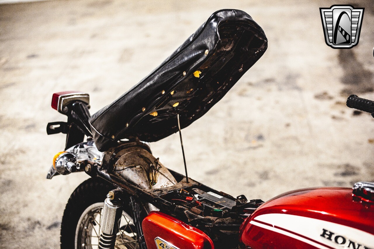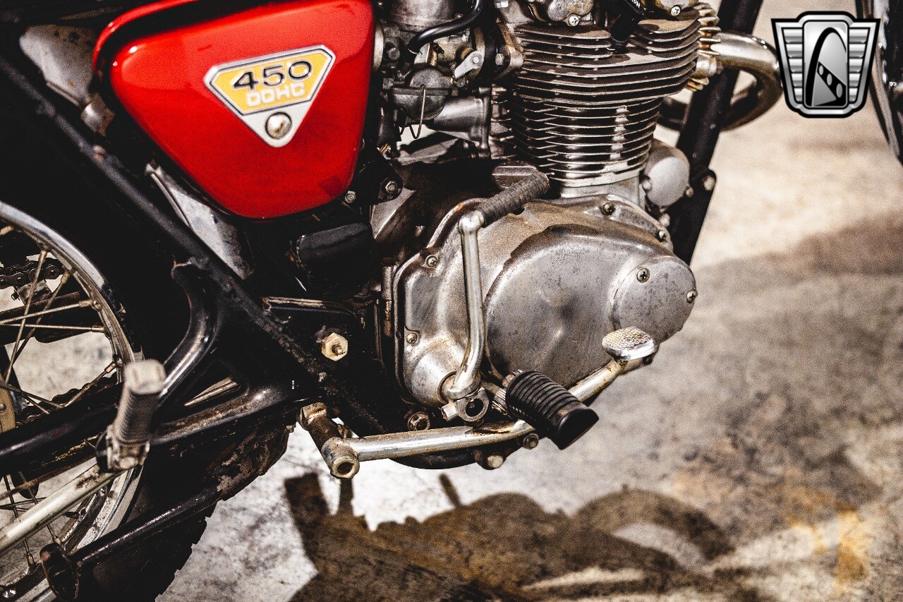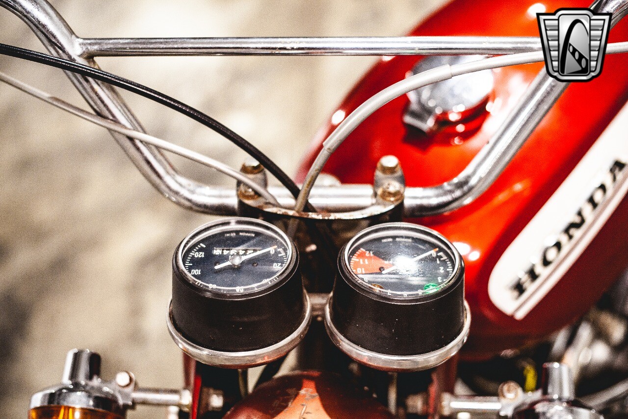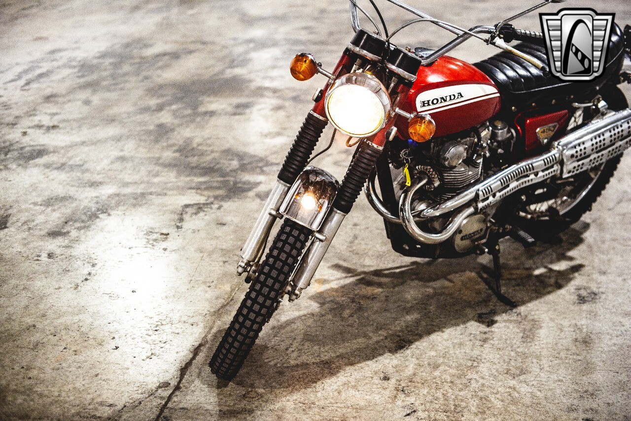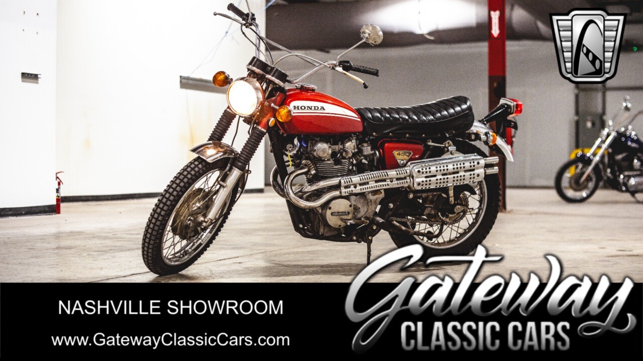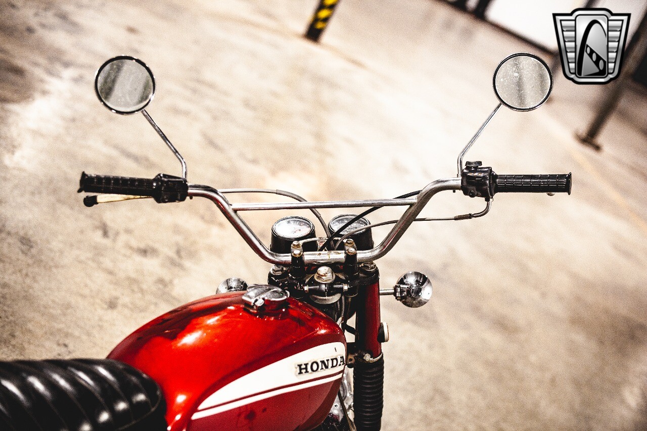 Gateway classic cars of Nashville is happy to digitally present to you this 1970 Honda Scrambler. If you were a young man in the 1970's then chances are you are familiar with endura racing. This was a genius idea of a mix of off road and on track racing that tested men and bikes to the extreme. What was needed was a light bike that had the low end torque and suspension to handle the off road part and the power to pull hard on the road. Enter the Honda Scrambler! The tins on this blast from the past are covered in a striking shade of red and the seat is of course black vinyl.