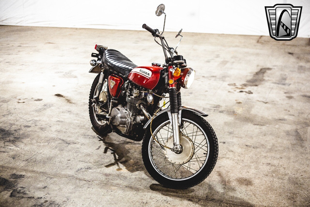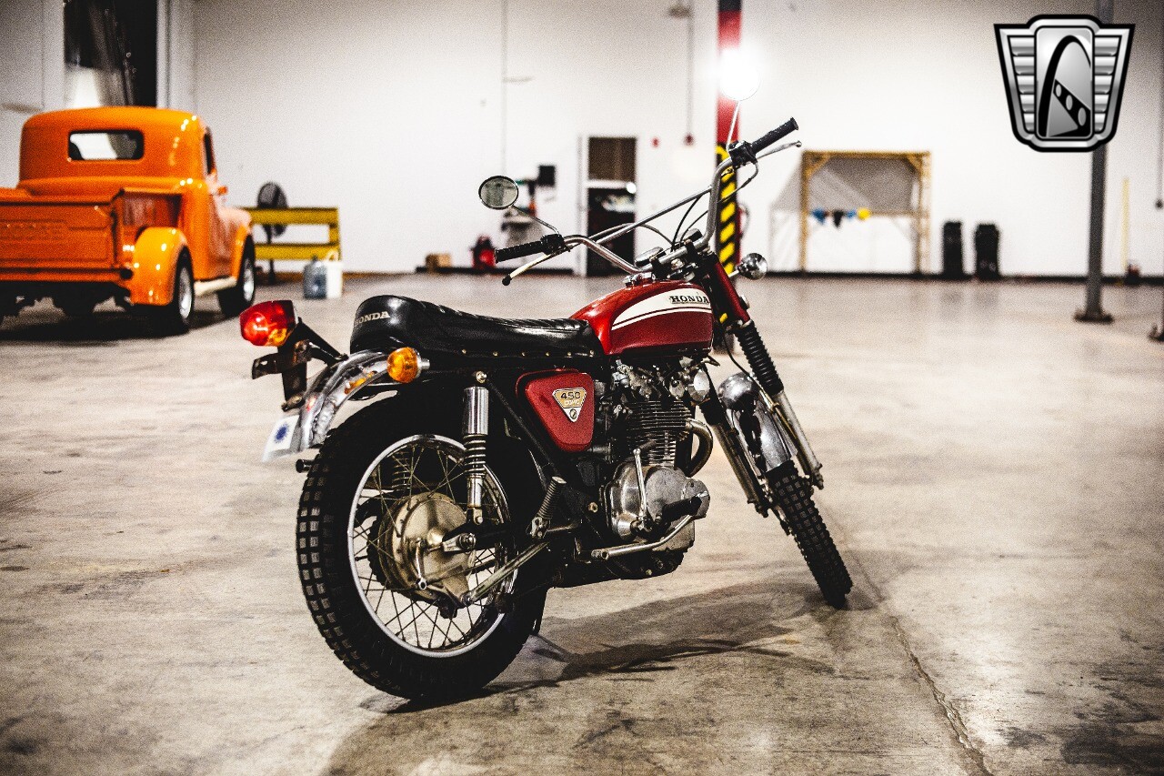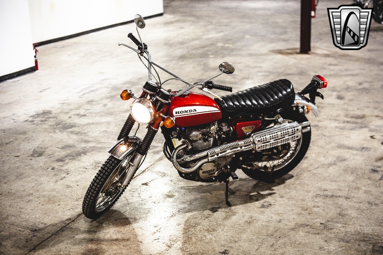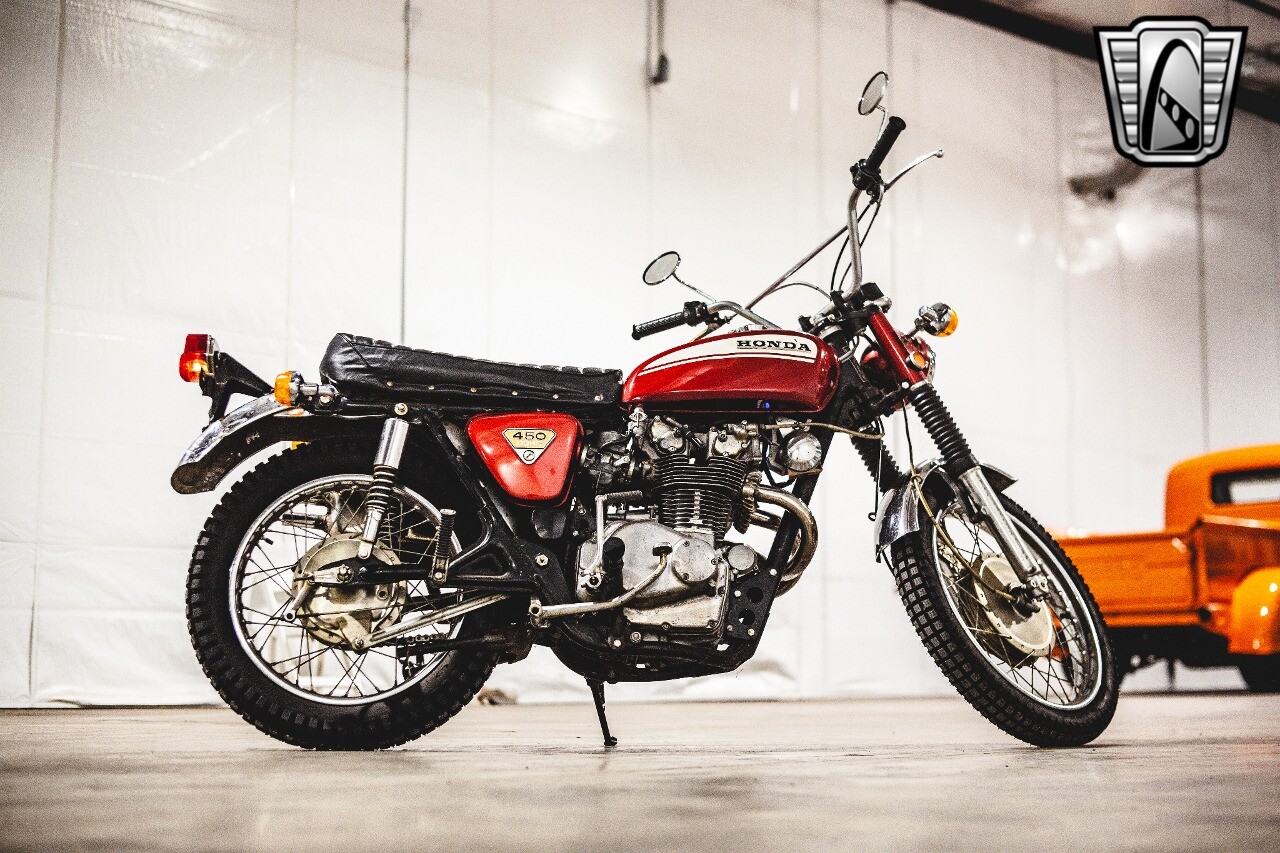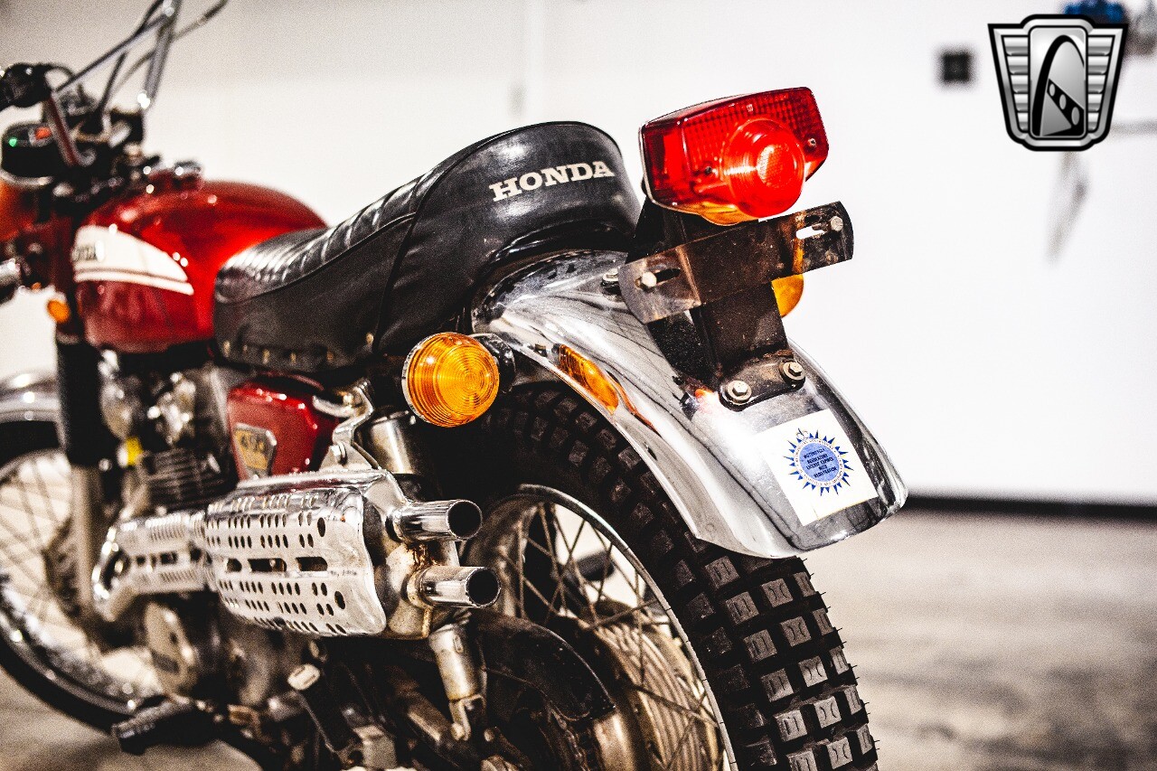 Gateway classic cars of Nashville is happy to digitally present to you this 1970 Honda Scrambler. If you were a young man in the 1970's then chances are you are familiar with endura racing. This was a genius idea of a mix of off road and on track racing that tested men and bikes to the extreme. What was needed was a light bike that had the low end torque and suspension to handle the off road part and the power to pull hard on the road. Enter the Honda Scrambler! The tins on this blast from the past are covered in a striking shade of red and the seat is of course black vinyl.