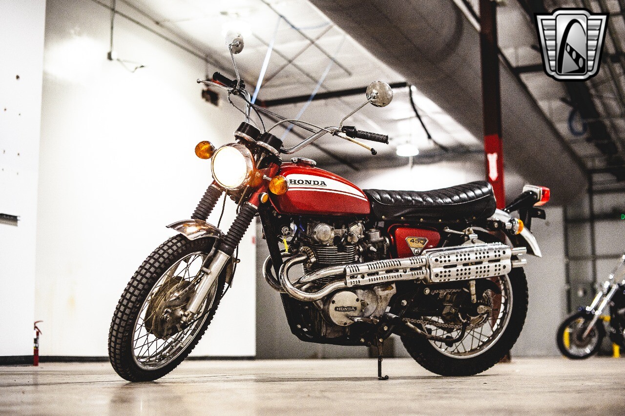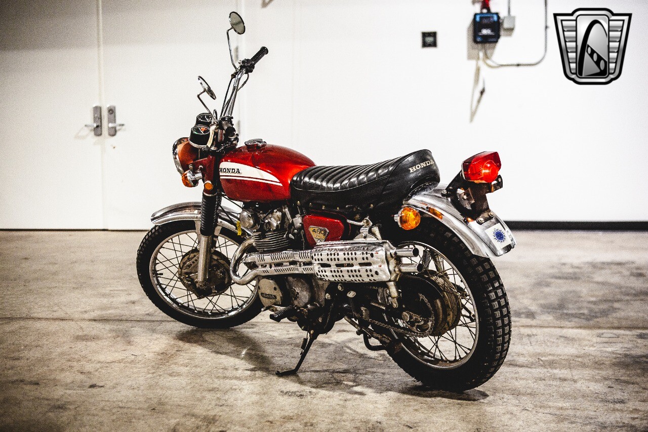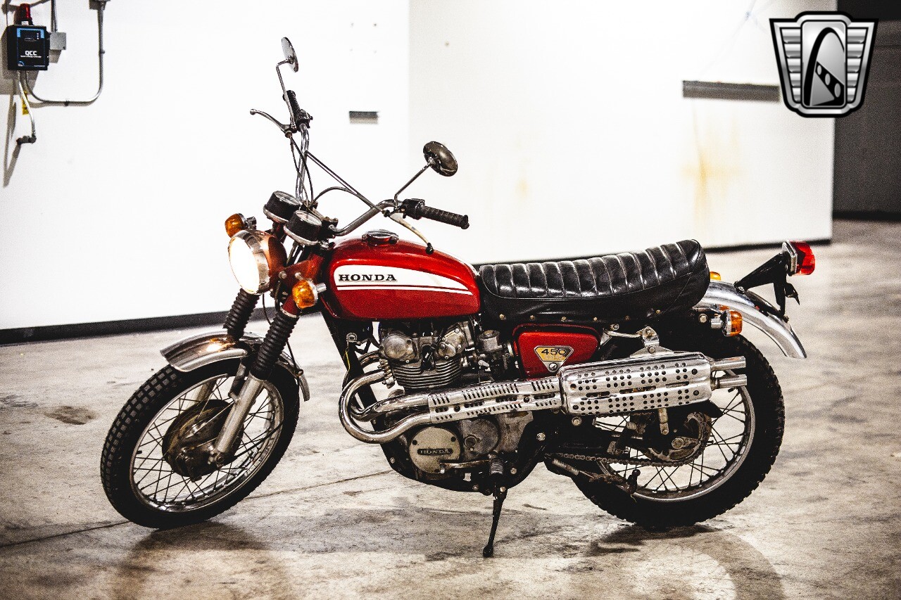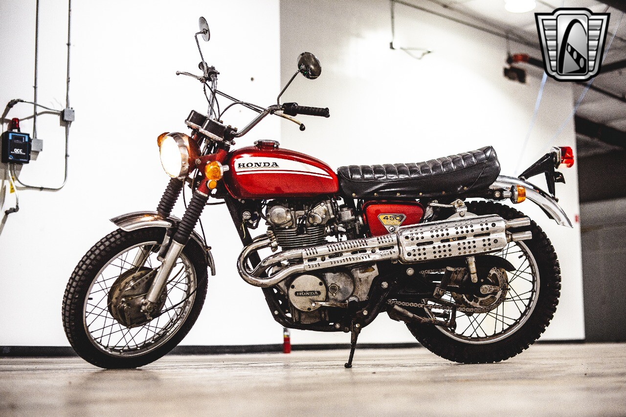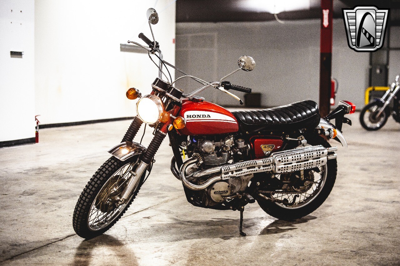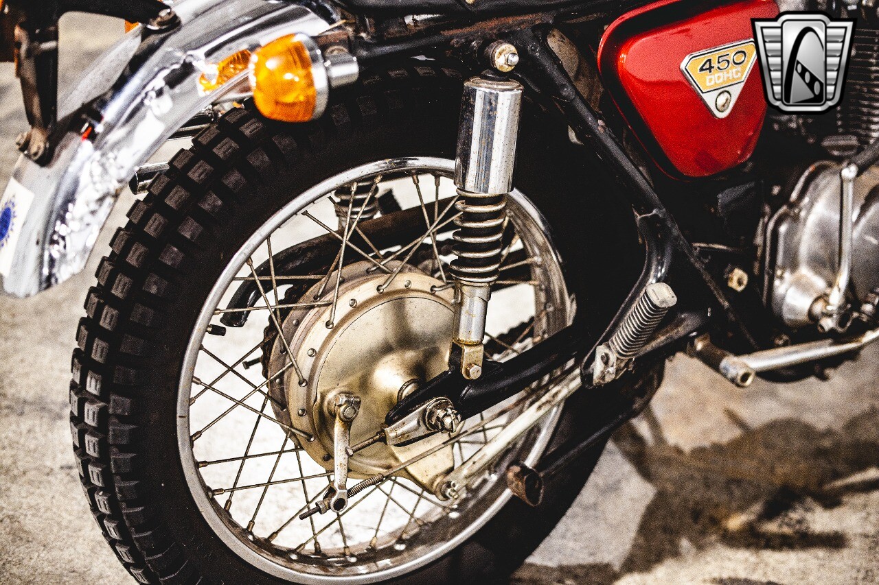 Gateway classic cars of Nashville is happy to digitally present to you this 1970 Honda Scrambler. If you were a young man in the 1970's then chances are you are familiar with endura racing. This was a genius idea of a mix of off road and on track racing that tested men and bikes to the extreme. What was needed was a light bike that had the low end torque and suspension to handle the off road part and the power to pull hard on the road. Enter the Honda Scrambler! The tins on this blast from the past are covered in a striking shade of red and the seat is of course black vinyl.