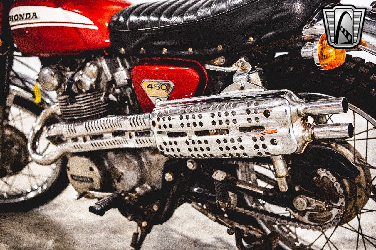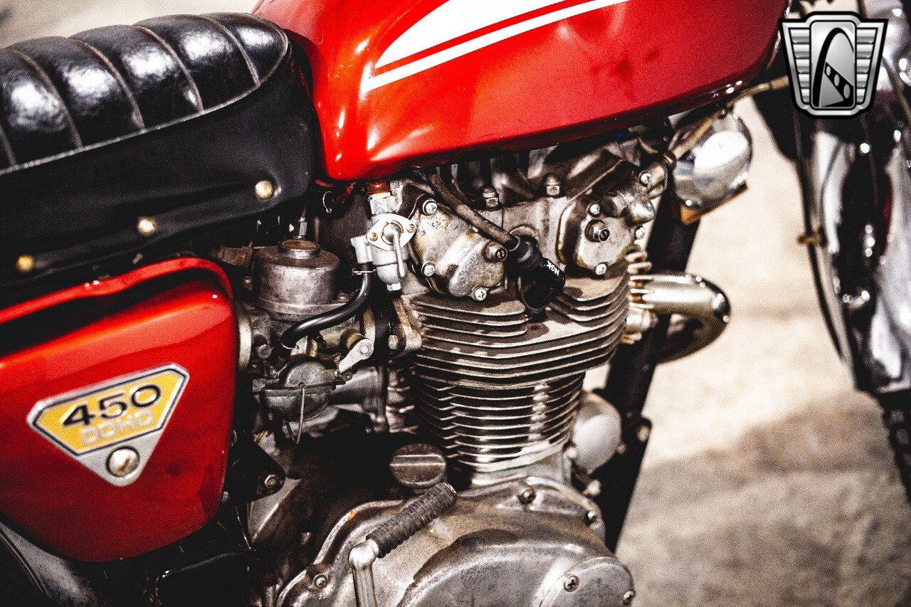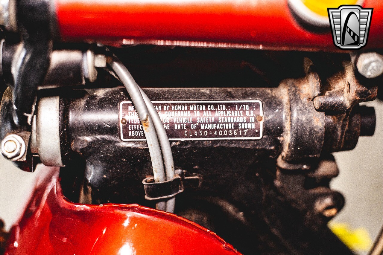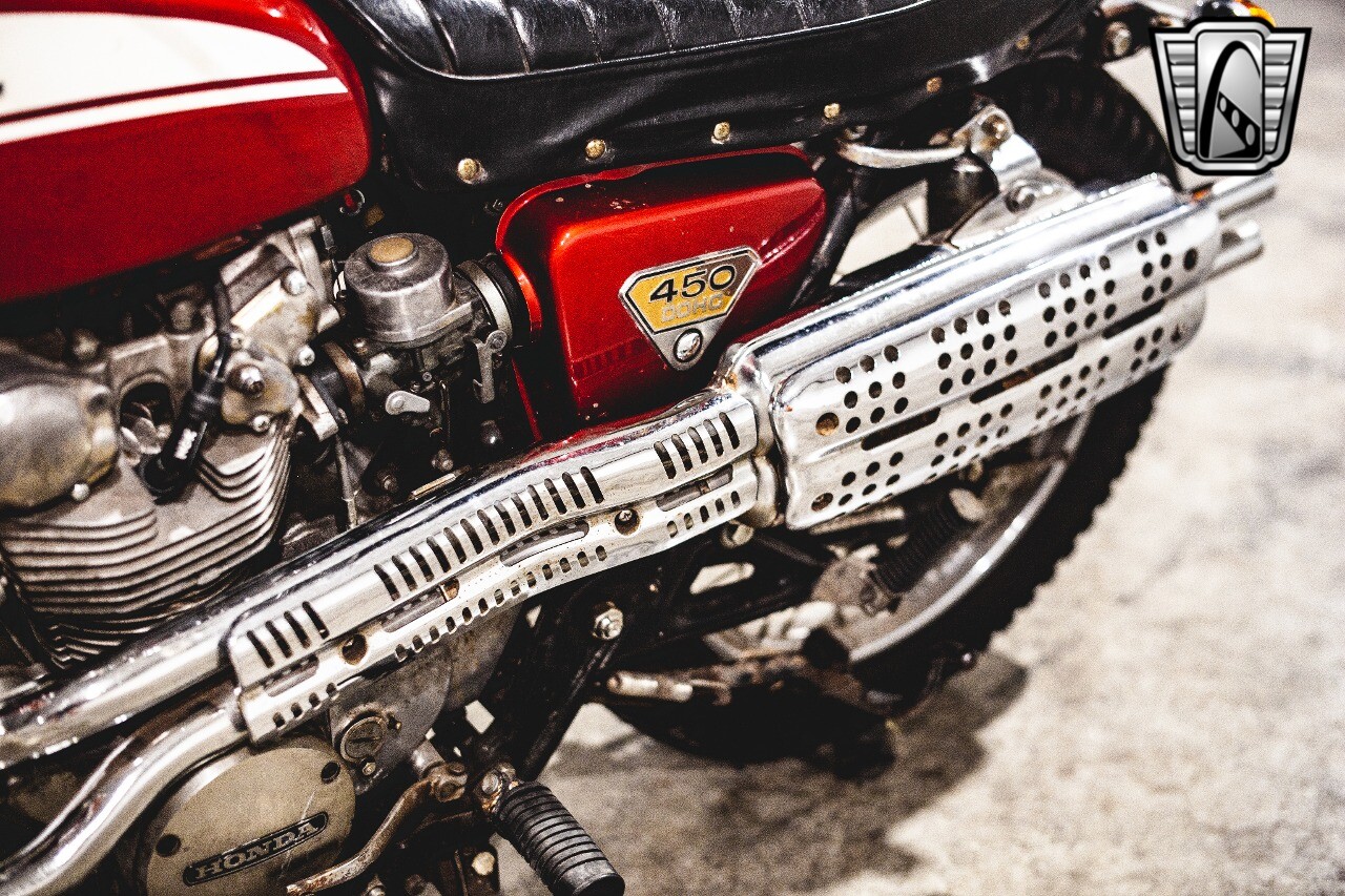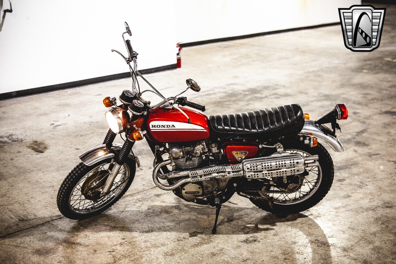 Gateway classic cars of Nashville is happy to digitally present to you this 1970 Honda Scrambler. If you were a young man in the 1970's then chances are you are familiar with endura racing. This was a genius idea of a mix of off road and on track racing that tested men and bikes to the extreme. What was needed was a light bike that had the low end torque and suspension to handle the off road part and the power to pull hard on the road. Enter the Honda Scrambler! The tins on this blast from the past are covered in a striking shade of red and the seat is of course black vinyl.