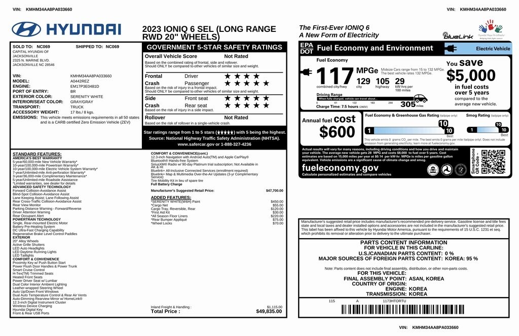State or local taxes, title, license fee, processing fees, registration fee, dealer documentary fee, finance charges, emission testing fees, and compliance fees are additional to the advertised price.