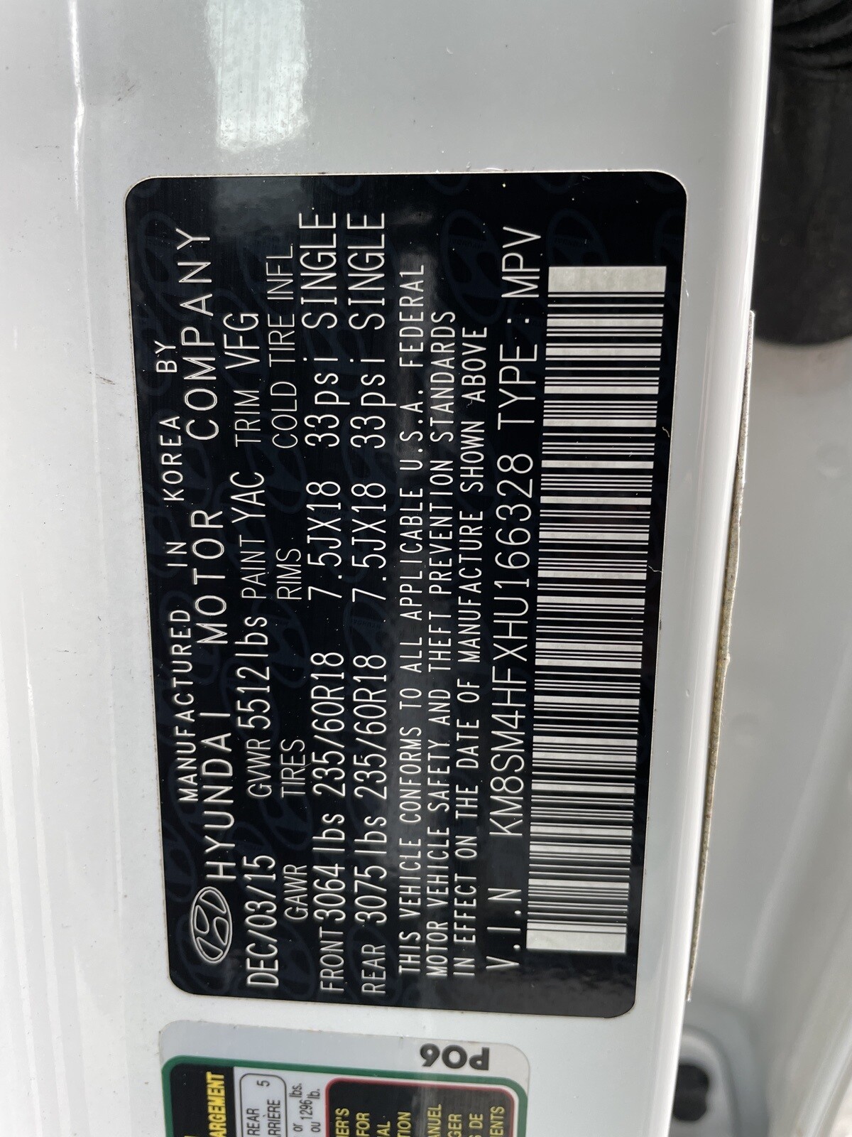 To check for open recalls please visit recalls?vin=KM8SM4HFXHU166328#vin.