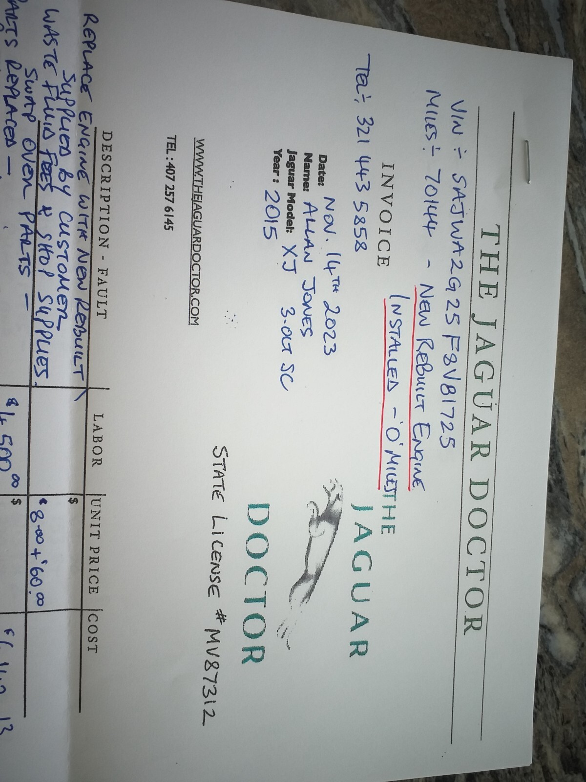 Jaguar XJL Portfolio 3.0ltr Supercharged, I bought this car Last year after searching a long time to find the best car available,I found this one In a dealership in Florida, a pretty much perfect car, White with Tan leather, lovely condition, I drove the car a while and it ran great, one day the car just stopped, the car had 69000 miles on clock, and I had it towed into Jaguar Specialist cars in Orlando, they inspected the car and found ,that the coolant transfer pipe had broken, and resulted in the engine overheating, requiring a replacement engine , I had the choice of a used engine or factory rebuilt motor, I opted for the rebuilt engine and all the work was carried out by the workshop, including any thing else they found wrong , to include a full service to the car, This work came to over $21,000.00 ,I also had fitted a set of new chrome 20 inch wheels and Michelin tires, I have all reciepts available, I had all this done as I had no intention of selling the car as it is now Superb condition, things change and I now need to sell, so if your looking for one of these Supercharged Jaguars this is it ,only driven 1119 mile since all work carried out still under warranty for 6 months , please only bid if you intend to buy,Thanks for looking.