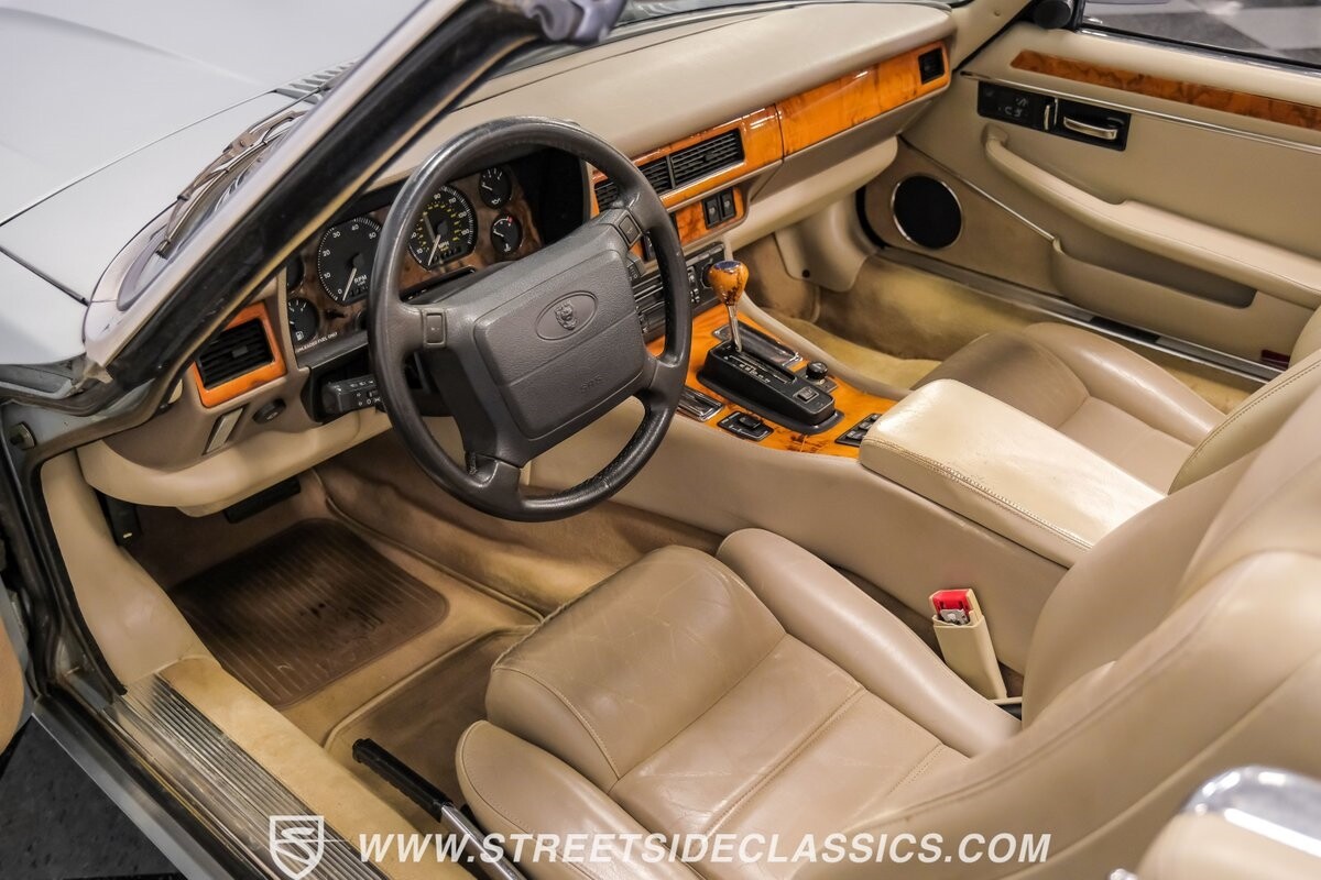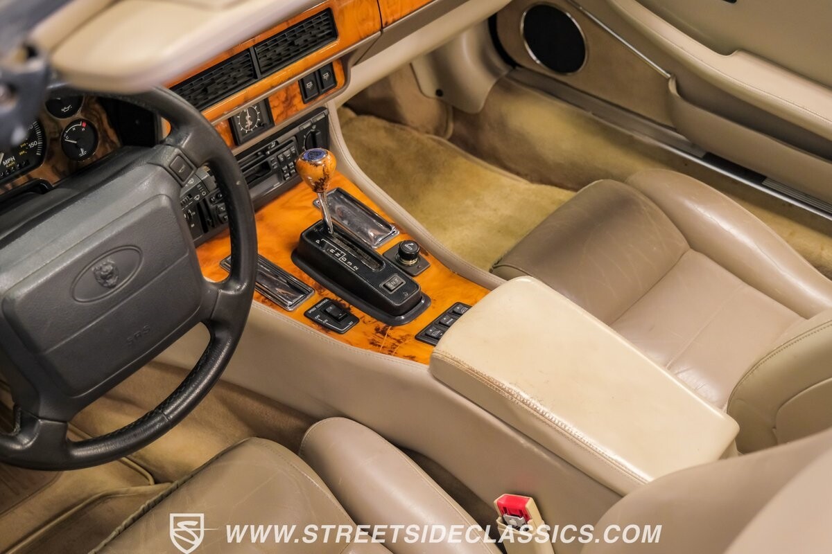 Slip into the sumptuous Doe Skin leather interior and be enveloped by the refined ambiance that only a Jaguar can provide. The beige buckets with console cradle you in comfort, while the floor shifter puts control at your fingertips. Immerse yourself in your favorite tunes courtesy of the upgraded sound system with added amp and sub. While the A/C does require service to blow cold again, every aspect of this XJS's interior has been thoughtfully crafted for your driving pleasure.