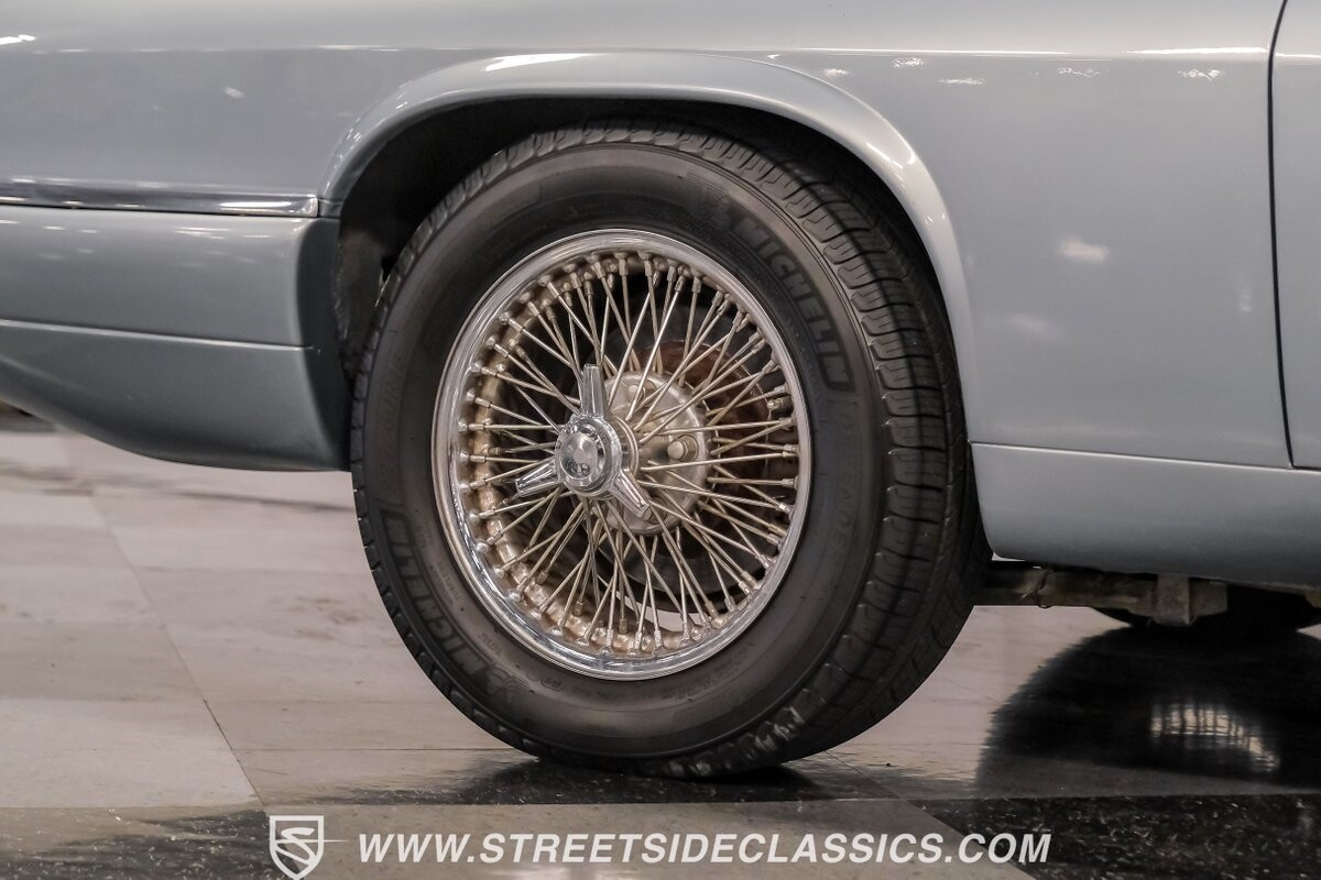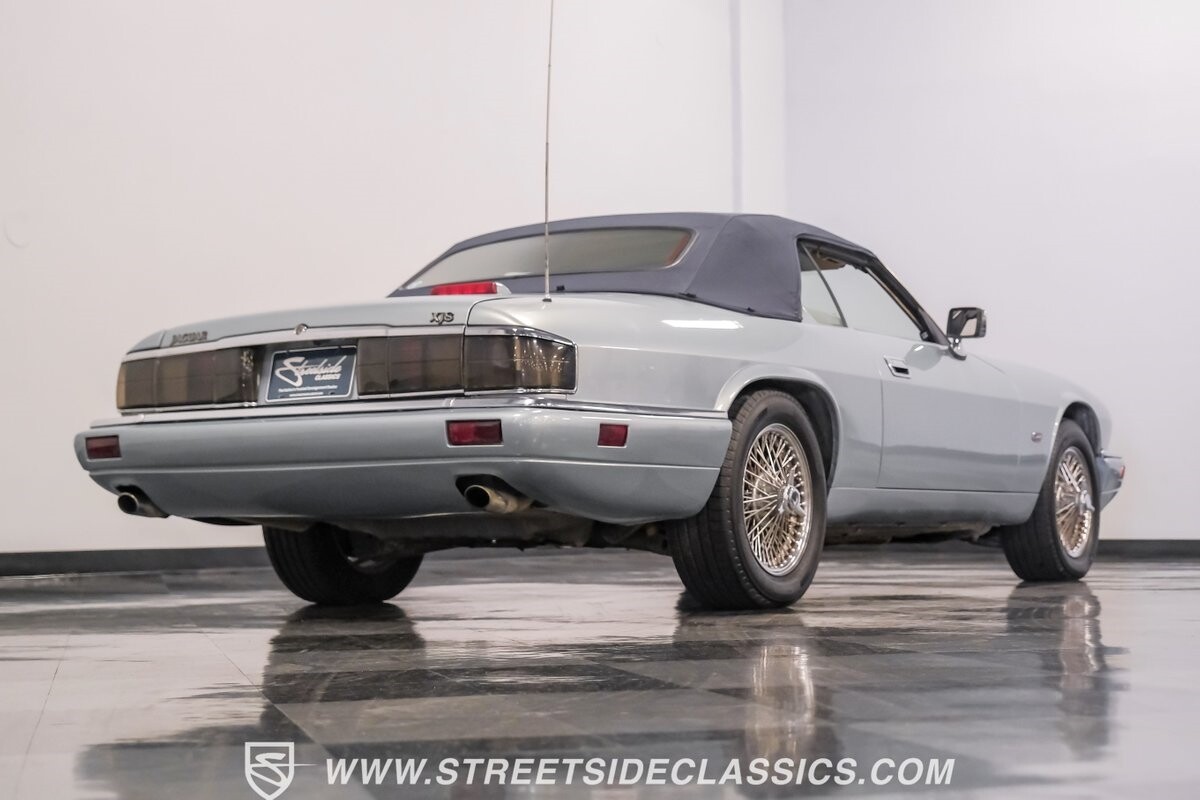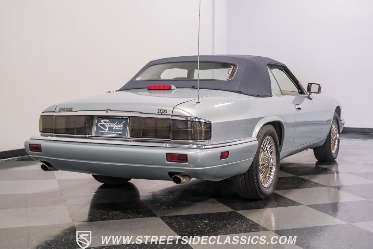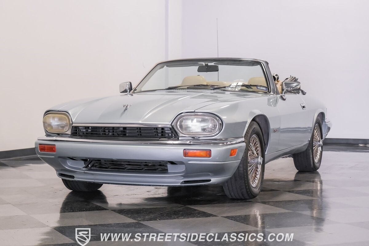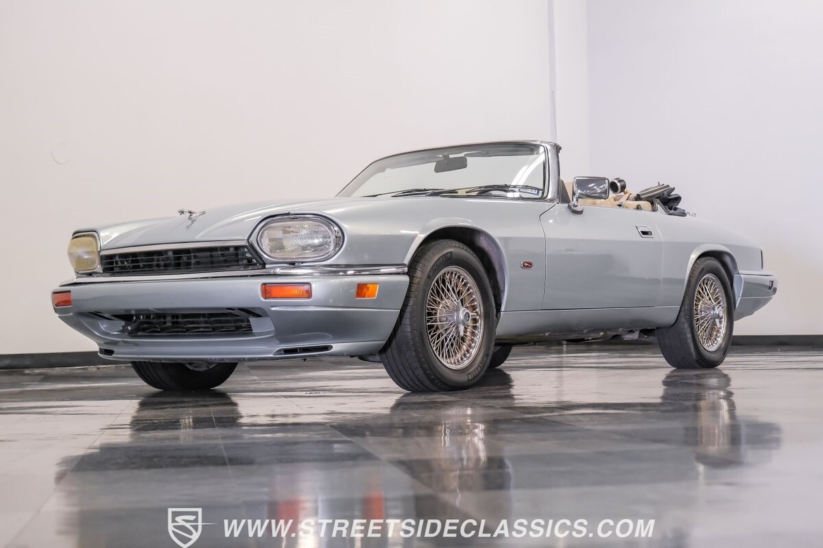 Elegance meets excitement in this 1995 Jaguar XJS Convertible, a masterful blend of British luxury and open-air exhilaration. Cloaked in a captivating shade of Ice Blue Metallic, this final-year XJS effortlessly turns admiring glances into longing stares. The 16" alloy wheels, wrapped in Michelin tires, provide a confident stance, while the blue cloth convertible top with glass rear window invites you to succumb to the allure of top-down motoring.