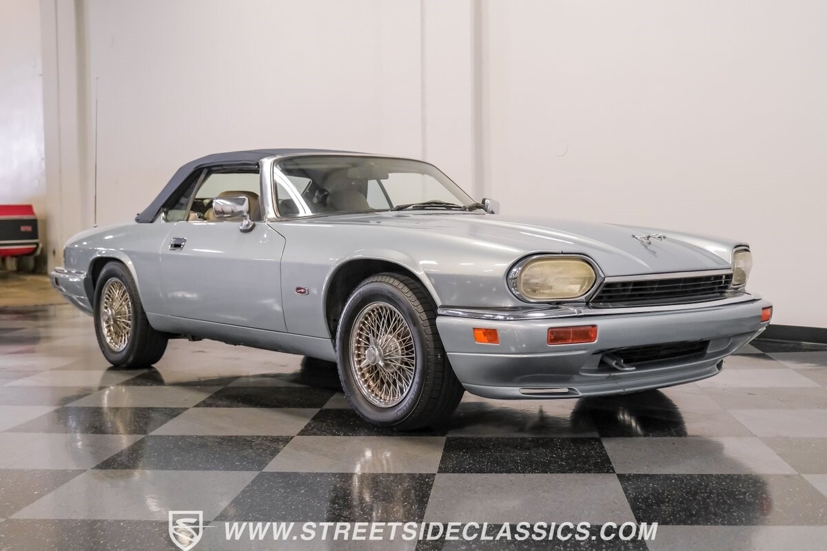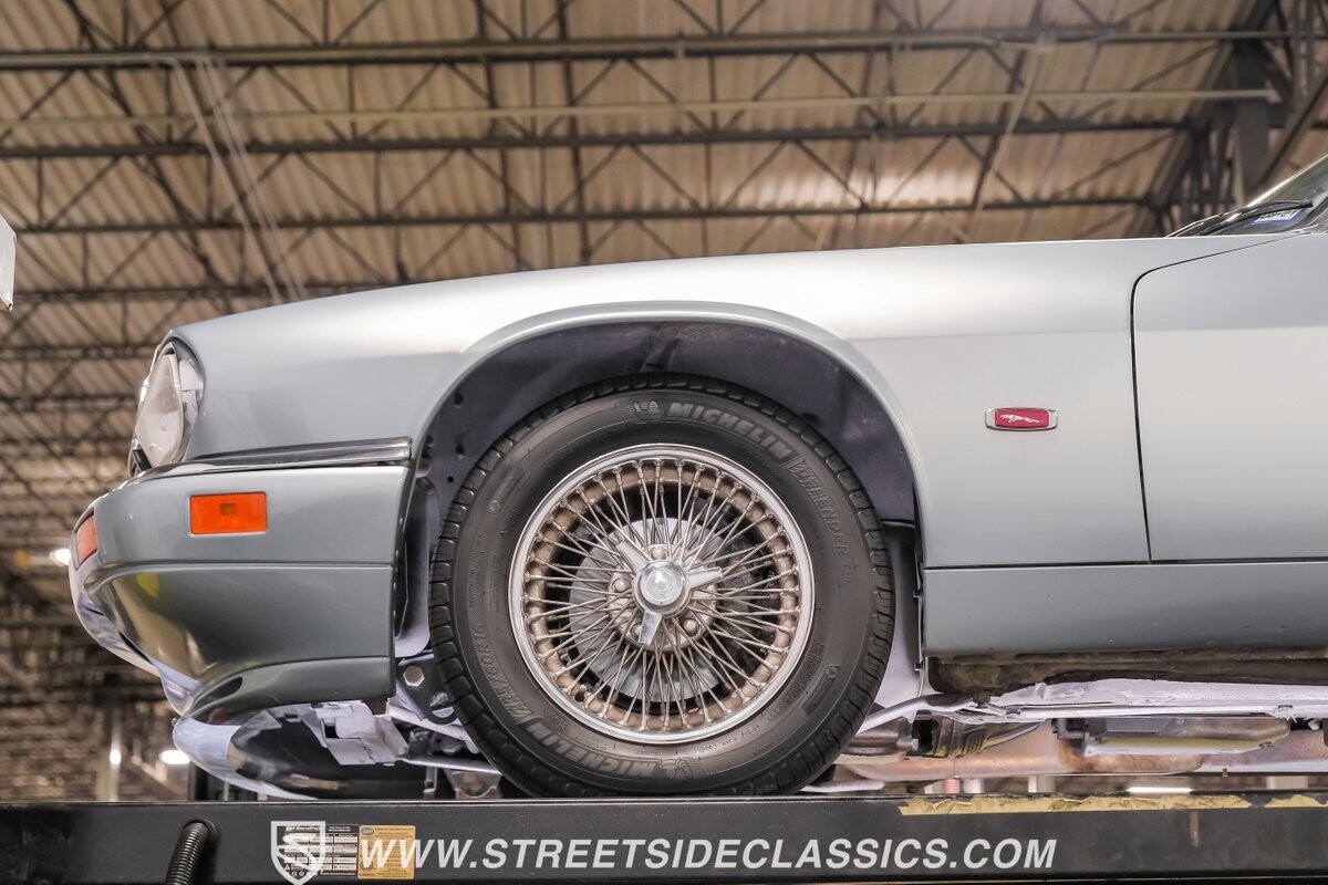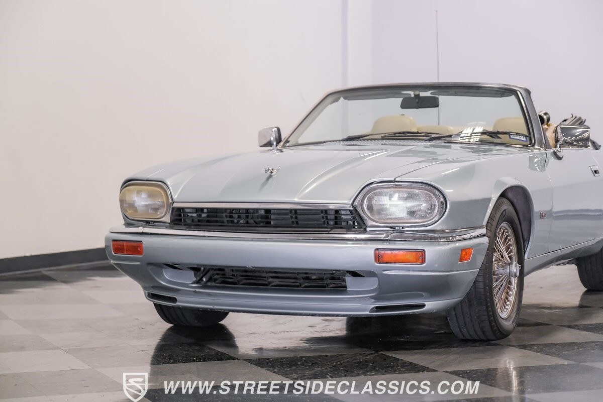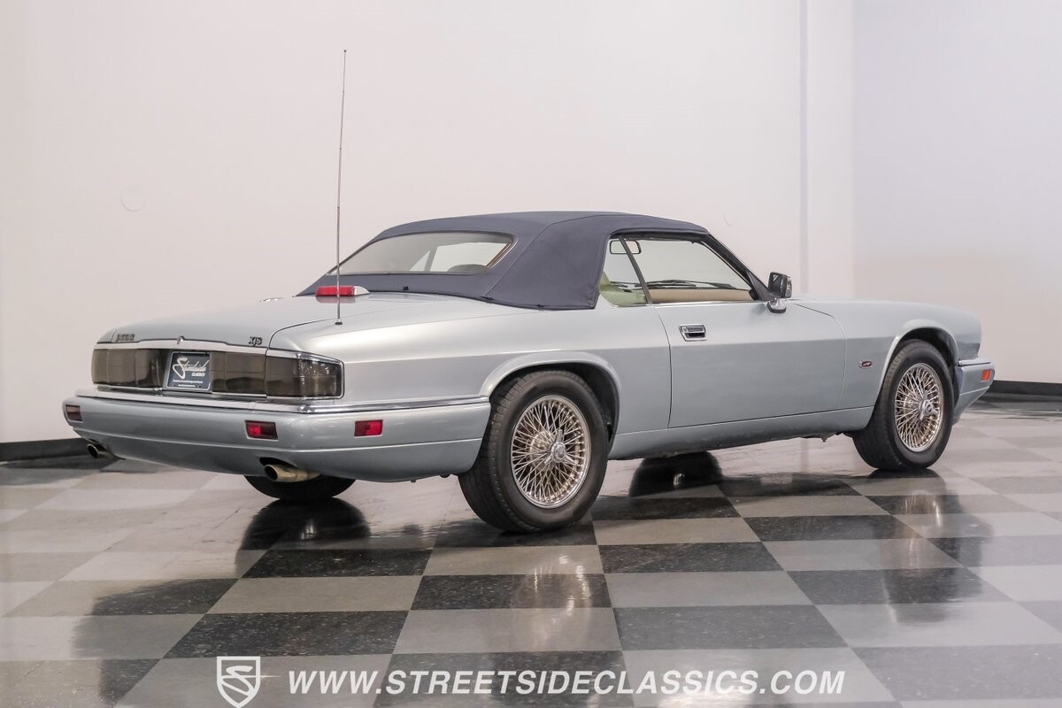Elegance meets excitement in this 1995 Jaguar XJS Convertible, a masterful blend of British luxury and open-air exhilaration. Cloaked in a captivating shade of Ice Blue Metallic, this final-year XJS effortlessly turns admiring glances into longing stares. The 16" alloy wheels, wrapped in Michelin tires, provide a confident stance, while the blue cloth convertible top with glass rear window invites you to succumb to the allure of top-down motoring.