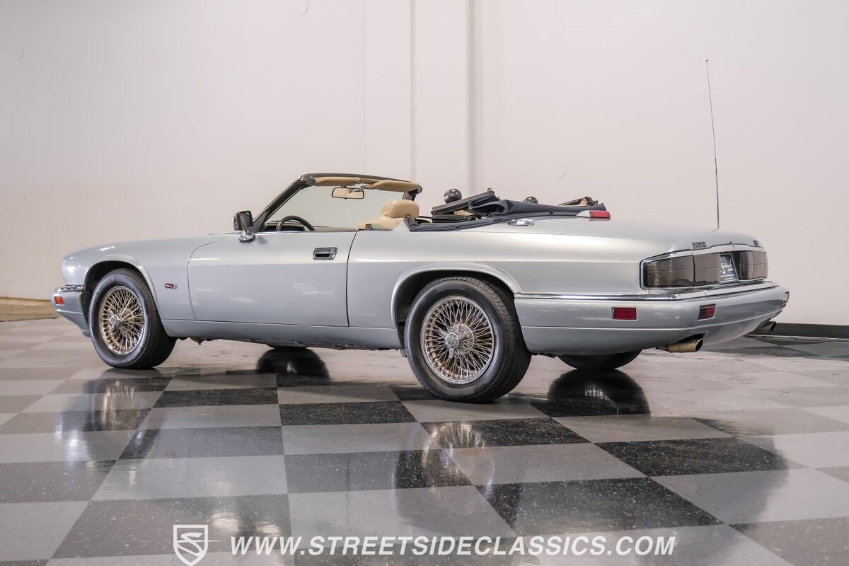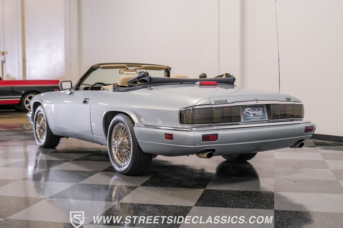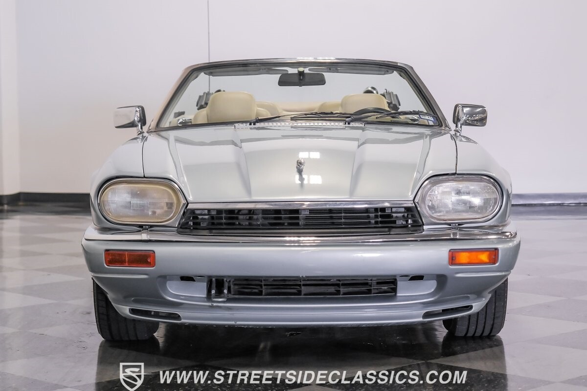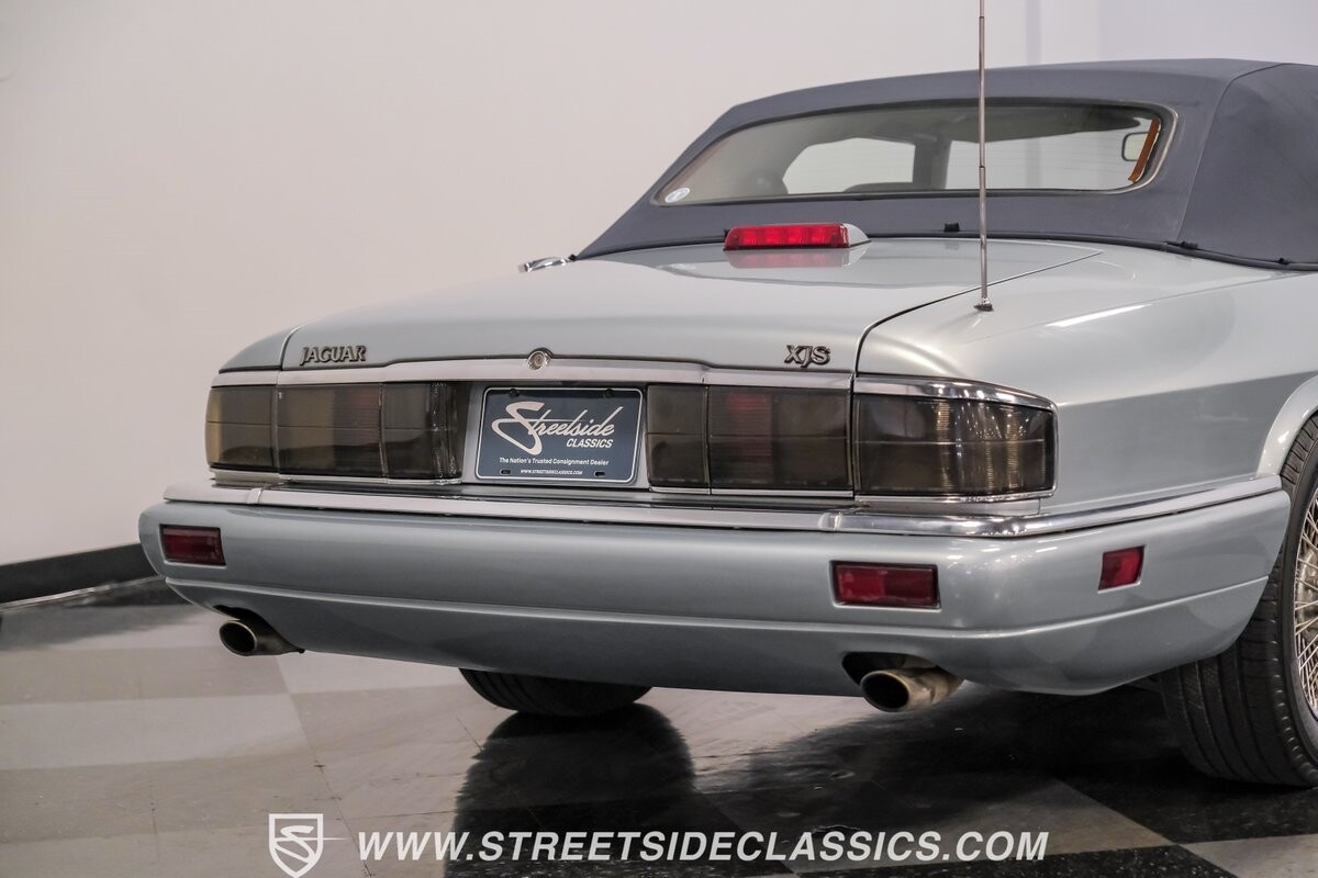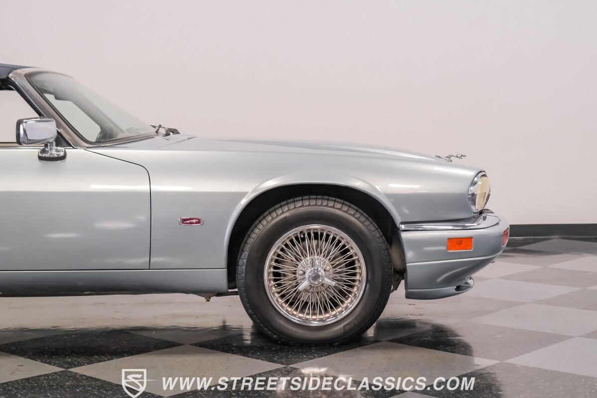 Elegance meets excitement in this 1995 Jaguar XJS Convertible, a masterful blend of British luxury and open-air exhilaration. Cloaked in a captivating shade of Ice Blue Metallic, this final-year XJS effortlessly turns admiring glances into longing stares. The 16" alloy wheels, wrapped in Michelin tires, provide a confident stance, while the blue cloth convertible top with glass rear window invites you to succumb to the allure of top-down motoring.