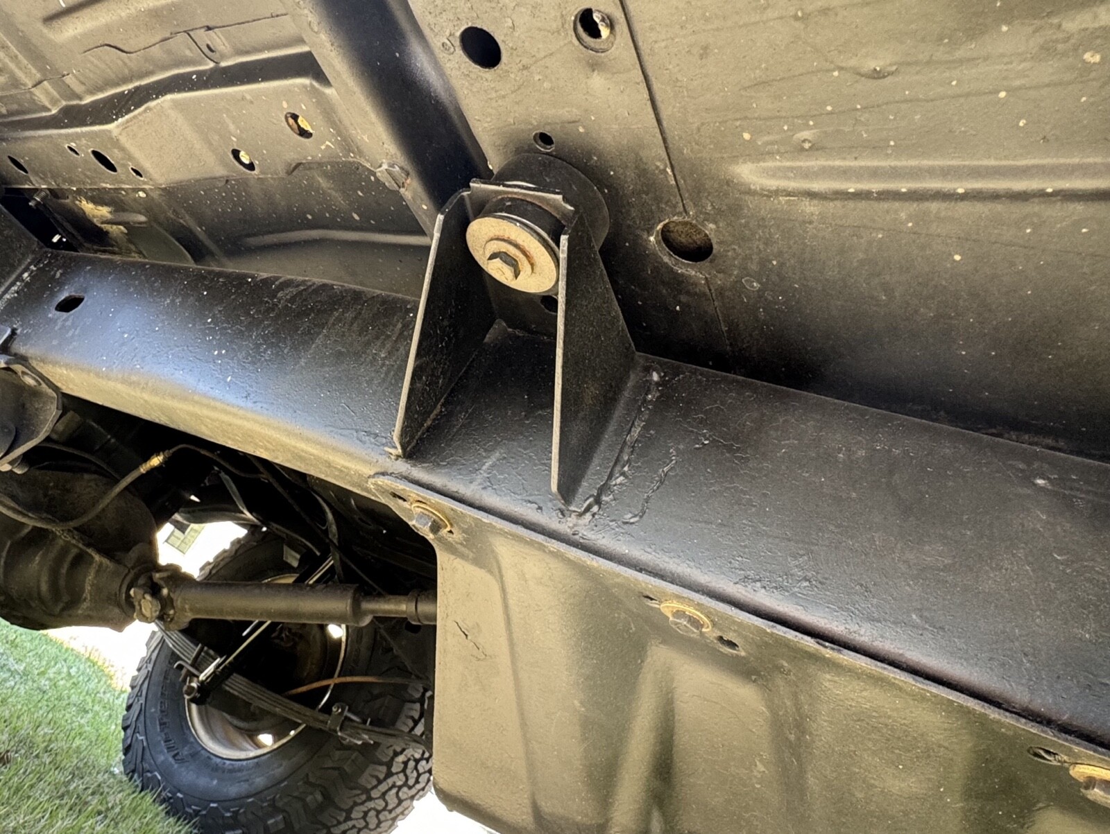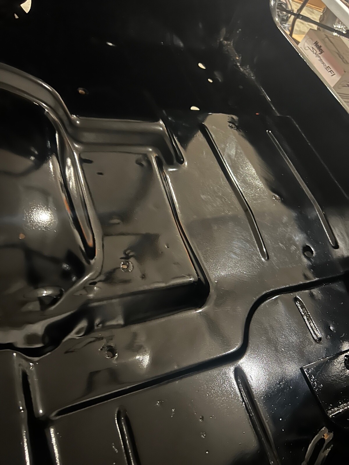 Underside degreased, wire wheeled and sprayed with Eastmans tinted rust converter.