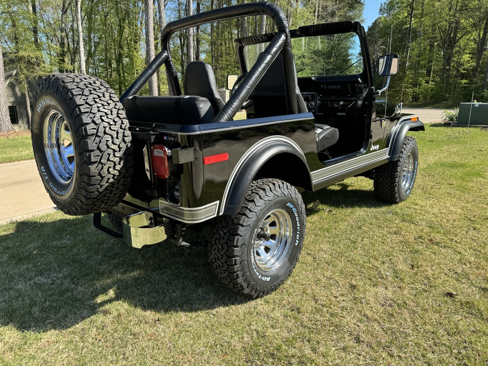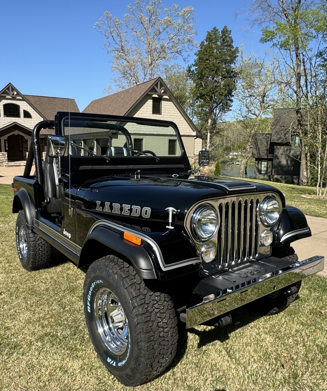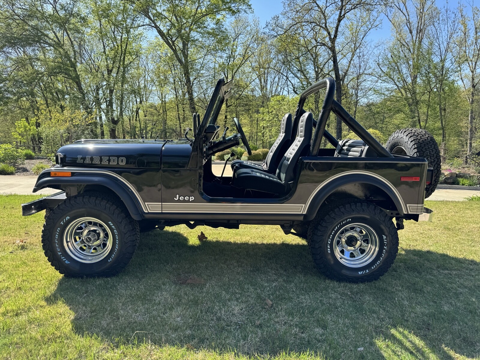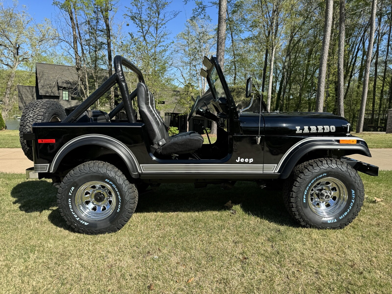 1980 Triple Black H code Laredo, Jeep CJ, Automatic TF999, 304 CJ7. Meticulous, frame on restoration. There were many one year only details in 1980, particularly for this first year of the Laredo package, this Jeep has them all. It left the factory highly optioned with cruise control and A/C (cruise and AC were removed prior to restoration). 16,271 shown on the odometer. Comes with a nice original Whitco bikini top.Seller's Notes