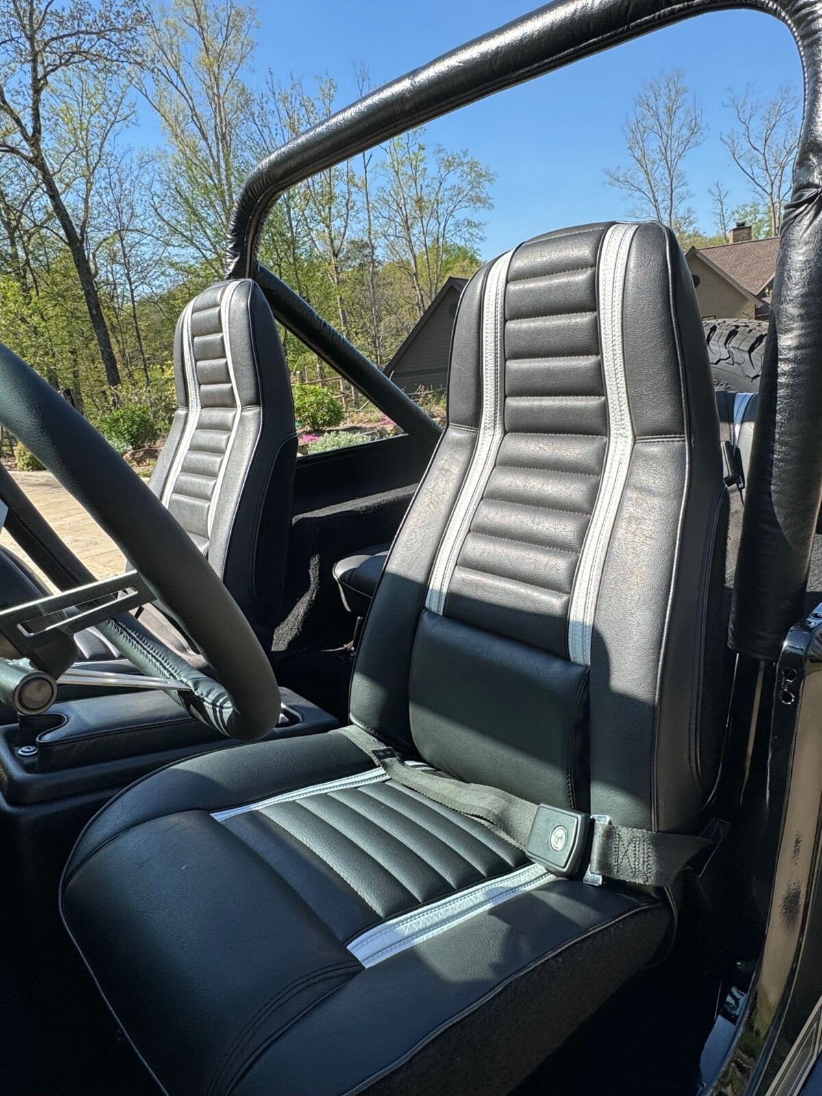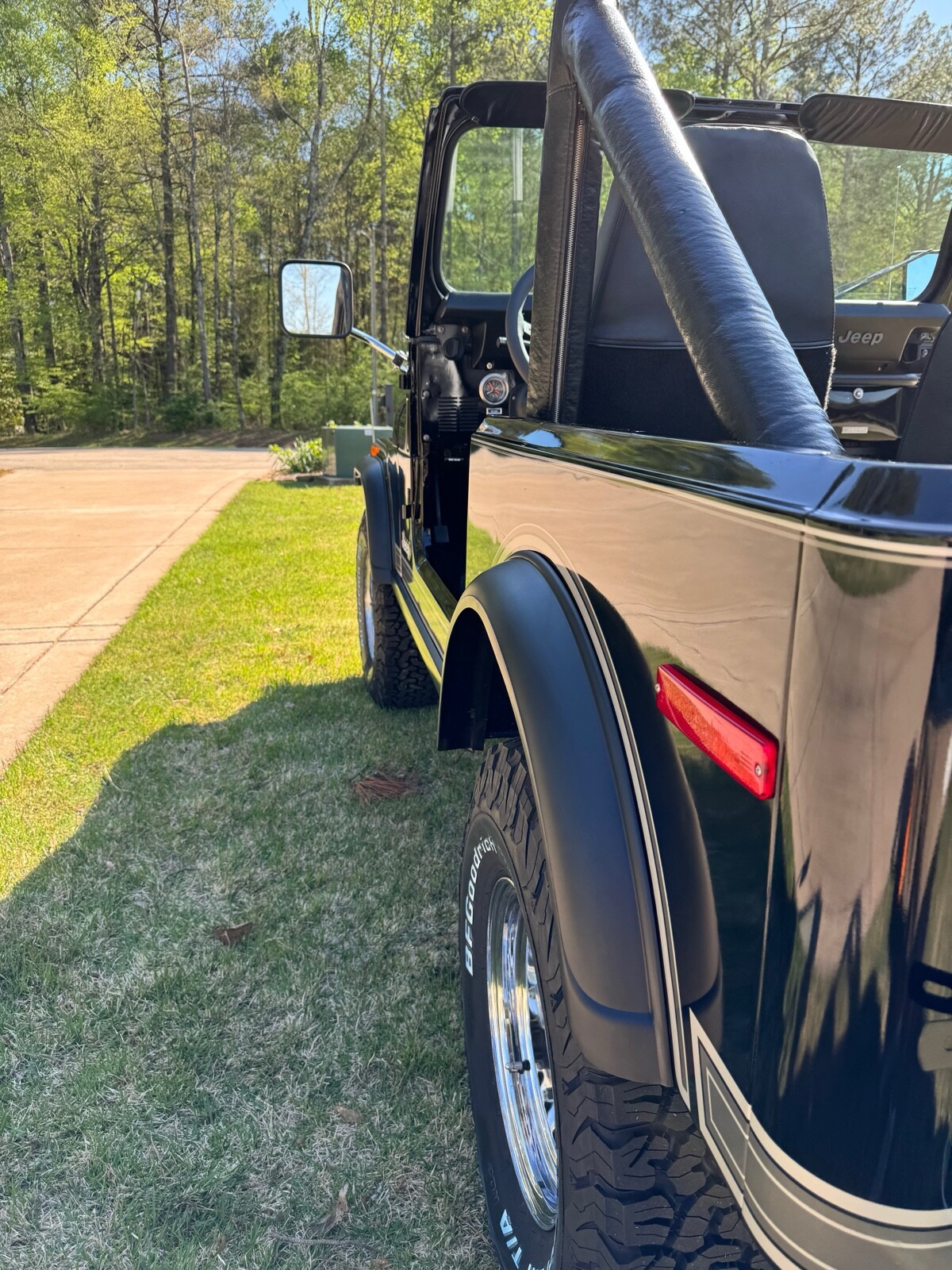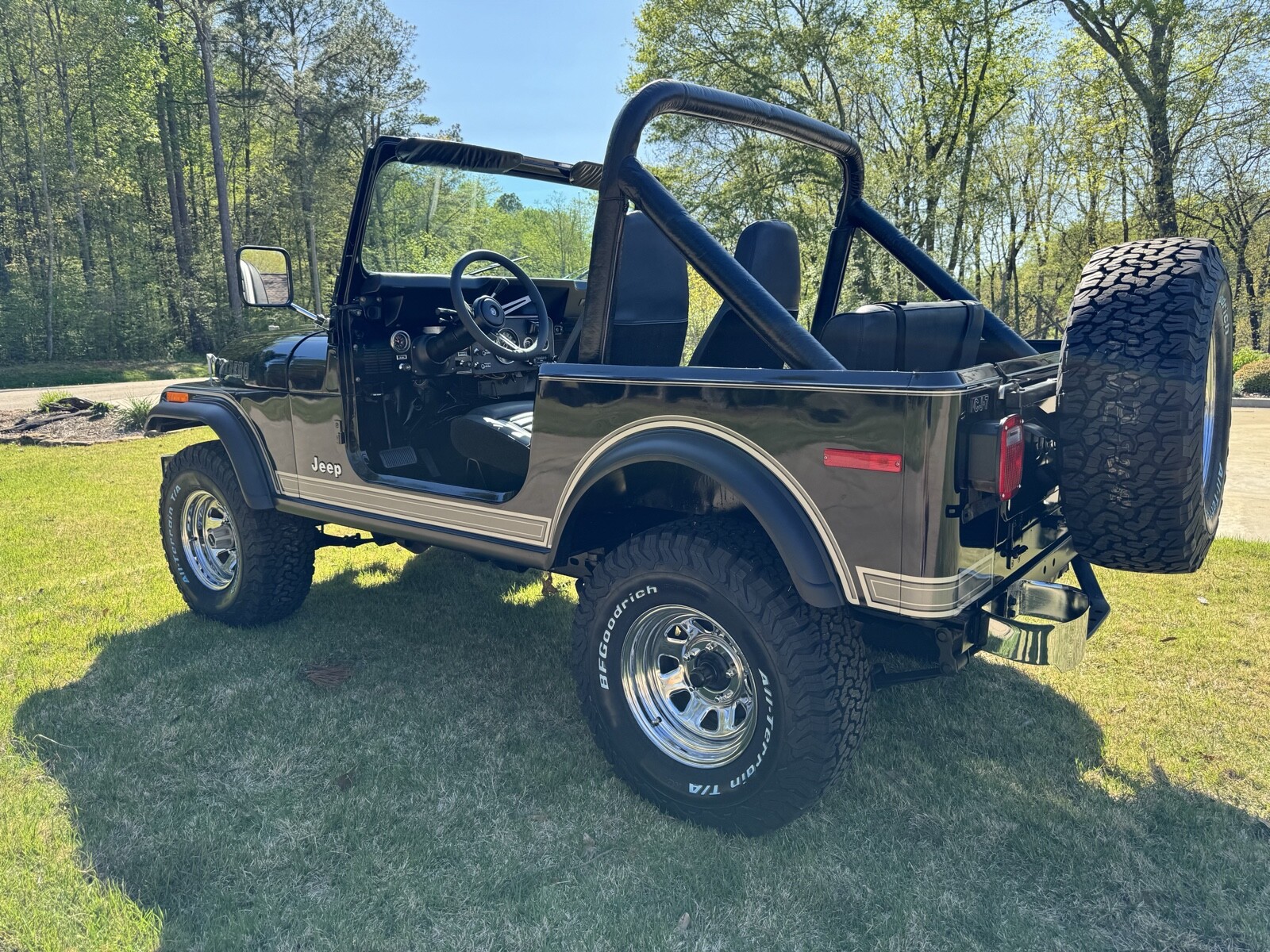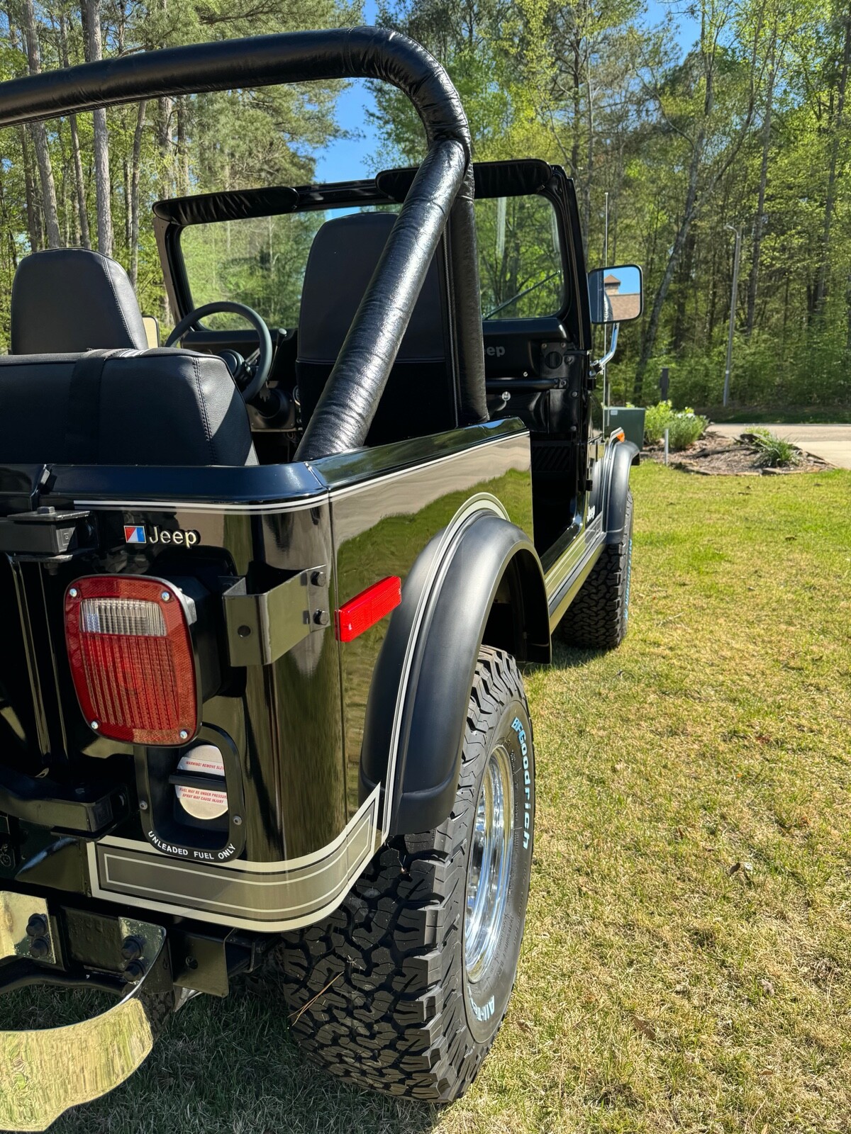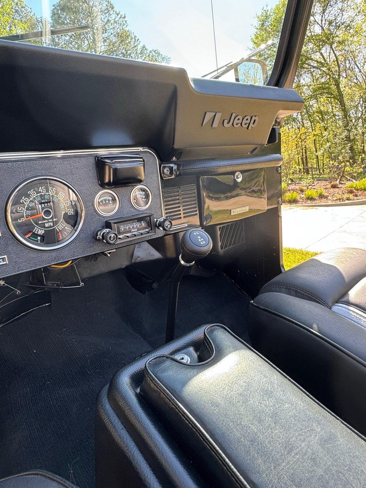 1980 Triple Black H code Laredo, Jeep CJ, Automatic TF999, 304 CJ7. Meticulous, frame on restoration. There were many one year only details in 1980, particularly for this first year of the Laredo package, this Jeep has them all. It left the factory highly optioned with cruise control and A/C (cruise and AC were removed prior to restoration). 16,271 shown on the odometer. Comes with a nice original Whitco bikini top.Seller's Notes