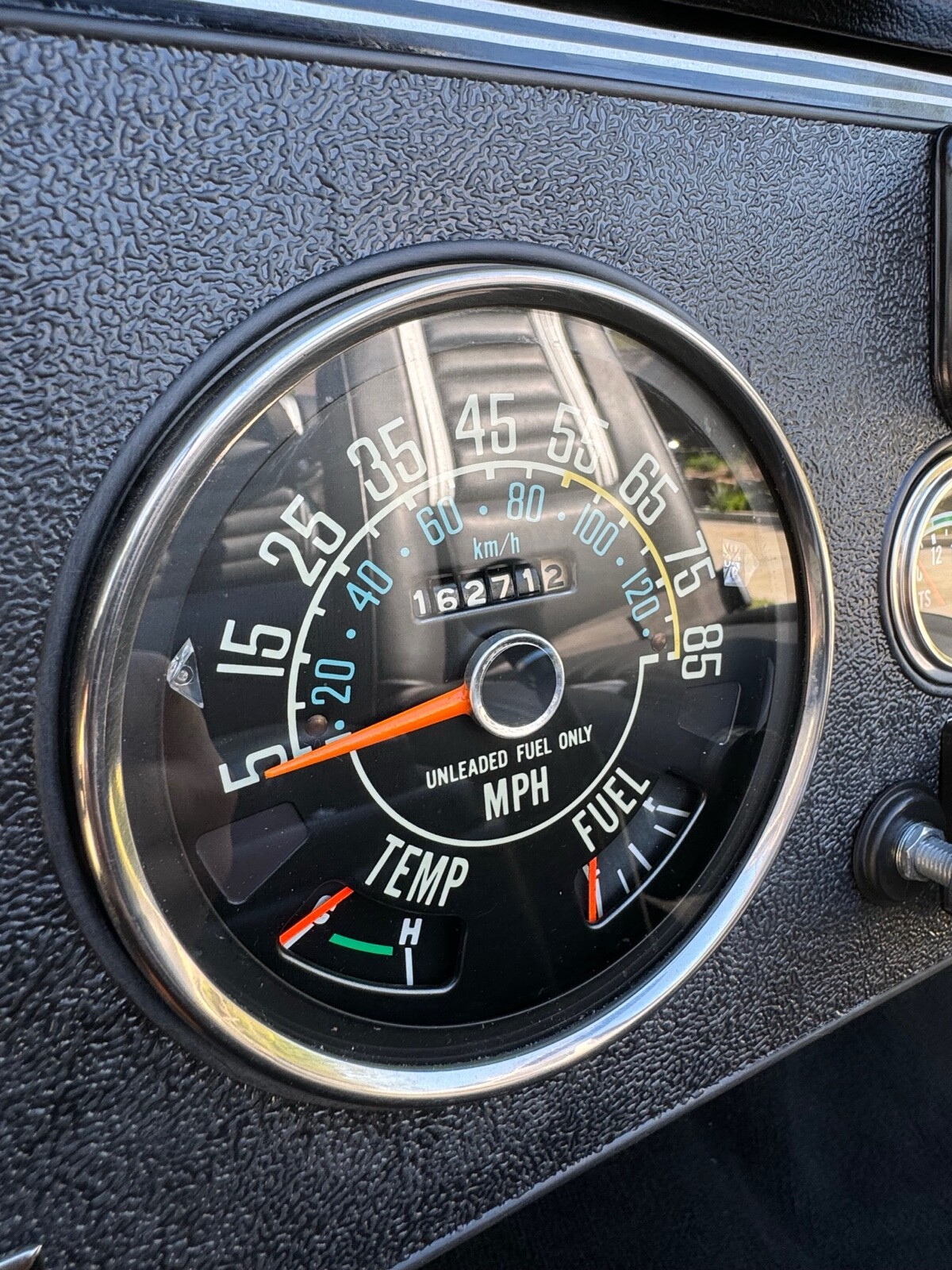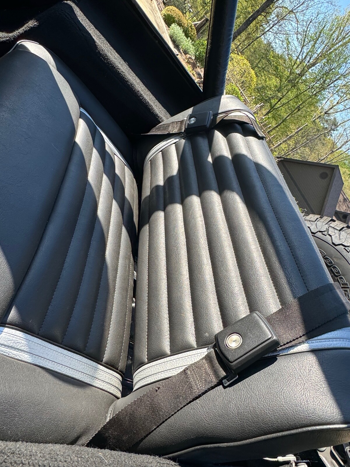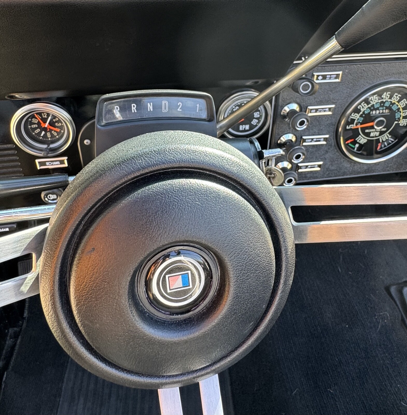 Recovered leather steering wheel and grab bar, wheel is correct for 1980 only.