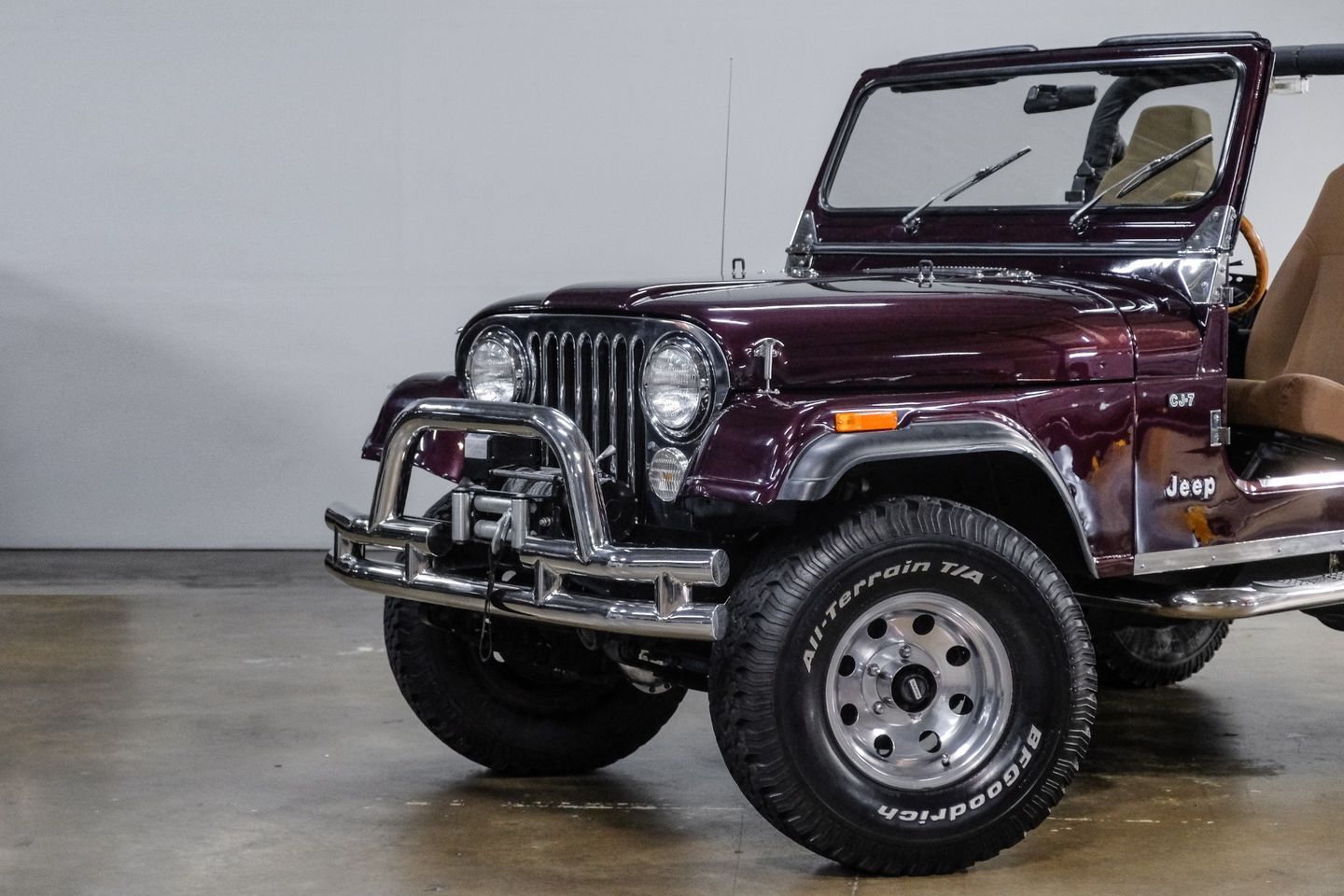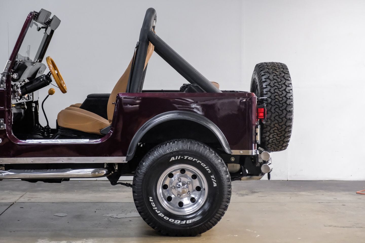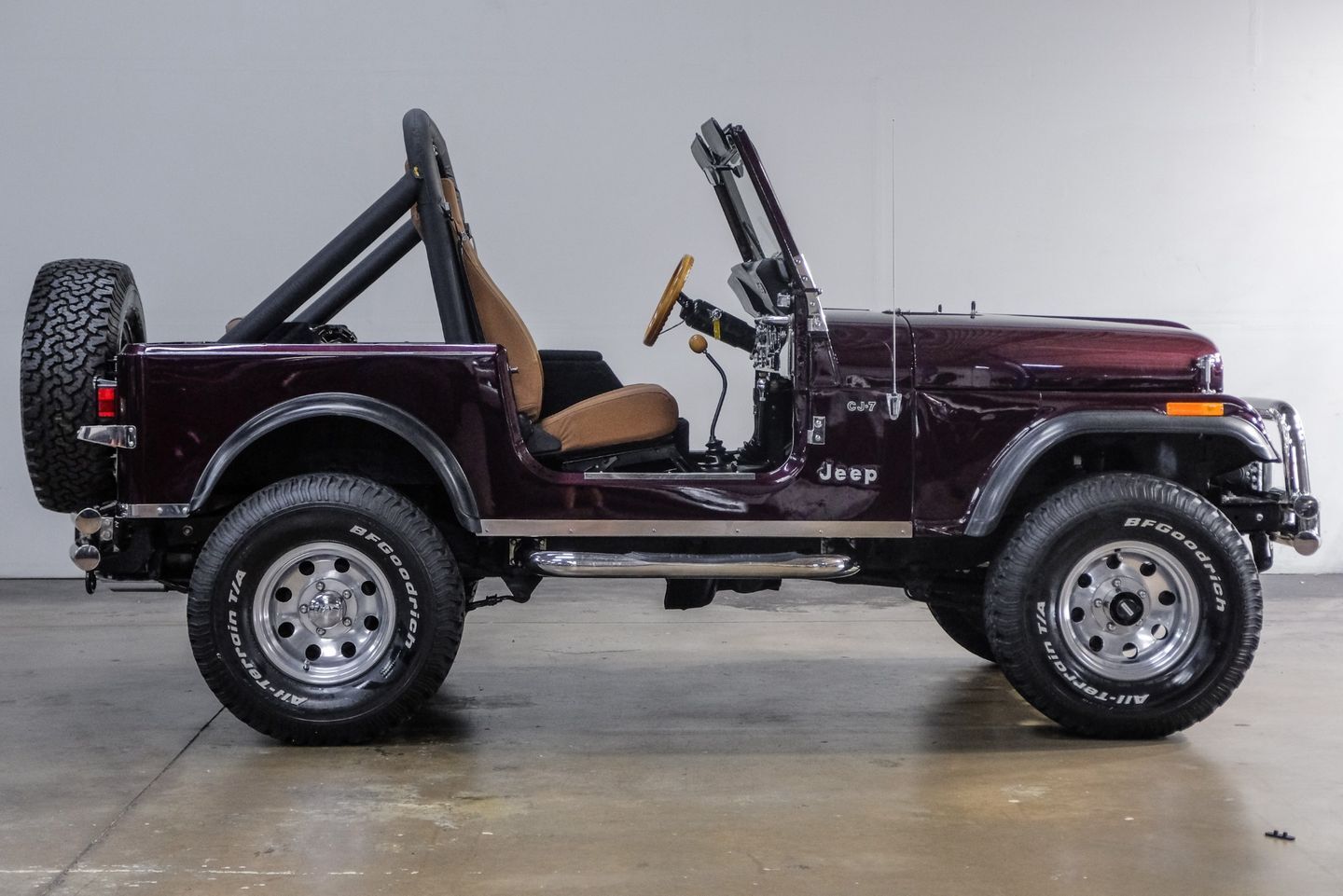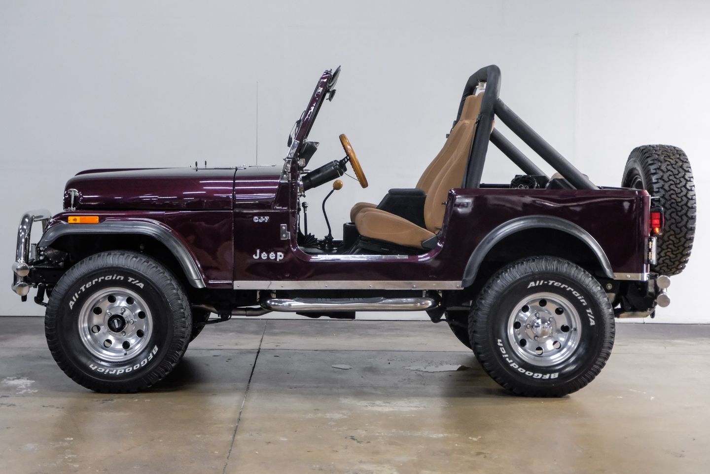 Prepare to be captivated by the rugged charm and robust spirit of this meticulously restored 1982 Jeep CJ-7, a true icon of off-road prowess and timeless style. Having journeyed only 29,525 miles, this black cherry beauty stands as a testament to the allure of adventure and the enduring legacy of Jeep.