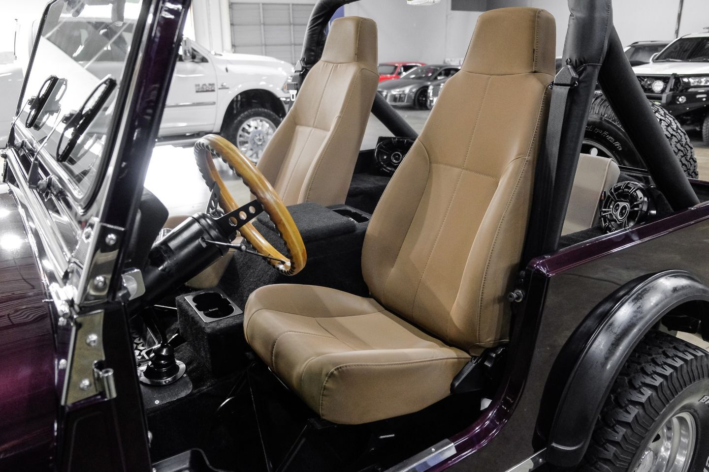 Every inch of this 1982 Jeep CJ-7 has been thoughtfully restored, ensuring that its classic appeal is preserved while its performance is elevated to meet modern expectations. The meticulous frame-up restoration speaks volumes of the care and dedication invested into this vehicle, promising you a ride that is as reliable and capable as it is visually stunning.