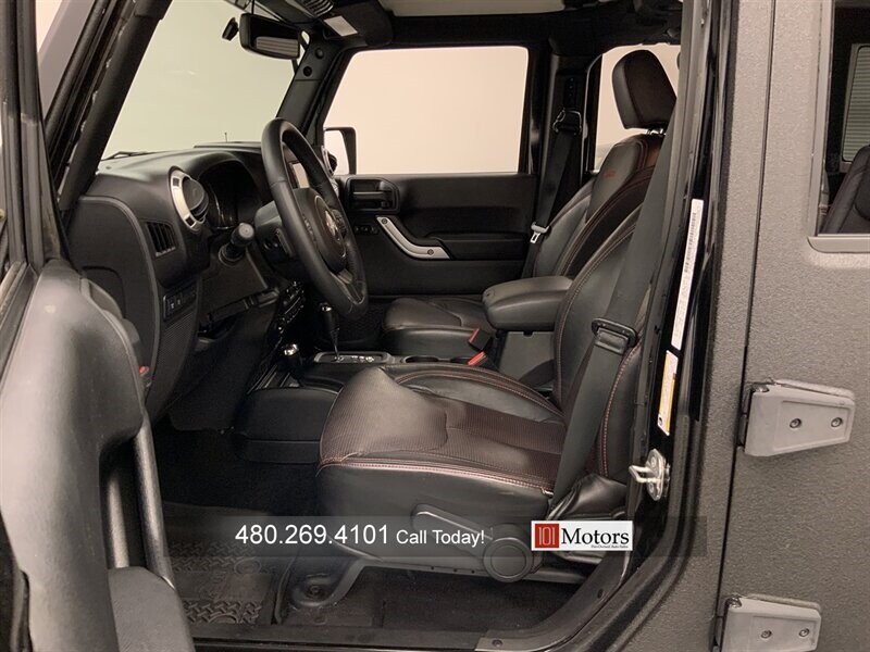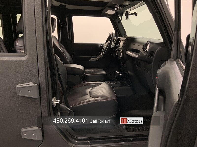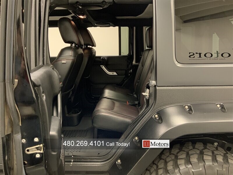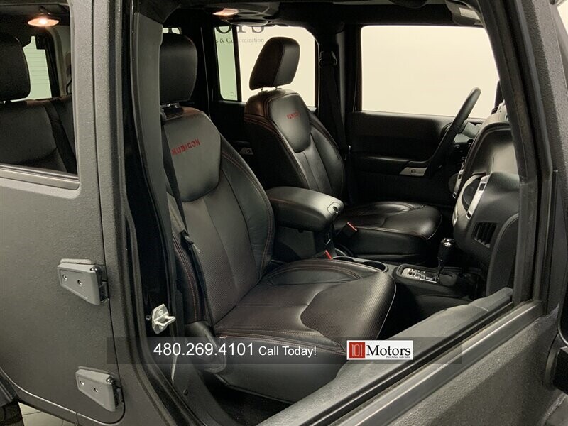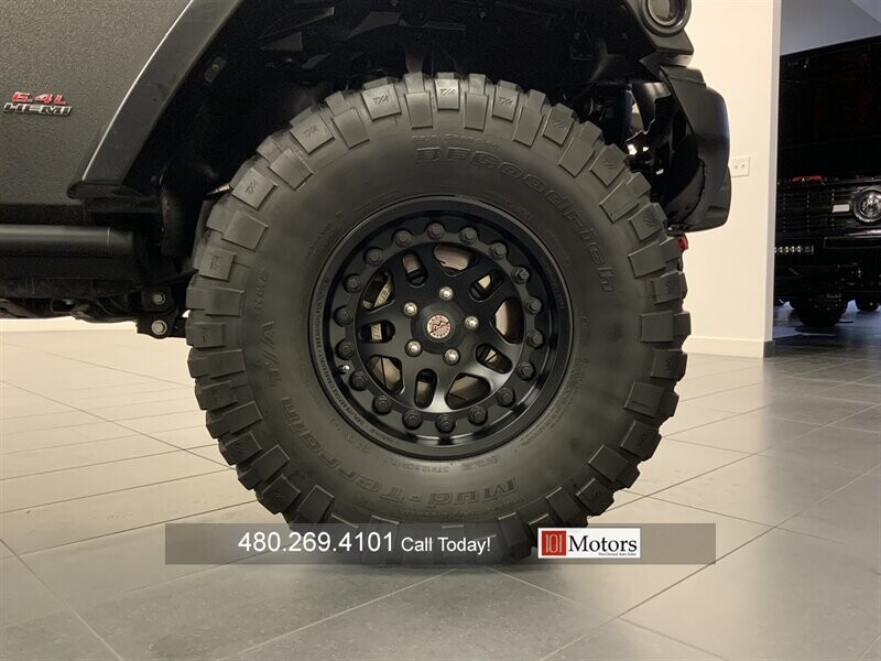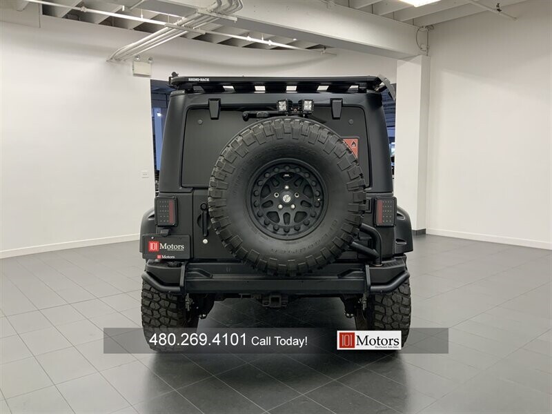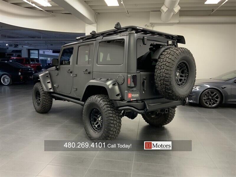 101 Motors is proud to present this stunning 2014 Jeep Wrangler Unlimited Rubicon finished with a black Line-X exterior coating. This JK was built by RubiTrux in Boone, NC and is powered by a 6.4L HEMI V8. Lifted with an 4.5 inch AEV suspension system sitting on 17 inch Hutchinson bead lock wheels wrapped in 37 inch BFG KM2 tires. This Wrangler features AEV front and rear bumpers, AMP power steps, TeraFlex big brake kit, Bushwacker fender flares, Warn winch, ARB and Rigid LED lighting, Rhino Rack roof rack, Katzkin leather interior and much more. You don’t want to miss this incredible opportunity, call today!!