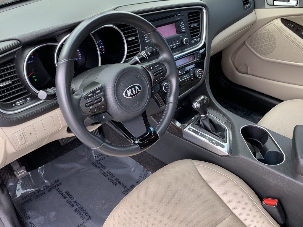 * With world-class engineering, outstanding performance and advanced safety systems, the 2015 Kia Optima gives you good reason to be passionate about driving a midsize sedan. It combines bold exterior styling, performance and a spacious, luxurious cabin. With the Optima, exhilaration is standard. The key to its exciting performance are the two available engines: the 2.4L Gasoline Direct Injection with an EPA rated 24 city/35 hwy mpg or the turbocharged 2.0L GDI I4 engine that delivers 274 horsepower and fuel efficiency of 22 city/34 hwy mpg. The Optima also has a standard 6-speed Sportmatic transmission for an engaging driving experience. The Optima Hybrid features a 2.4L Atkinson cycle 4-cyl. engine giving an amazing 35 city/40 hwy mpg. Spacious and comfortable seating can accommodate five adults and includes a driver's seat with power lumbar and available leather seat trim. Rear seats have a 60/40 split-folding design for added versatility. Optima EX/EX Turbo and SX Premium Packages include front and rear heated seats and heated front seatbacks for cold-weather comfort. The Optima is designed to make every drive a pleasure. The available Premium Touring Package includes features like the innovative UVO infotainment system which lets you use your compatible cell phone to make hands-free calls, receive and respond to text messages, listen to streaming audio, enjoy your personal music, and play your favorite song, artist or genre of music all by giving a single voice command, premium Infinity sound system for exceptional audio entertainment, and a panoramic sunroof. The available Technology Package includes a voice command navigation system, giving you access to detailed highway conditions from SiriusXM Traffic. Source: The Manufacturer Summary