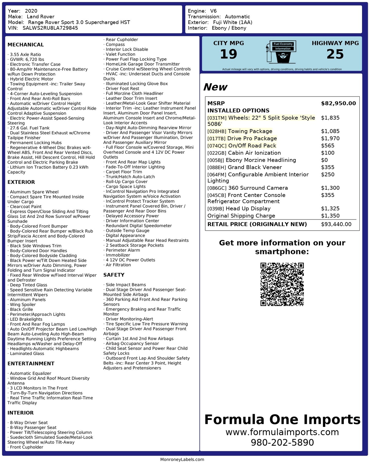 2020 Land Rover Range Rover Sport HST TOW PKG / DRIVE PRO PKG / ON/OFF-ROAD PACK