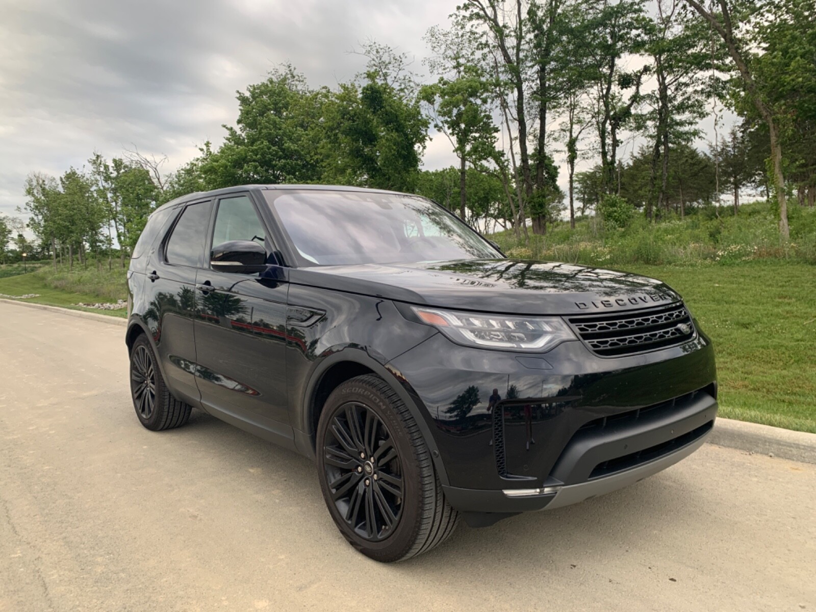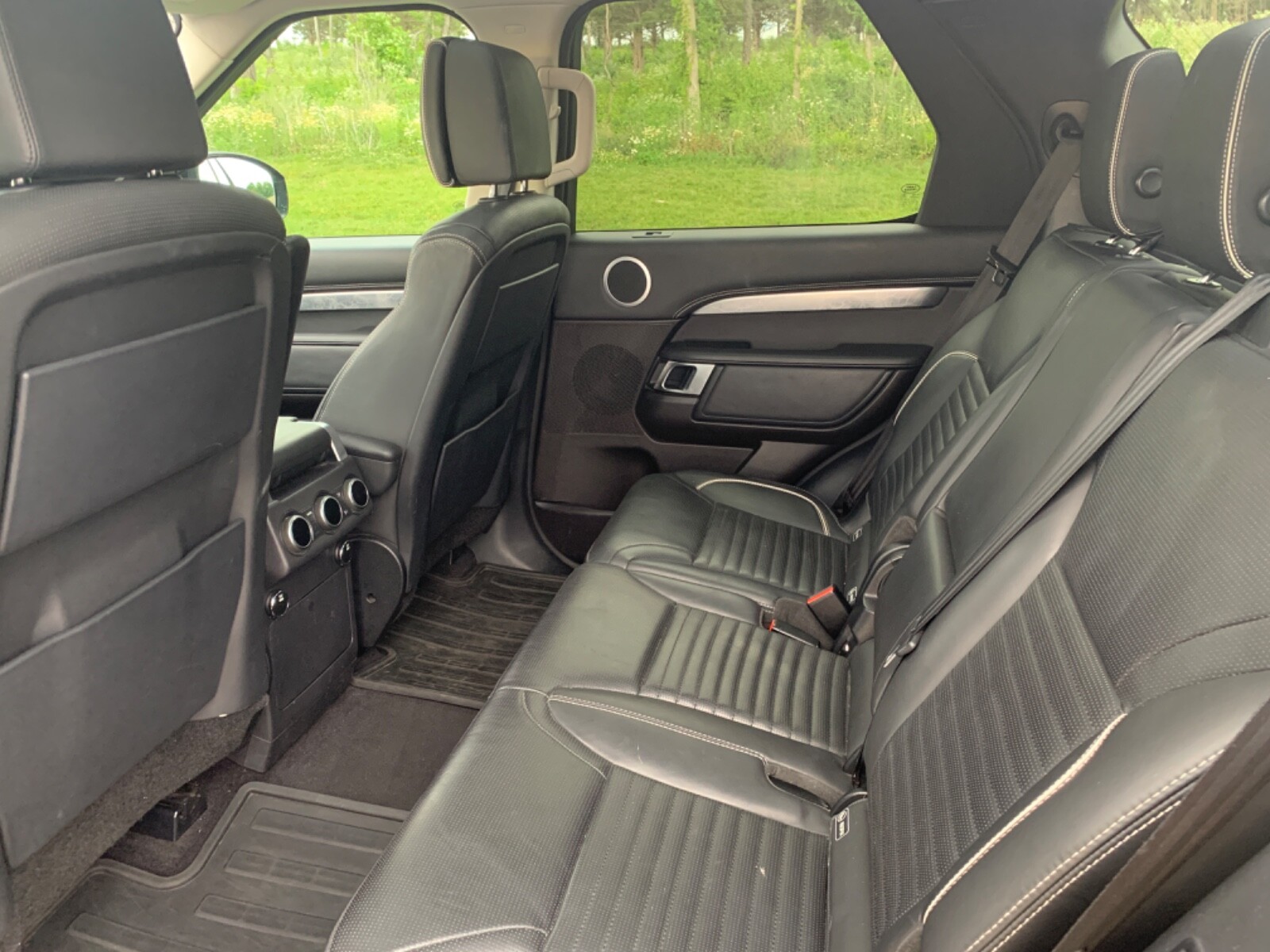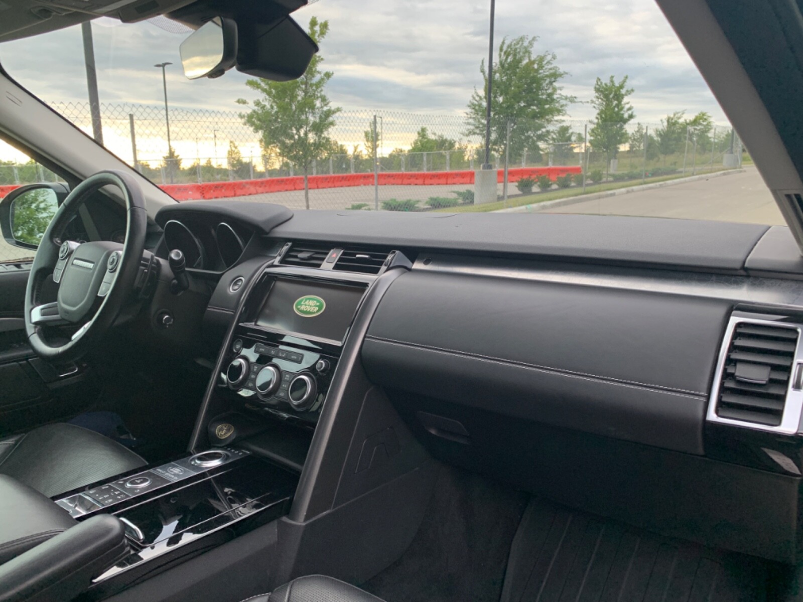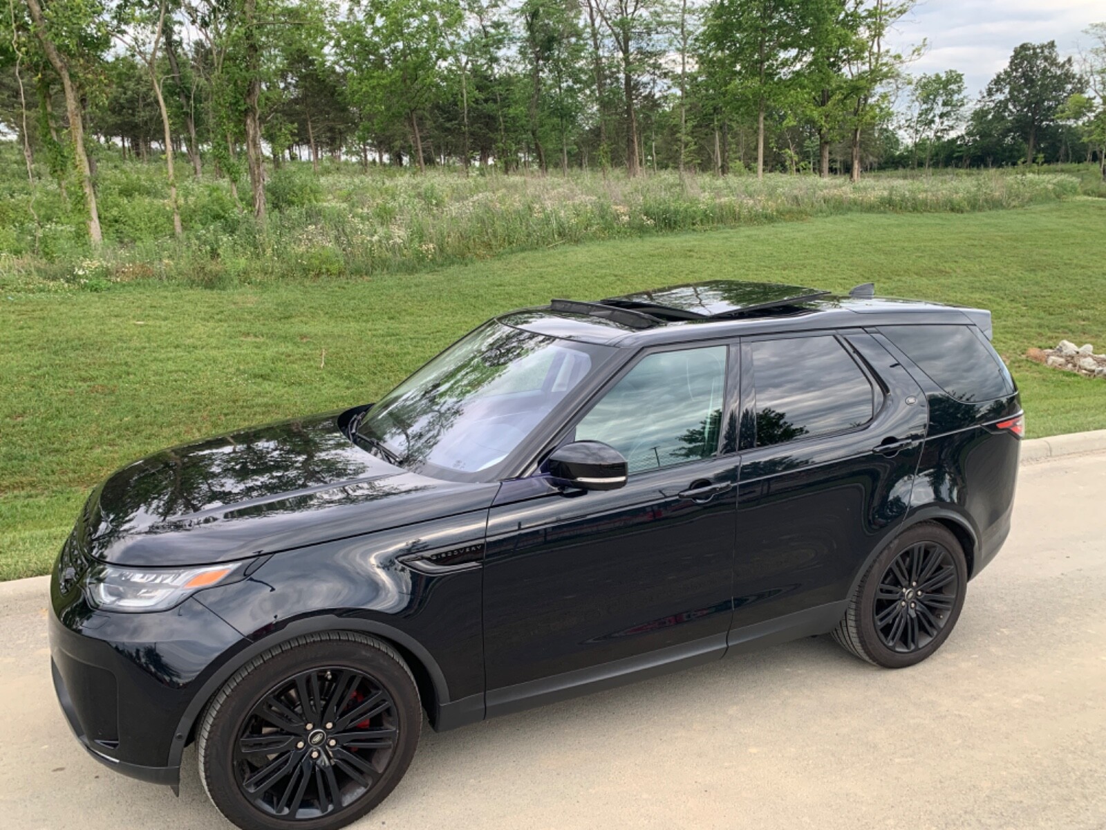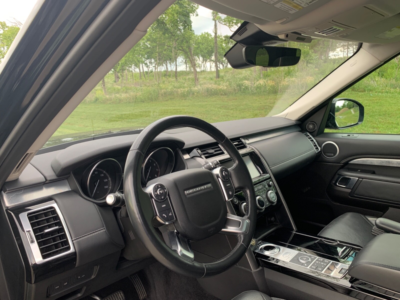 This 2017 Land Rover Discovery FIRST EDITION is a luxurious SUV with seating for seven. It has a powerful 3.0L Gas V6 engine and an automatic transmission. The exterior is black with metallic paint and alloy wheels, and the interior is black leather with climate control and a panoramic glass roof.