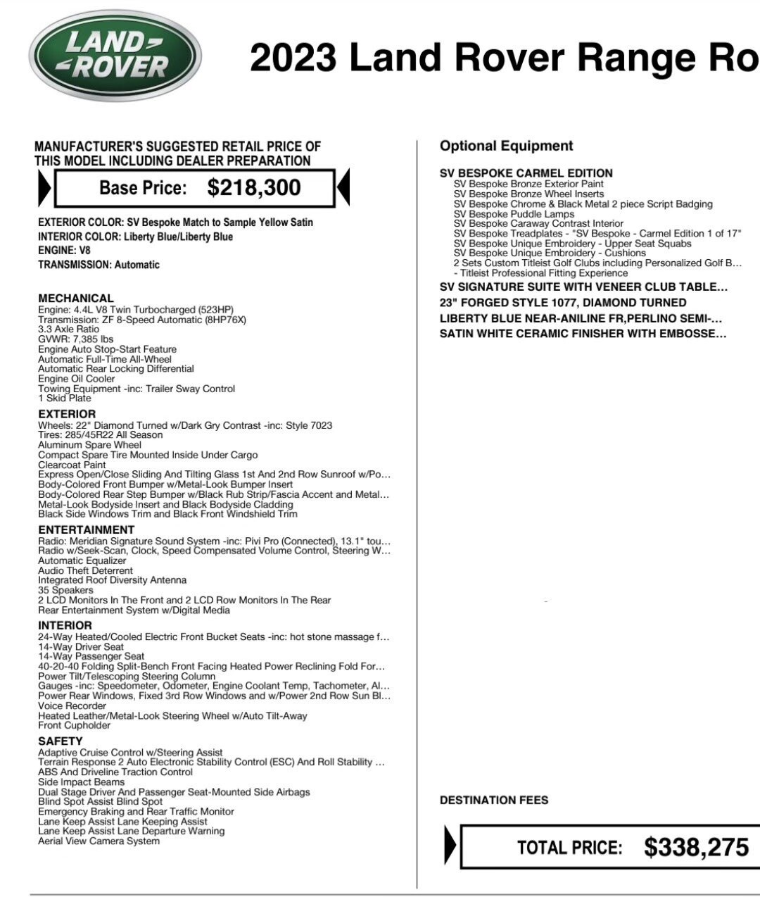 State or local taxes, title, license fee, processing fees, registration fee, dealer documentary fee, finance charges, emission testing fees, and compliance fees are additional to the advertised price.
