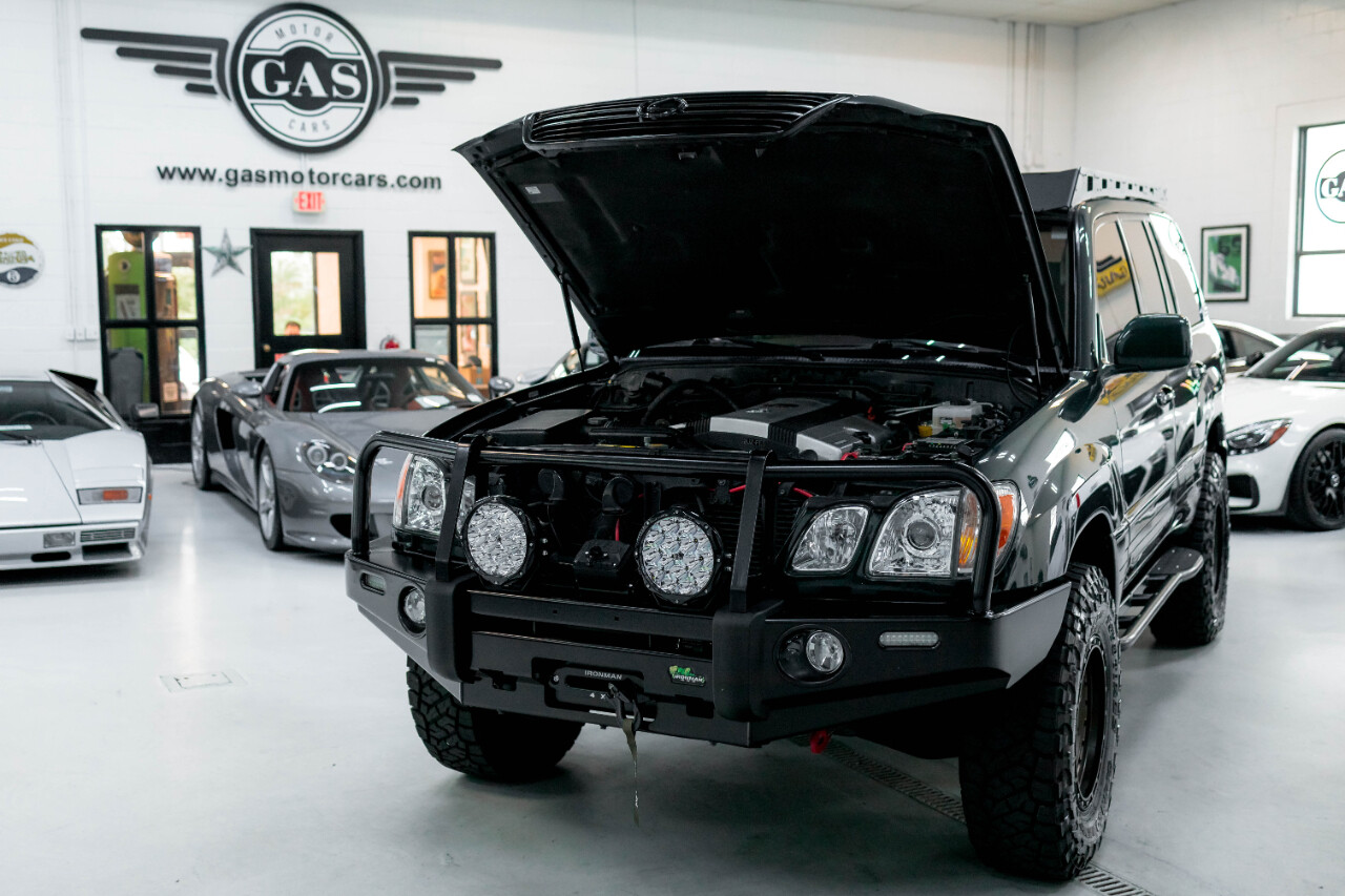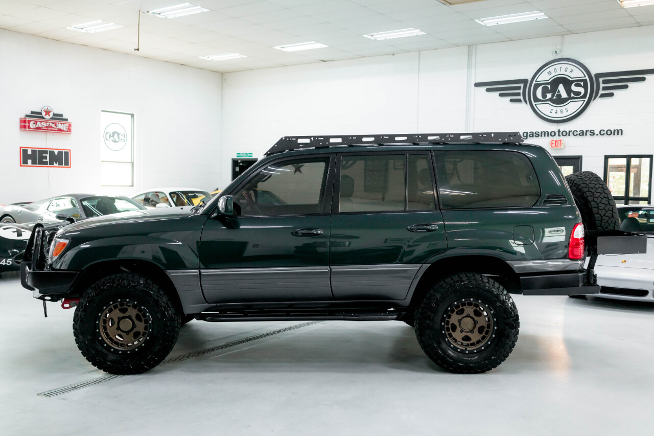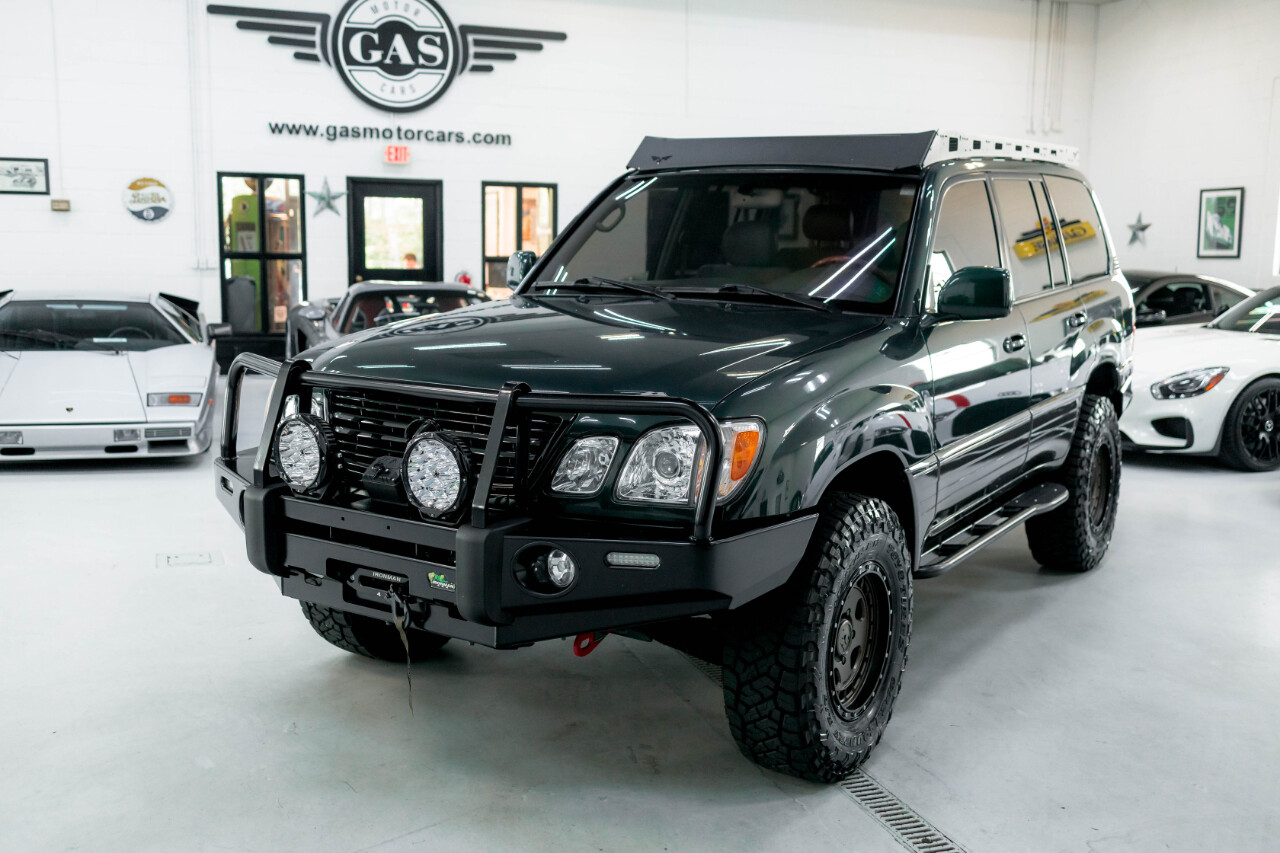 FULL HIGH RESOLUTION PHOTOS AND DETAILED DESCRIPTION ON YOU HAVE A VEHICLE YOU ARE LOOKING TO SELL, PLEASE CALL US AT 770-769-1398WE SHOW VEHICLES BY APPOINTMENT ONLY. PLEASE CALL TO SCHEDULE AN APPOINTMENT IN ORDER TO VIEW A LISTING IN PERSON.NEW ARRIVAL!! TIMING BELT AND WATER PUMP DONE ROUGHLY 30K MILES AGO!!OVER $20K IN UPGRADES AND RECENT MAINTENANCE! ULTRA RARE AND COLLECTIBLE TURN-KEY LEXUS LX470 IN WOODLAND GREEN PEARL OVER TAN INTERIOR!ENTHUSIASTOWNED, VERY WELL MAINTAINED. FANTASTIC DRIVING TRUCK, READY TO GO. COMES WITH TWO KEYS AND BINDER FULL OF SERVICE RECORDS.EXTERIOR IS FINISHED INWOODLAND GREEN PEARL OVER TAN LEATHER INTERIOR.NON-FACTORY UPGRADES INCLUDE:2 IRON MAN LIFTIRON MAN DIFFERENTIAL DROPSPC UPPER CONTROL ARMSBF GOODRICH KO2 TIRESIRON MAN BULLBAR FRONT BUMPERWHITE KNUCKLE OFF ROAD ROCK SLIDERSVALLEYTECH REAR BUMPER WITH SPARE TIRE SWINGOUTSTRAILER EXTENDED SWAY BAR LINKSIRON MAN 12K LB WINCH AND SYNTHETIC ROPEVICTORY 4X4 ROOF RACKALUBEAM GANG SWITCH PANEL AND LED LIGHTSTOUCH SCREEN RADIO HEAD UNIT WITH BACKUP CAMERAFACTORY OPTIONS AND FEATURES INCLUDE:4.7L V8 ENGINE4-SPEED AUTOMATIC TRANSMISSION4 WHEEL DRIVEPOWER ADJUSTABLE HEATED FRONT SEATSLEATHER TRIM PACKAGELEATHER FACED SEATING MATERIAL & HEAD RESTSLEATHER WRAPPED STEERING WHEELLEATHER WRAPPED WOODEN SHIFT KNOBTHIRD SEAT PACKAGE50/50 SPLIT FOLDING & REMOVABLE REAR SEAT WITH OUTBOARD HEADRESTSREAR CUPHOLDERS & ASSIST GRIPSPOWER TILT/SLIDE MOONROOFCONVENIENCE PACKAGEREAR WIND DEFLECTORROOF RACKCRUISE CONTROLREMOTE ENTRYAND MUCH MORE.GAS MOTORCARS IS A FAMILY OWNED AND OPERATED CAR DEALERSHIP LOCATED IN MARIETTA, GA. WE ONLY SELL VEHICLES OF THE HIGHEST QUALITY. WE SHIP VEHICLES WORLDWIDE AT THE BUYER'S EXPENSE. WE TAKE CONSIGNMENTS AS WELL AS TRADES.WE SHOW VEHICLES BY APPOINTMENT ONLY.PLEASE CALL AHEAD TO SCHEDULE A DATE AND TIME IN ORDER TO VIEW A LISTING IN PERSON.CONNECT WITH US ON INSTAGRAM @GASMOTORCARSIt is the customers sole responsibility to verify the existence and condition of any equipment listed. Neither the dealership nor Dealer Socket is responsible for misprints on prices or equipment. It is the customers sole responsibility to verify the accuracy of the prices with the dealer, including the pricing for all added accessories. Visit Gas Motorcars online at to see more pictures of this vehicle or call us at770-769-1398 today to schedule your test drive.