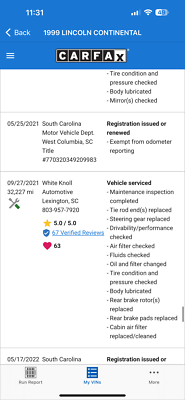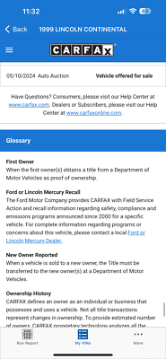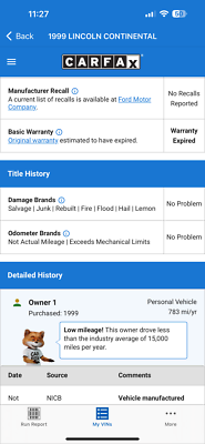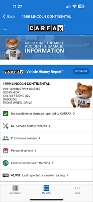 "PLEASE SCROLL TO BOTTOM OF LISTING AND CLICK "SEE FULL ITEM DESCRIPTION" TO VIEW ALL 50+ PHOTOS!!!" "I WILL HELP YOU ARRANGE SHIPPING AND WILL MATCH OR BEAT YOUR QUOTE" UP FOR SALE IS THIS VERY NICE 1999 LINCOLN CONTINENTAL WITH ONLY 41K MILES, CLEAN CARFAX WITH 53 SERVICE RECORDS, TWO OWNERS, FLORIDA RUST FREE, NON SMOKER AND PRICED TO SELL!!! THIS CAR IS OVERALL IN GREAT CONDITION INSIDE AND OUT. THE EXTERIOR SHOWS NO MAJOR DENTS, DINGS OR SCRATCHES. THE INTERIOR ALSO SHOWS NO SIGNS OF ABUSE, (SEE ALL PICTURES FOR MORE DETAILS.) THE ENGINE RUNS STRONG AND THE TRANSMISSION IS SMOOTH. FEEL FREE TO CALL ME ANY TIME IF YOU LIKE TO MAKE A DEAL TODAY! THANK YOU FOR YOUR INTEREST267-828-0460 Arsen Please keep in mind you are bidding on a pre-owned vehicle. Everyday driving can cause minor chips, dings or scratches on a vehicle. Unless otherwise noted in our photos or description these items are minimal, but may exist in some cases. Our photos are designed to be a visual description of this vehicle, please look at them carefully and use them to make a confident decision to bid on our vehicle. Get a great vehicle at a great price!!! Bid Now! If you have any questions about this or any of my other auctions please feel free to contact me via e-mail at or you can call me at 267-828-0460 ask for Arsen. Thank you for your interests and we look forward to hearing from you...
