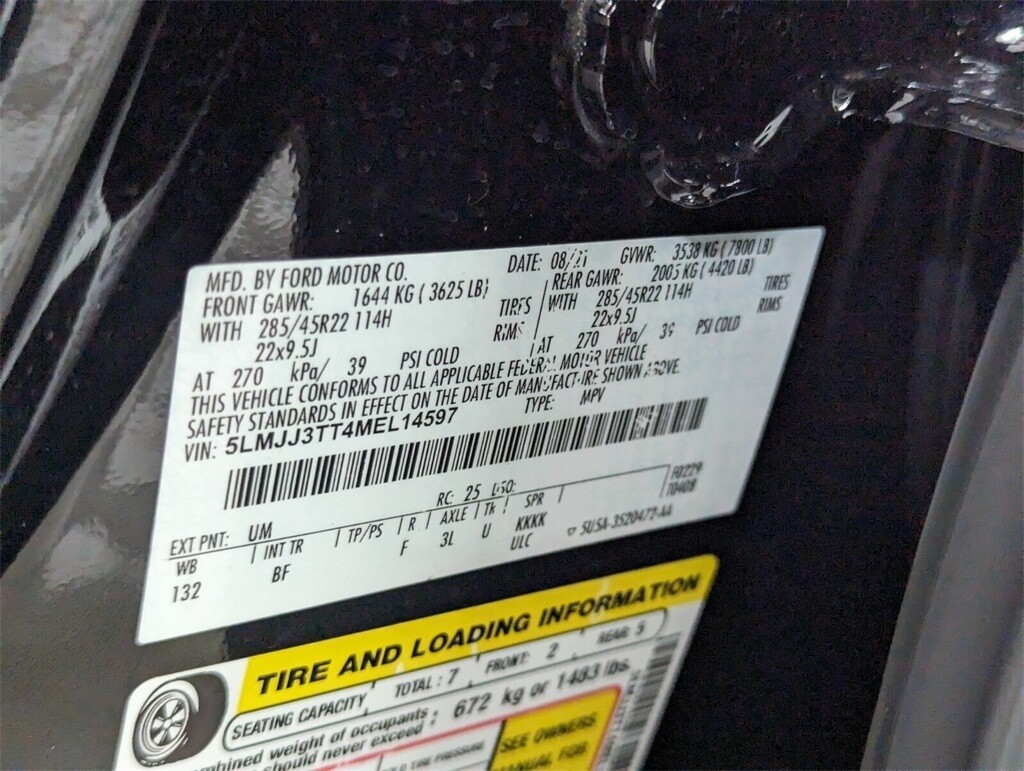NEED DIRECT AND QUICKER ASSISTANCE? DIAL 561.454.1848 TO SPEAK TO A LIVE SALES CONSULTANT. Ready For Immediate Delivery, Passed Dealer Inspection, Vehicle Detailed, Fresh Oil Change, 4WD, Alpine / Espresso Leather, 20 Speakers, 3.73 Axle Ratio, 3rd row seats: split-bench, 4-Wheel Disc Brakes, ABS brakes, Adaptive suspension, Adjustable pedals, Air Conditioning, Alloy wheels, AM/FM radio: SiriusXM, Audio memory, Auto High-beam Headlights, Auto tilt-away steering wheel, Auto-dimming door mirrors, Auto-dimming Rear-View mirror, Auto-leveling suspension, Automatic temperature control, Bodyside moldings, Brake assist, Bumpers: body-color, Compass, Delay-off headlights, Driver door bin, Driver vanity mirror, Driver's Seat Mounted Armrest, Dual front impact airbags, Dual front side impact airbags, Electronic Stability Control, Emergency communication system: 911 Assist, Exterior Parking Camera Rear, Floor Carpet/Mats - Espresso w/Dinamica Suede, Four wheel independent suspension, Front anti-roll bar, Front Bucket Seats, Front dual zone A/C, Front fog lights, Front reading lights, Fully automatic headlights, Garage door transmitter, Genuine wood console insert, Genuine wood door panel insert, GVWR: 7,800 lbs Payload Package, Head restraints memory, Headliner - Alpine Dinamica Suede, Heads-Up Display, Heated door mirrors, Heated front seats, Heated rear seats, Heated steering wheel, HVAC memory, Illuminated entry, Knee airbag, Leather steering wheel, Leather-Wrapped Interior - Alpine/Espresso, Low tire pressure warning, Memory seat, Navigation System, Occupant sensing airbag, Outside temperature display, Overhead airbag, Overhead console, Panic alarm, Passenger door bin, Passenger seat mounted armrest, Passenger vanity mirror, Pedal memory, Power adjustable front head restraints, Power adjustable rear head restraints, Power door mirrors, Power driver seat, Power Liftgate, Power moonroof: Panoramic Vista Roof, Power passenger seat, Power steering, Power windows, Radio data system, Radio: Revel Ultima AM/FM/HD/MP3 Audio System, Rain sensing wipers, Rear air conditioning, Rear anti-roll bar, Rear audio controls, Rear reading lights, Rear window defroster, Rear window wiper, Reclining 3rd row seat, Remote keyless entry, Roof rack: rails only, Security system, Silverwood Appliques, SiriusXM Radio, Speed control, Speed-sensing steering, Speed-Sensitive Wipers, Split folding rear seat, Spoiler, Steering wheel memory, Steering wheel mounted audio controls, SYNC 3 Communications & Entertainment System, Tachometer, Telescoping steering wheel, Tilt steering wheel, Traction control, Trip computer, Turn signal indicator mirrors, Variably intermittent wipers, Venetian Lthr Htd/Ventilated Captain's Chairs (B), Ventilated front seats, Voice-Activated Touchscreen Navigation System, Wheels: 22 21-Spoke Bright Machined Aluminum. Certified. Lincoln CPO - Lincoln Black Label Program Details: