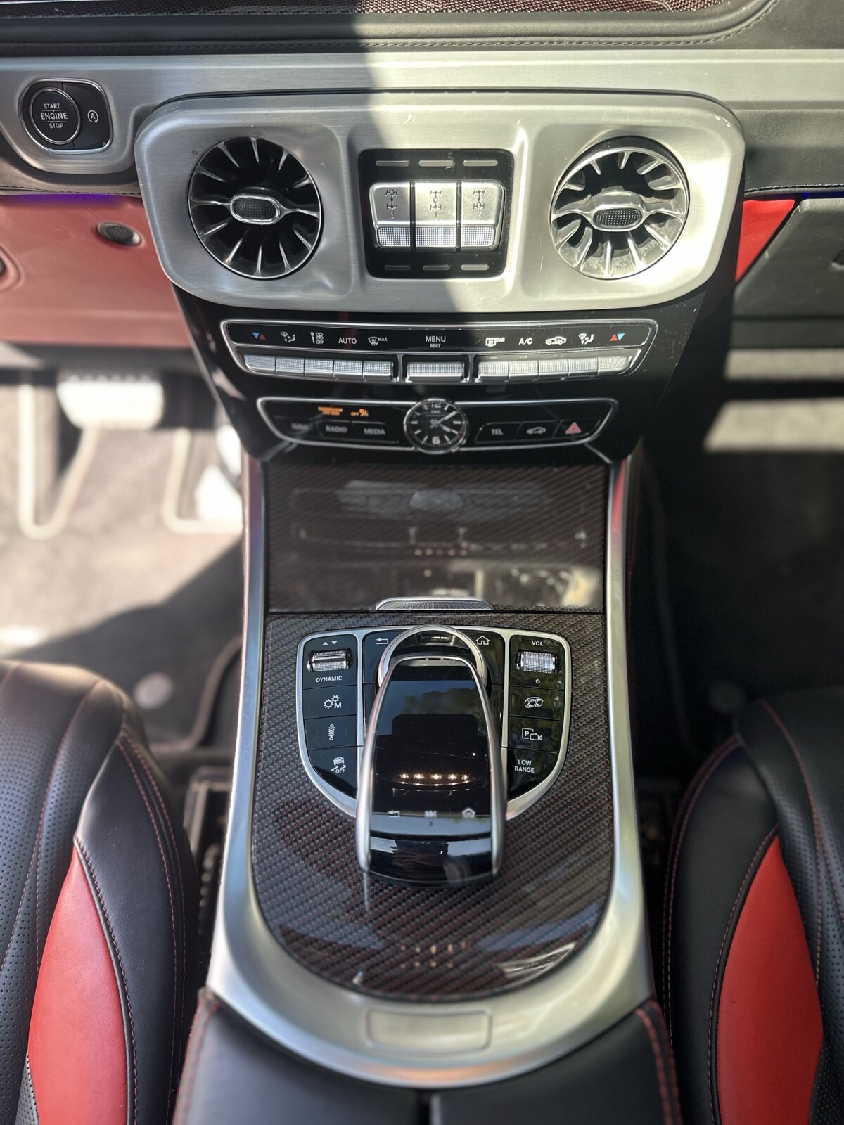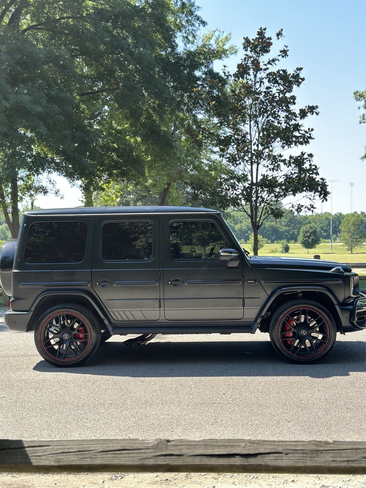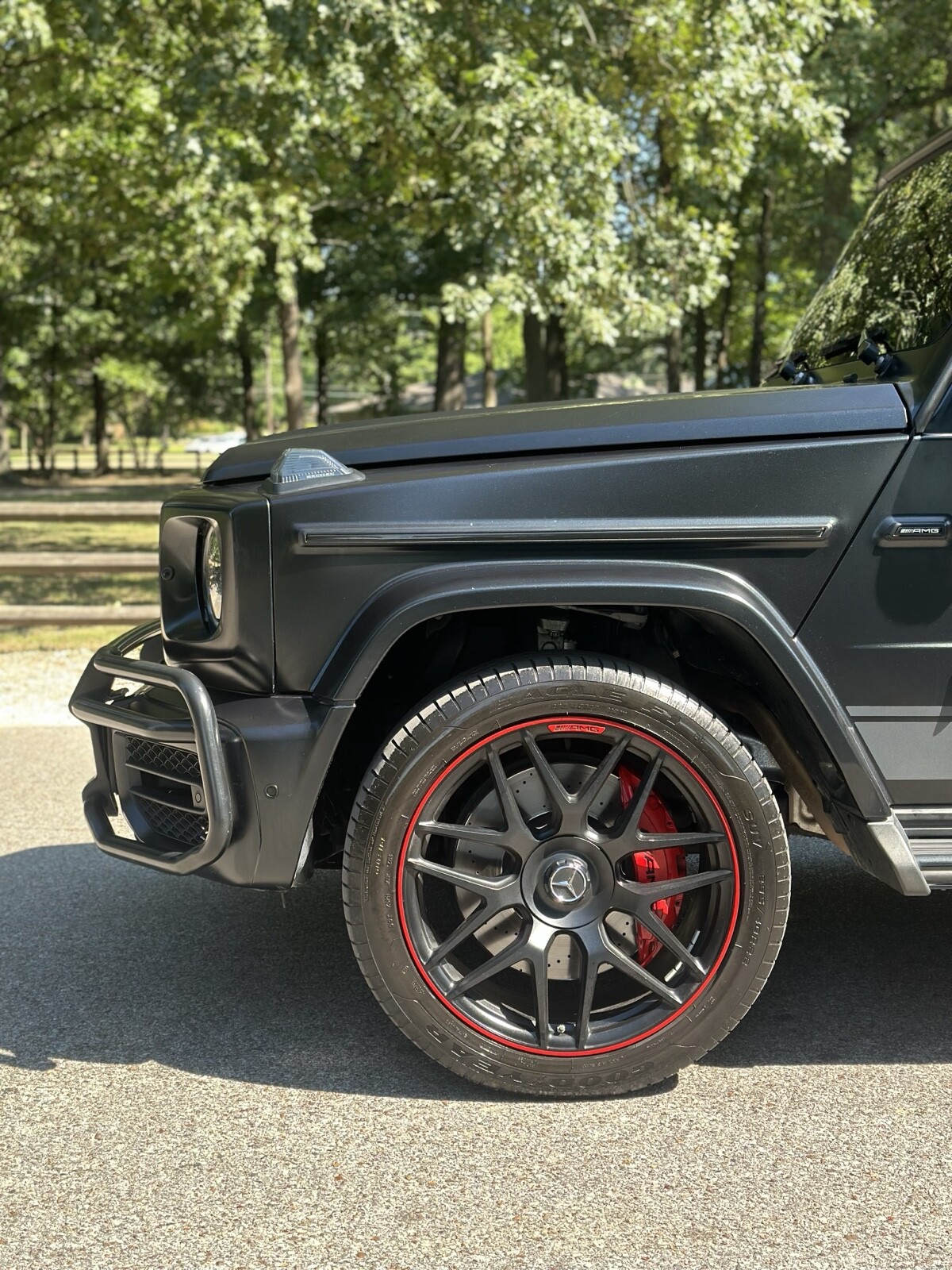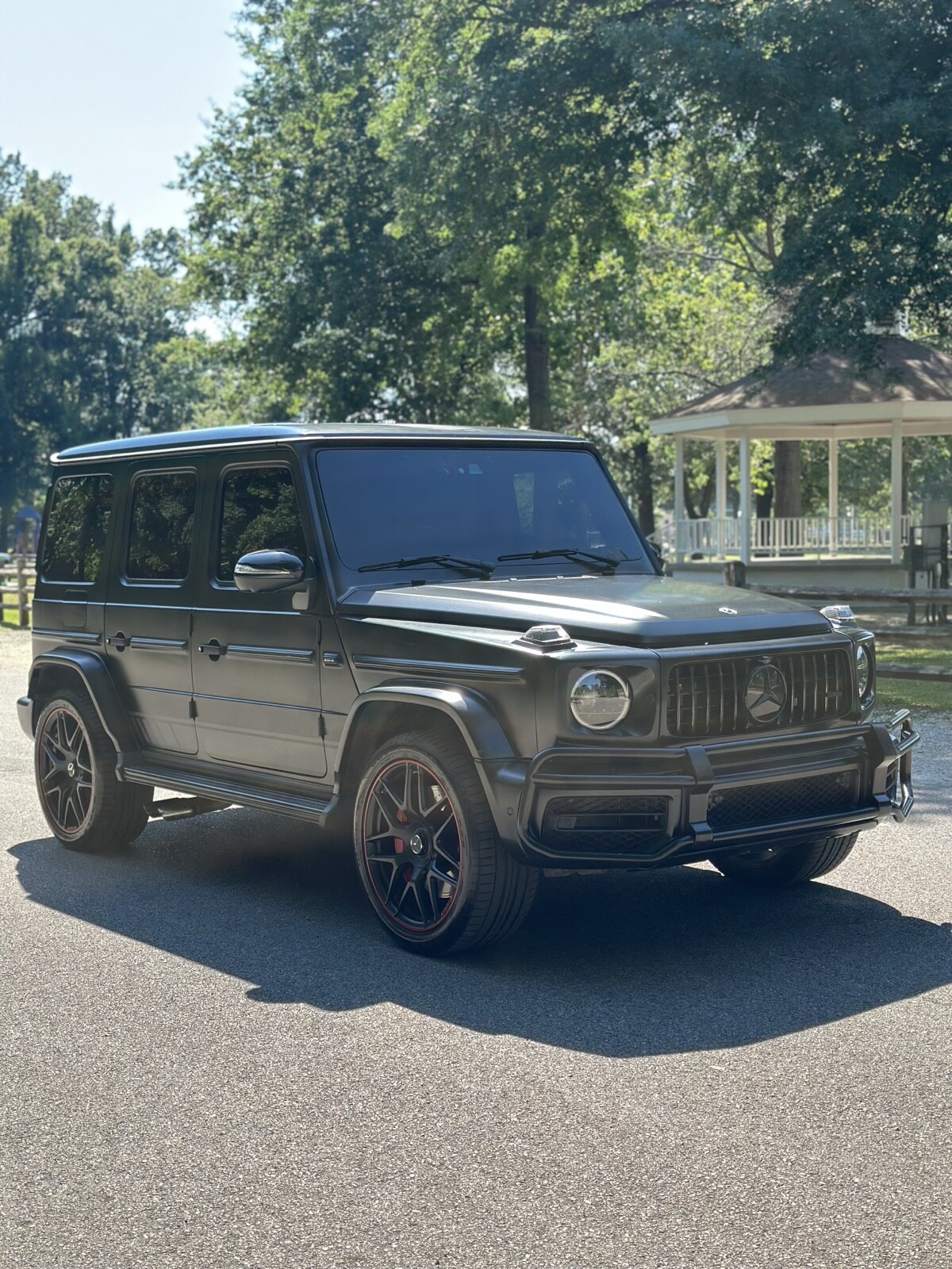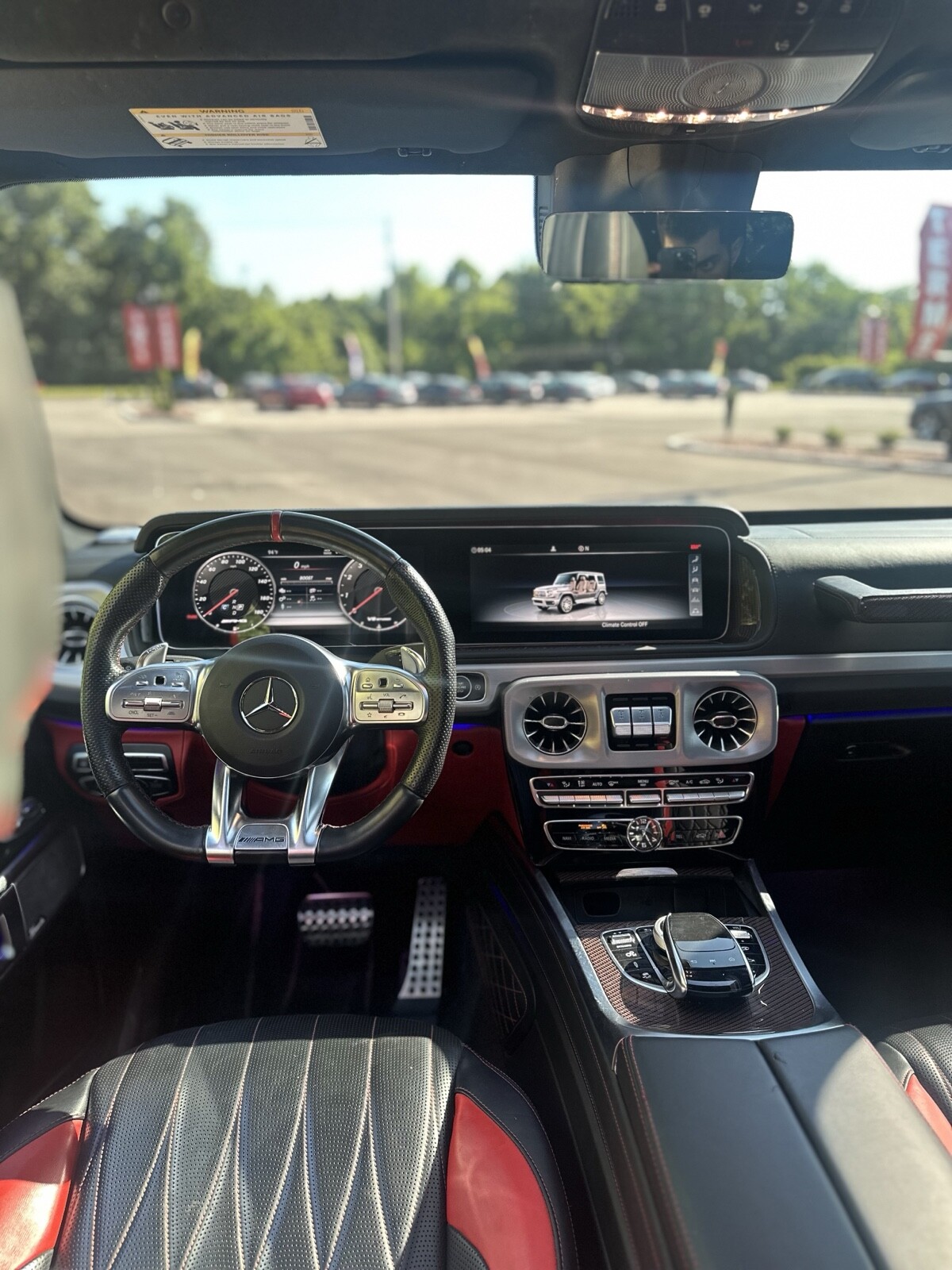 We are offering a pristine 2019 Mercedes-Benz G63 Edition One, a limited production model with only 1000 units worldwide. This vehicle is blacked out and meticulously maintained, featuring red stitching throughout and striking special red carbon accents. The rims are stunning, and the overall color scheme is a unique design exclusive to this limited edition.