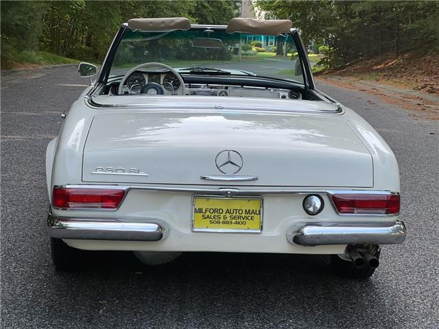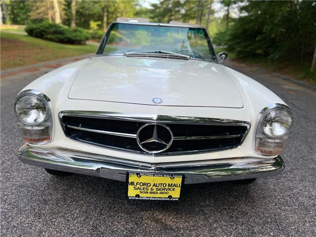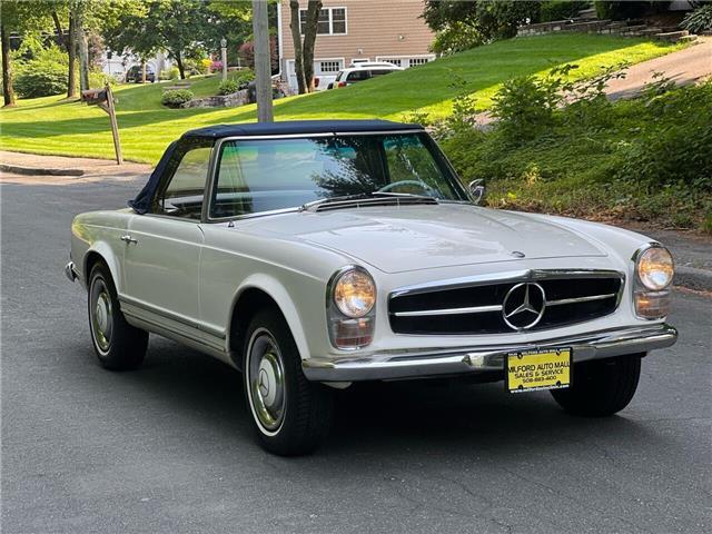 Presenting This Older Restoration Turn Key Driver 1965 Mercedes-Benz 230SL Pagoda That Has Just Emerged From A Long-Term Ownership. Available In An Attractive Color Combination White With Blue Interior. Equipped With A Straight Six M127 Engine, 4-Speed Manual Transmission, Hard Top, Soft Top, Factory Spare And Tools.