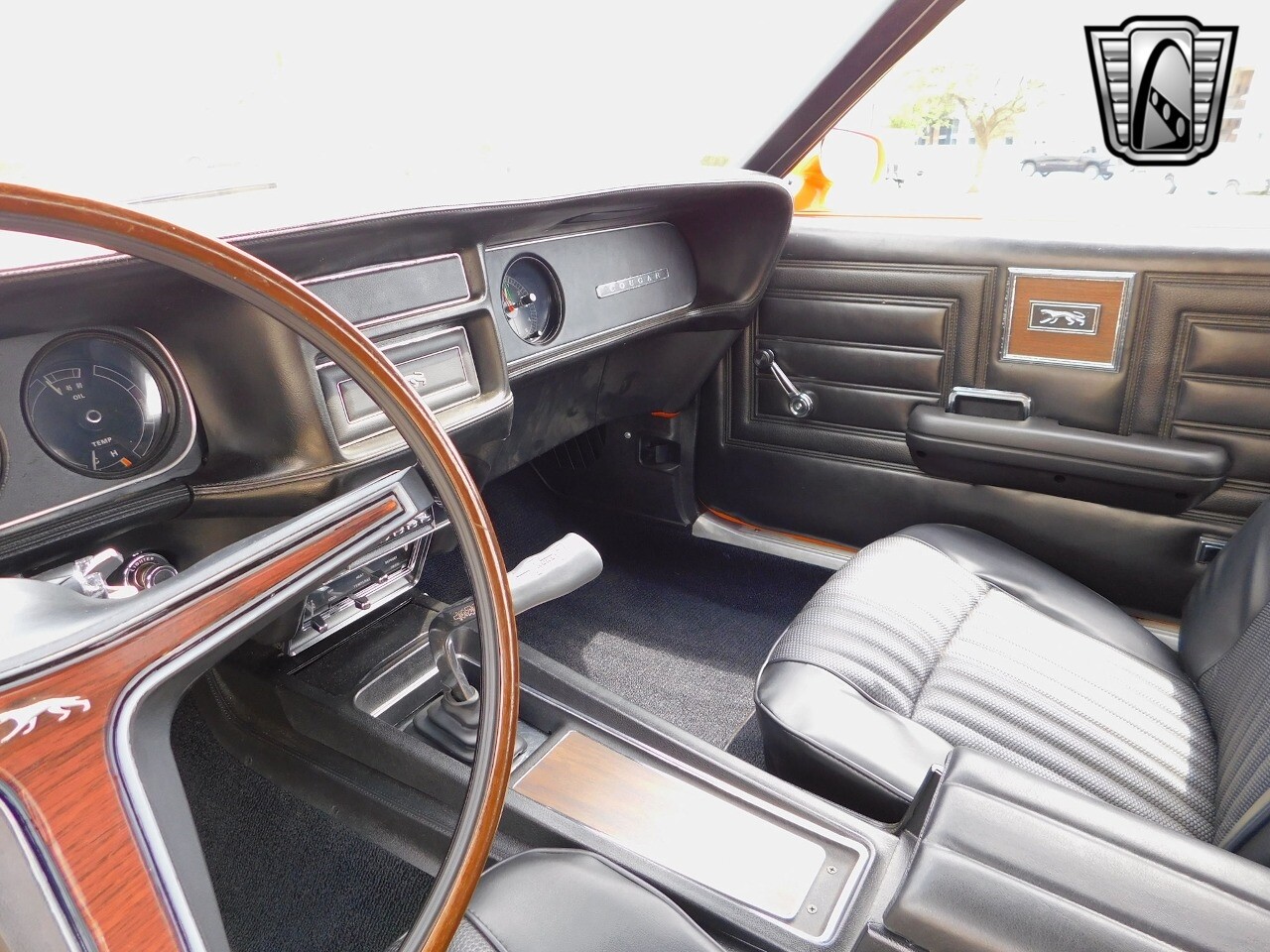 The Cougar Eliminator's exterior is complemented by sleek aluminum wheels, adding a touch of modern flair to its vintage appeal. Inside, the car features the timeless black vinyl hi-back bucket seating, providing a comfortable and stylish environment for both driver and passengers.
