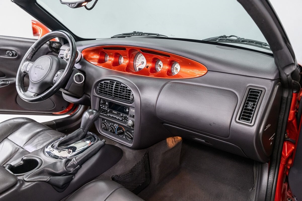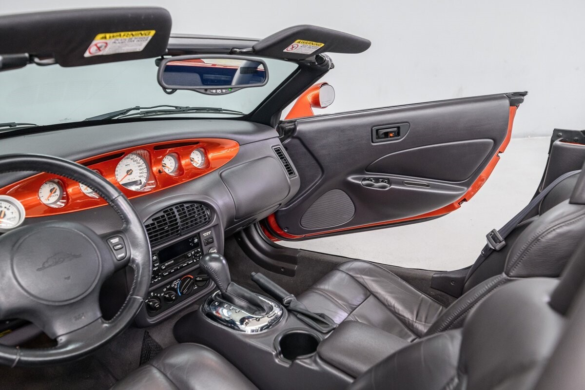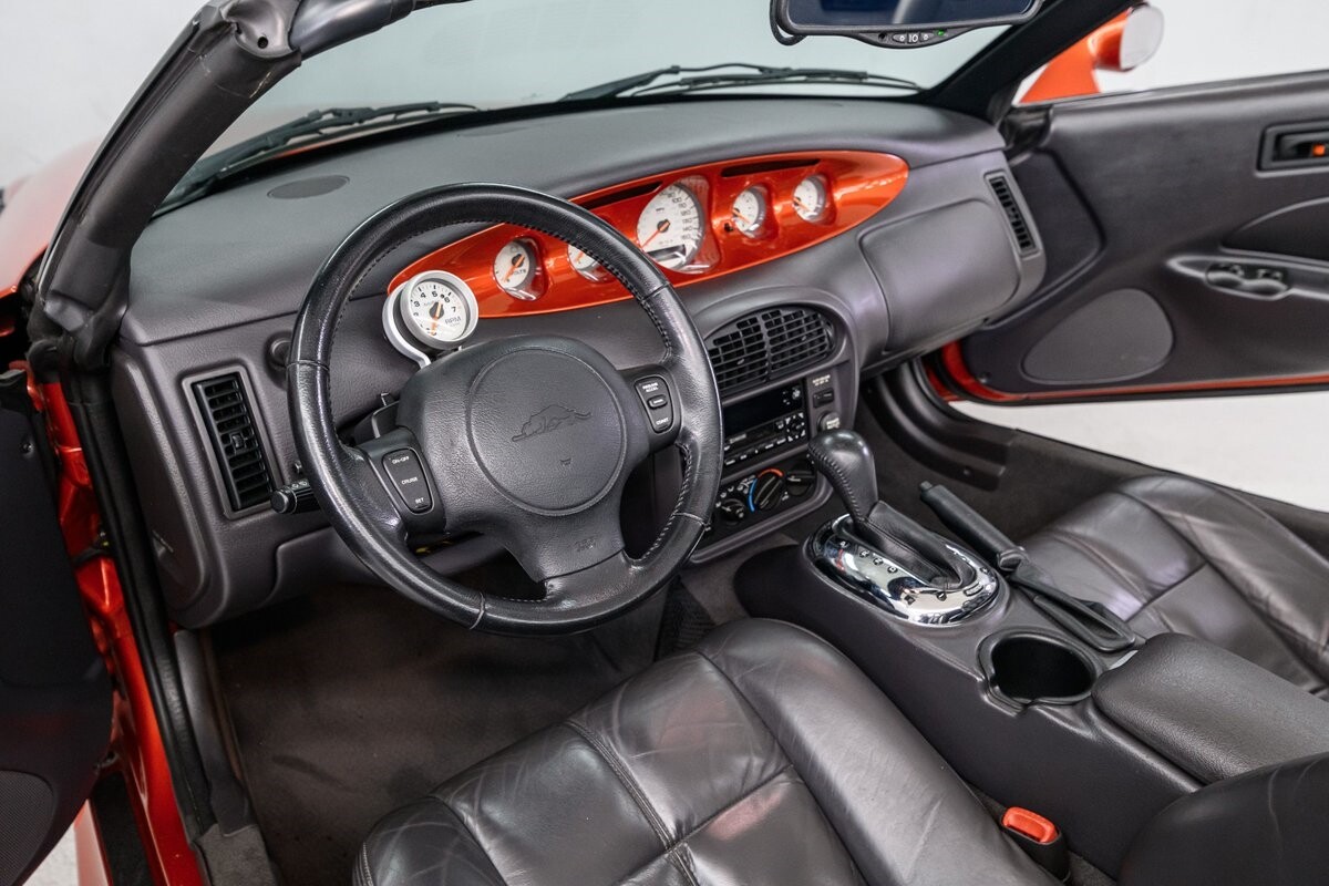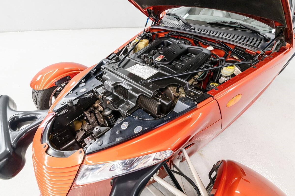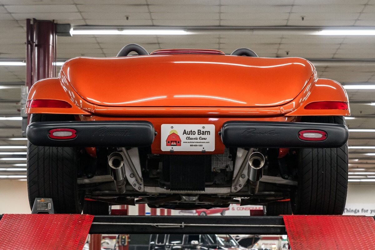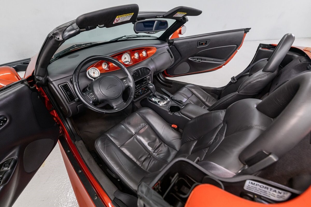 The Prowler was Chrysler's retro-styled production car based on the 1993 concept car of the same name. It was manufactured and marketed by Plymouth/Chrysler from 1997 until 2002. The Prowler's front-engine and rear-transaxle configuration facilitated an almost perfect 50-50 front-rear weight distribution. Originally conceived and designed as a coupe by car designer Chip Foose, it was modified to be a roadster for production. Featuring predominately aluminum construction, Prowlers were assembled by hand at Chrysler's CAAP Detroit facility. This unique performance car is powered by Chrysler's SOHC 3.5L 24-V fuel-injected engine. The aluminum V-6 produces 253bhp at 6400 RPM, more than enough to propel this lightweight roadster. Its semi-automatic 4-speed/OD 'Autostick' transaxle can be driven as an automatic or shifted manually. This 2001 Plymouth Prowler has been with its current owner for the last eight years and has been carefully maintained. The Sunset Orange exterior is in outstanding condition with factory alloy-spoke wheels sport Goodyear performance radials. The Black leather interior and manually operated fabric convertible top (w/glass window) are also in very good condition. Features include A/C, power tinted windows, power locks, tilt wheel and premium AM/FM/cassette sound system. The roadster's strong, lightweight aluminum chassis is equipped with power steering and 4-wheel power disc brakes. The Plymouth Prowler is a modern-day 'deuce roadster' that is comfortable, fun to drive and dependable. ALL VEHICLES SOLD "AS IS."