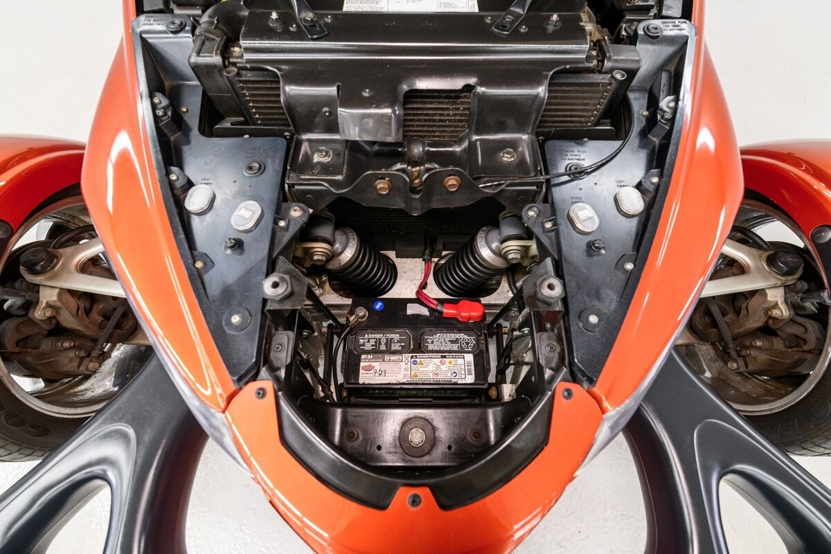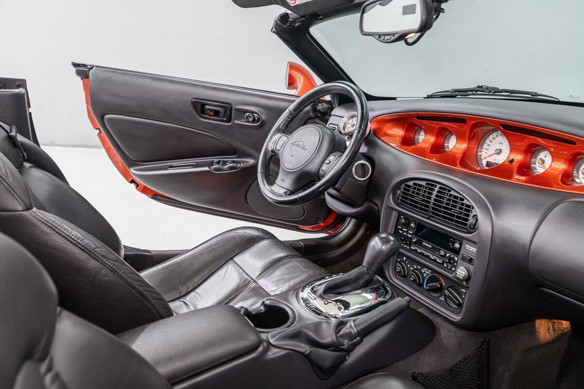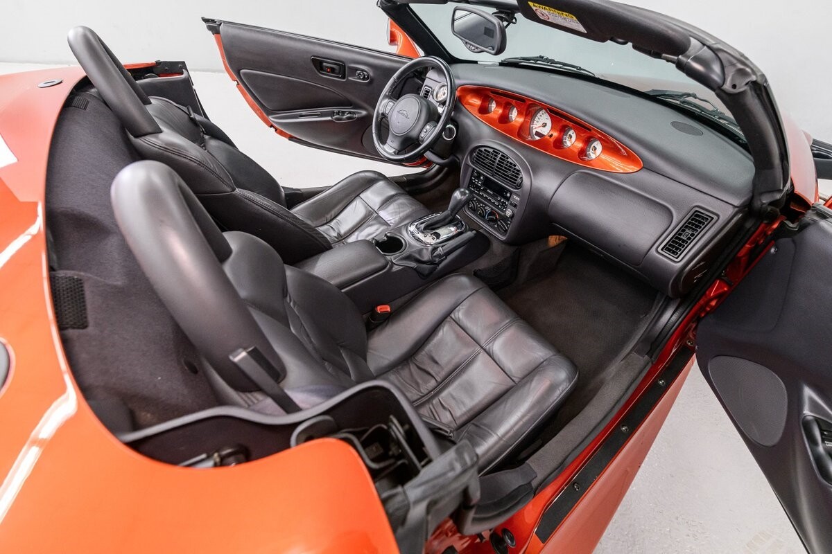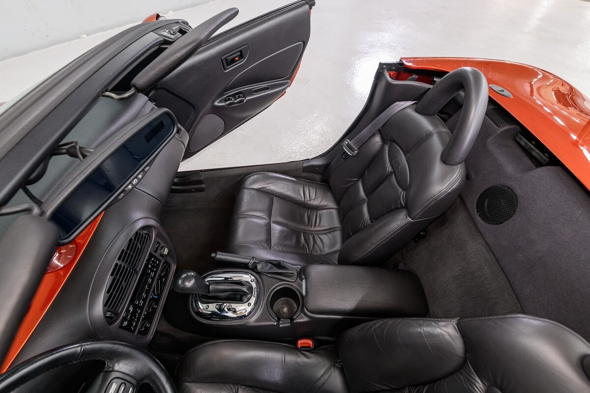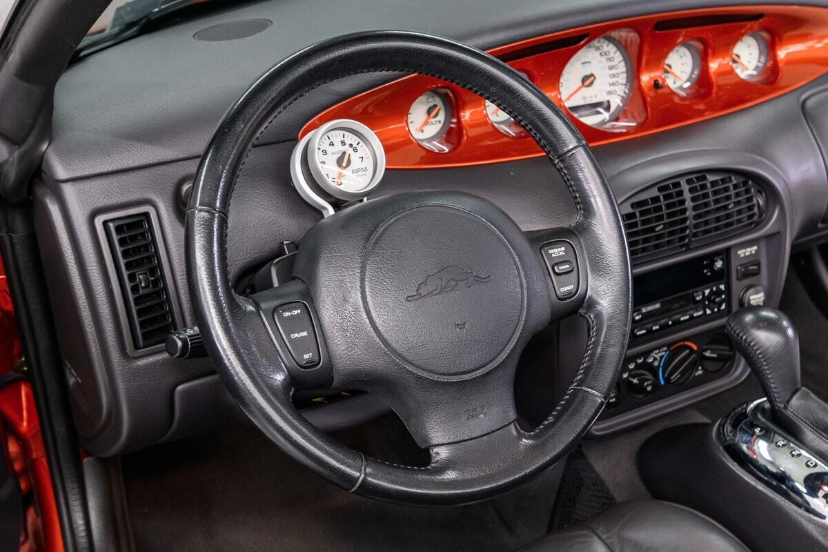 The Prowler was Chrysler's retro-styled production car based on the 1993 concept car of the same name. It was manufactured and marketed by Plymouth/Chrysler from 1997 until 2002. The Prowler's front-engine and rear-transaxle configuration facilitated an almost perfect 50-50 front-rear weight distribution. Originally conceived and designed as a coupe by car designer Chip Foose, it was modified to be a roadster for production. Featuring predominately aluminum construction, Prowlers were assembled by hand at Chrysler's CAAP Detroit facility. This unique performance car is powered by Chrysler's SOHC 3.5L 24-V fuel-injected engine. The aluminum V-6 produces 253bhp at 6400 RPM, more than enough to propel this lightweight roadster. Its semi-automatic 4-speed/OD 'Autostick' transaxle can be driven as an automatic or shifted manually. This 2001 Plymouth Prowler has been with its current owner for the last eight years and has been carefully maintained. The Sunset Orange exterior is in outstanding condition with factory alloy-spoke wheels sport Goodyear performance radials. The Black leather interior and manually operated fabric convertible top (w/glass window) are also in very good condition. Features include A/C, power tinted windows, power locks, tilt wheel and premium AM/FM/cassette sound system. The roadster's strong, lightweight aluminum chassis is equipped with power steering and 4-wheel power disc brakes. The Plymouth Prowler is a modern-day 'deuce roadster' that is comfortable, fun to drive and dependable. ALL VEHICLES SOLD "AS IS."