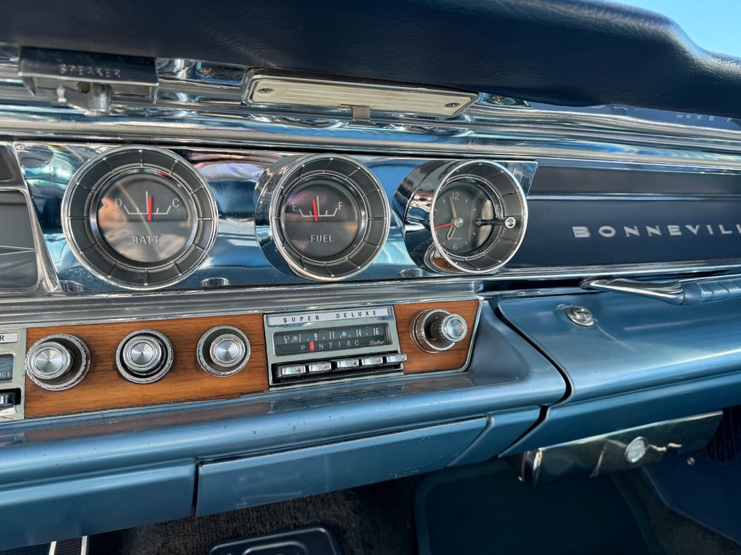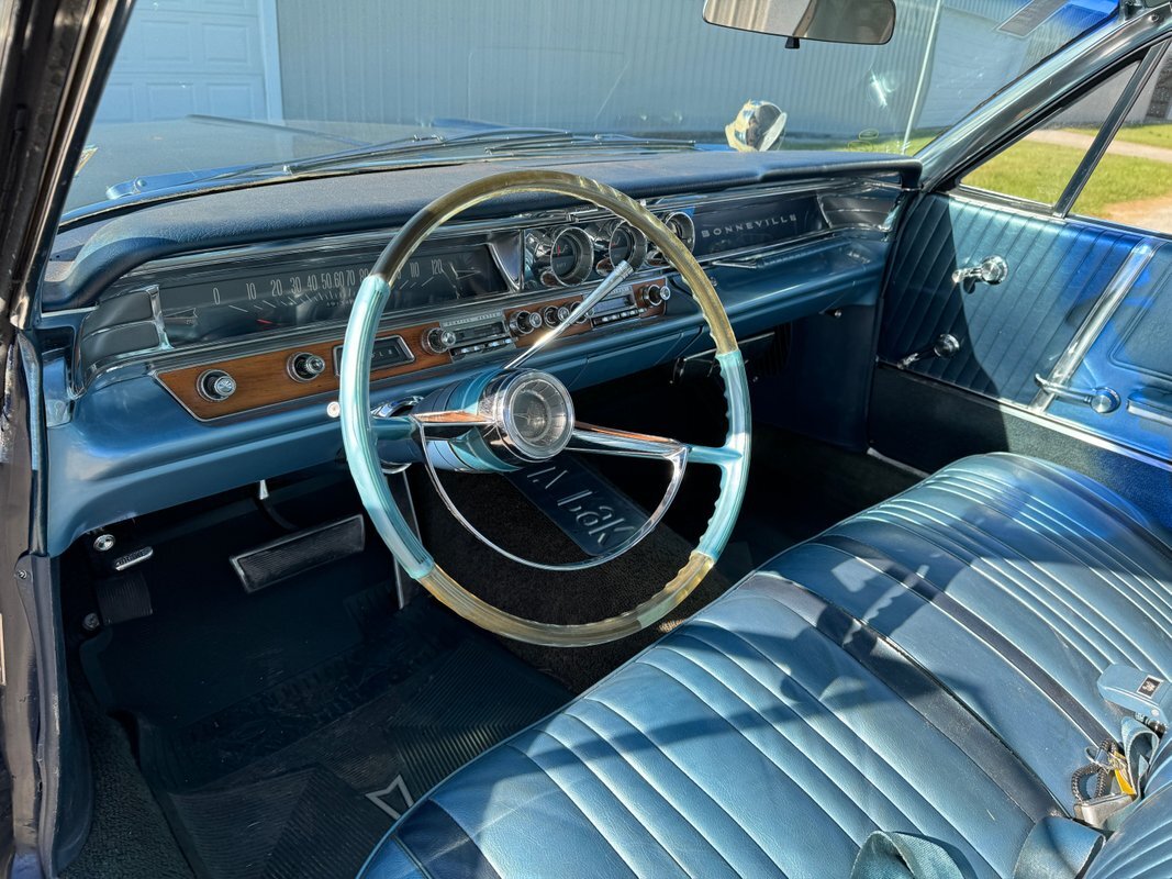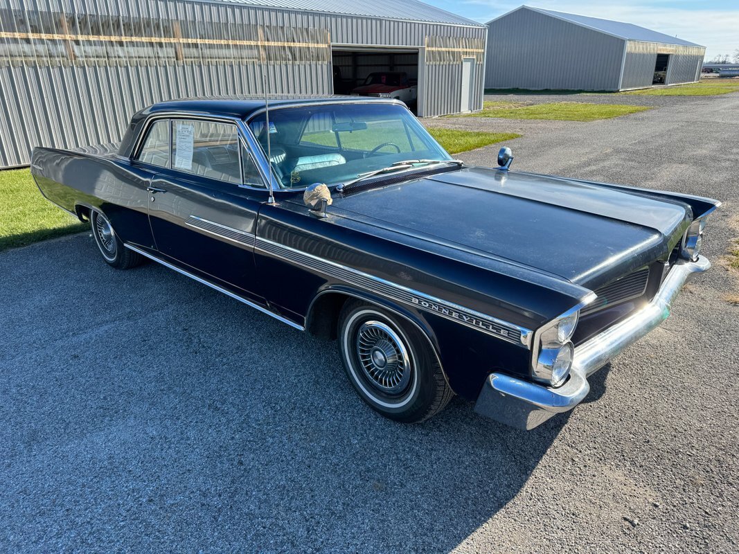 Available now on consignment is this beautiful 1963 Pontiac Bonneville 2 door hard top dressed in dark blue covering a light blue interior. Paint is in drivers quality condition and will need a refreshing. This Bonneville is powered by the 389 V8 engine mated to an automatic transmission. Includes power steering, power brakes, and a new aluminum radiator. The car runs and drives well and would make perfect cruiser or great restoration candidate.
