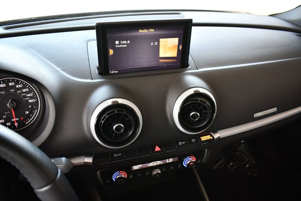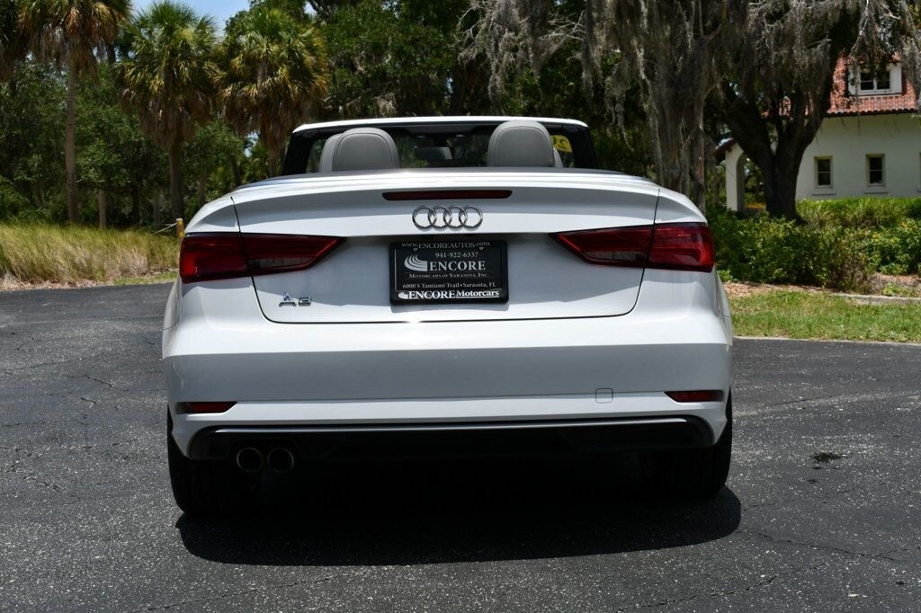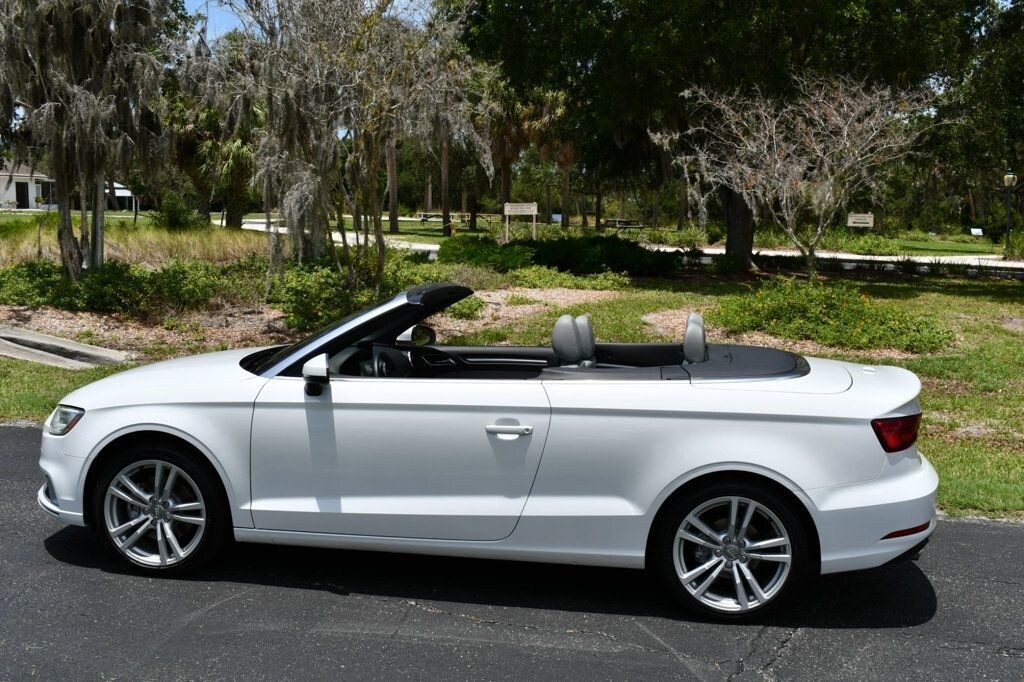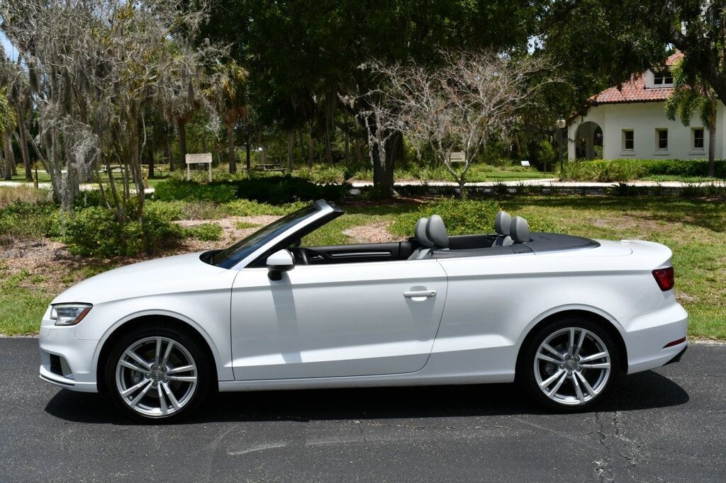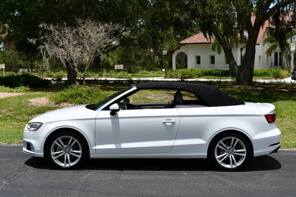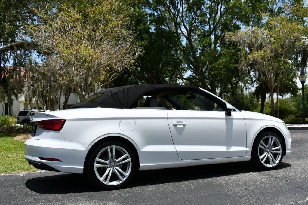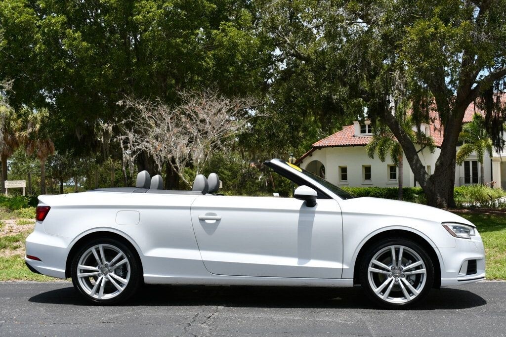 This 2018 Audi A3 Cabriolet 2dr 2.0 TFSI Premium FWD with Convenience Package features a 2.0L 4 CYLINDER 4cyl Gasoline engine. It is equipped with a 7 Speed Automatic transmission. The vehicle is Glacier White Metallic/Black Roof with a Rock Gray Leather interior. It is covered by a limited warranty. - Air Conditioning, Climate Control, Dual Zone Climate Control, Cruise Control, Power Steering, Power Windows, Power Door Locks, Power Mirrors, Leather Steering Wheel, Power Drivers Seat, Power Passenger Seat, Clock, Tachometer, Digital Info Center, Tilt Steering Wheel, Telescoping Steering Wheel, Steering Wheel Radio Controls, Driver Airbag, Passenger Airbag, Side Airbags, Keyless Entry, Security System, Traction Control, Rear Defogger, Intermittent Wipers, AM/FM, CD Player, Anti-Theft, Leather Interior Surface, Adaptive headlights, Android Auto, Apple CarPlay, Aux. Audio Input, Bluetooth, Carpeted Floor Mats, Center Arm Rest, Center Console, Child Proof Door Locks, Collision Avoidance System, Cup Holders, Daytime Running Lights, Front Heated Seats, Heated Mirrors, HID Headlamps, Power Brakes, Premium Alloy Wheels, Premium Sound, Rain Sensing Wipers, Rear Fog Lamps, Reverse Camera, Roll Stability Control, Tire Pressure Monitor, Vanity Mirrors -