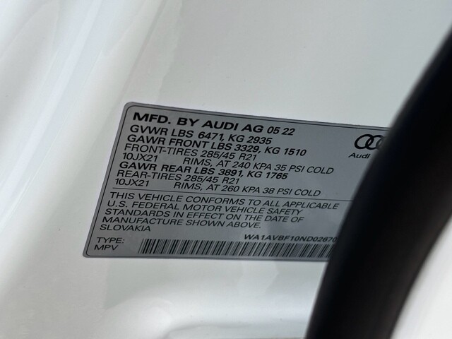 Vehicle Original VIN : WA1AVBF10ND026707
