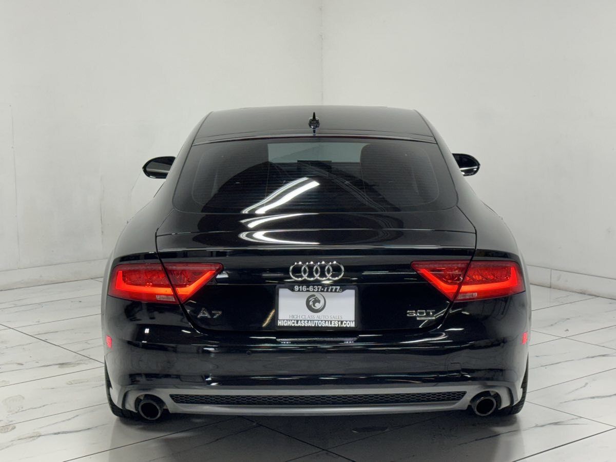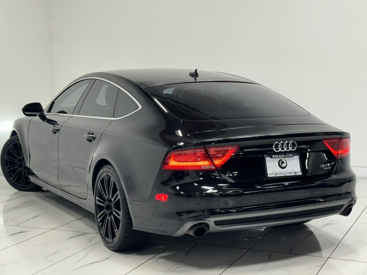 Our 2012 Audi A7 3.0T Prestige quattro four-door Coupe displayed in eye-catching Brilliant Black will wow you with its performance while you relax in its stunning interior. Motivated by a SuperCharged 3.0 Liter V6 generating 310hp tethered to an 8 Speed Automatic transmission for effortless acceleration. This All Wheel Drive luxury machine offers nearly 28mpg on the road and the ability to make every drive feel special with responsive handling and a smooth - quiet ride. You will also love its svelte styling highlighted by a power sunroof - adaptive HID headlamps - LED headlamps - and distinctive multi-spoke alloy wheels. Our A7 Prestige's stunning interior offers supple leather - wood trim - and first-class amenities to enhance your experience. Heated/cooled power front seats with driver memory - heated rears - a multi-function steering wheel - a power liftback hatch - and tri-zone automatic climate control are just a few of the niceties available at your fingertips. Additionally - the full-color MMI infotainment system includes Bluetooth - available satellite radio - USB input with iPod integration - and surround sound for your entertainment needs. In our Audi - a variety of safety technologies surround you to provide exceptional security. Rain-sensing windshield wipers - a rear camera - advanced airbags - stability/traction control - and ABS are just a few of the innovations that surround you. Our A7 is the perfect vehicle for you! Save this Page and Call for Availability. We Know You Will Enjoy Your Test Drive Towards Ownership!