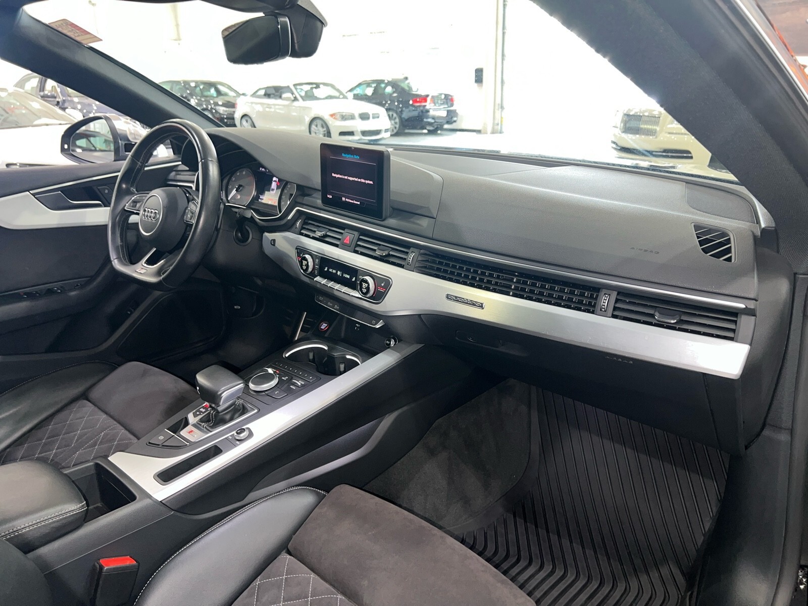 Turbocharged 3.0L V6, 8-speed automatic transmission, Convenience package, leather/alcantara seating w/ diamond contrast stitching, leather flat-bottom steering wheel, SiriusXM ready, heated front seats, Audi pre sense front and rear, and more! Sporty and athletic! $53,950 MSRP when new! 20 Inch Black RS Style wheels and tires are brand new and may be shown in pictures are available for an additional $2495, Factory silver wheels are included in the price. **Window sticker is a duplicate version, prices and options might vary** MSRP $52,400.00 INSTALLED OPTIONS [A2A2] Brilliant Black $0 [WPD] Convenience Package Audi pre sense rear Alarm System w/Motion Sensors SiriusXM All Access Service 3-month trial subscription Auto-Dimming Exterior Mirrors Audi Advanced Key keyless engine start/stop and doors and trunk entry Driver Seat Memory Audi Side Assist $1,500 [HU9] Tires: P245/40 R18 As Vehicle top speed limiter lowered to 130mph $0 [CRC] Convenience Package Credit -$1,500 [DWB] Audi Guard Wheel Lock Kit $105 [GBM] Audi Guard All Weather Floor Mats $200 [RAB] Rings Audi Beam lower door trim LED light displaying Audi logo (4 rings $250 Original Shipping Charge $995 RETAIL PRICE (ORIGINALLY NEW) $53,950.00
