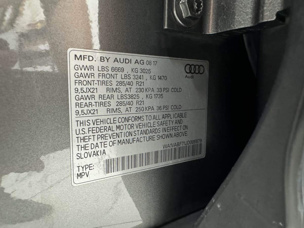 Dare to turn heads with our Accident Free - One Owner 2018 Audi Q7 Prestige quattro that reaches fresh heights of performance and refinement in Graphite Gray Metallic! Powered by a SuperCharged 3.0 Liter V6 that offers 333hp paired with an 8 Speed Automatic transmission for astonishing passing authority. You'll score nearly 24mpg on the road with our All Wheel Drive SUV while enjoying a satisfying driving experience tailored to your mood thanks to the Drive Select modes. Go ahead - take on winding roads or even go off-road and know you can see 60mph in just 5.7 seconds. Make a bold statement with the commanding - sleek stance of our Q7 Prestige that's enhanced by LED lighting - and unique 20-inch alloy wheels. With exceptional comfort for 7 passengers - the Prestige interior greets you with keyless ignition/entry - a panoramic sunroof - four-zone automatic climate control - a prominent color driver information display - heated/ventilated front leather seats with driver memory - and a rearview camera. Enjoy next-level connectivity with our Audi MMI infotainment featuring a central display - Bluetooth - smartphone integration - available WiFi hotspot - full-color navigation - fantastic upscale audio - available satellite radio - and more! A great safety pick - this Audi lets you get to your destination with peace of mind thanks to advanced safety features - including collision warning with automatic braking - parking sensors - advanced airbags - and stability/traction control. Boasting class-leading power - legendary quattro drive handling - a wealth of amenities - and head-turning style - this Q7 Prestige is certainly a smart choice! Save this Page and Call for Availability. We Know You Will Enjoy Your Test Drive Towards Ownership!